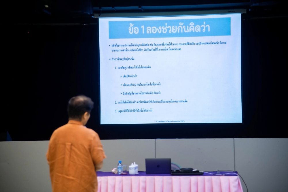 งานกิจการนักเรียน จัดการอบรมเชิงปฏิบัติการ ในหัวข้อ "การป้องกันและดูแลรักษาบาดแผลทางจิตใจ" ให้กับอาจารย์ระดับประถมศึกษาและมัธยมศึกษา ในวันพฤหัสบดีที่ 2 ตุลาคม 2568 เวลา 09.00 - 12.00 น. ณ ห้องประชุมเล็ก อาคารหอประชุม โดยได้รับเกียรติจาก ผู้ช่วยศาสตราจารย์ แพทย์หญิงปริชวัน จันทร์ศิริ อาจารย์ประจำหน่วยจิตเวชเด็กและวัยรุ่น ภาควิชาจิตเวชศาสตร์ คณะแพทยศาสตร์ จุฬาลงกรณ์มหาวิทยาลัย และนายกสมาคม EMDR Thailand ให้เกียรติเป็นวิทยากร