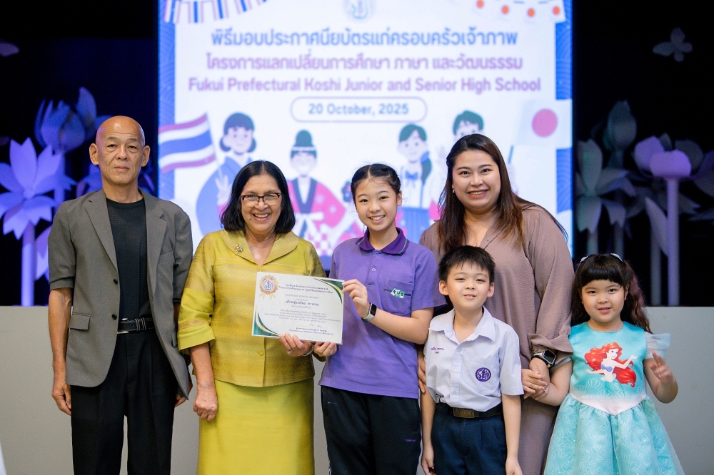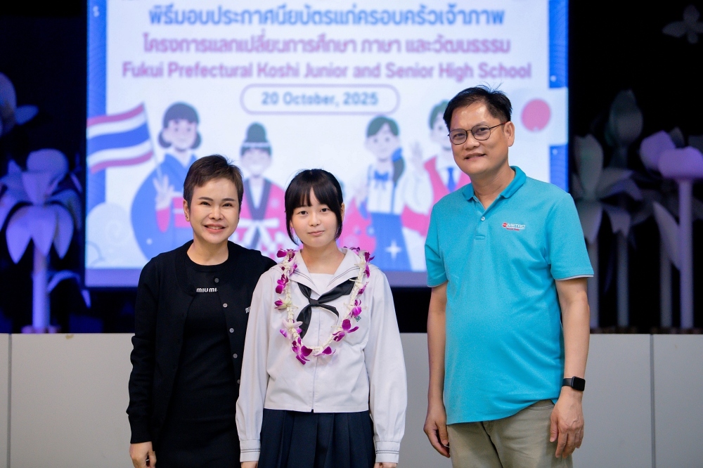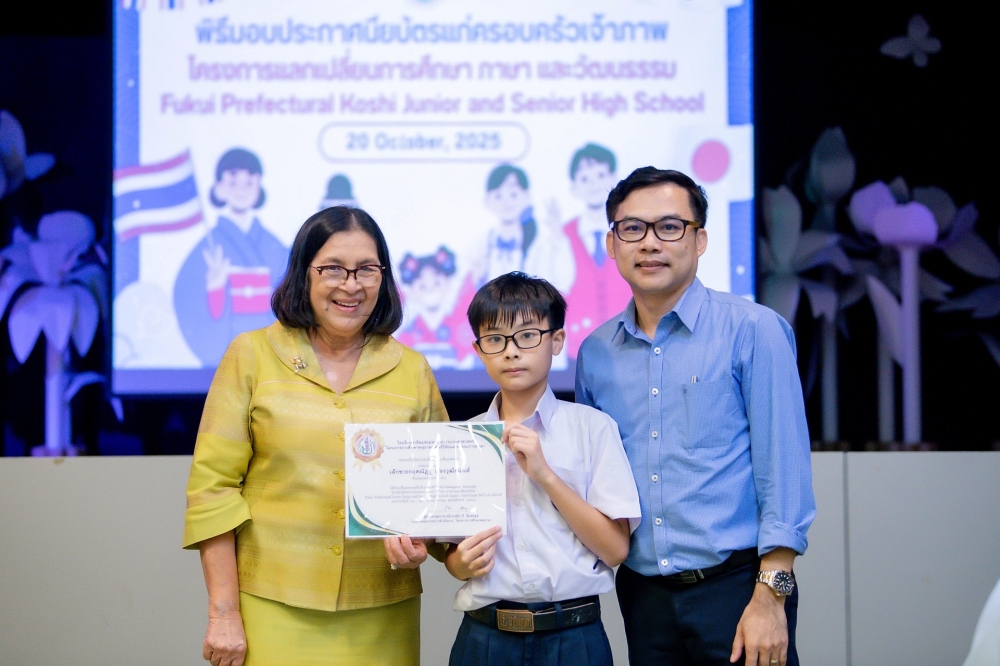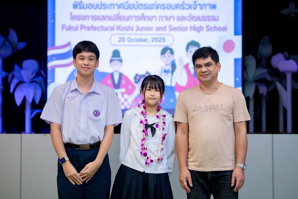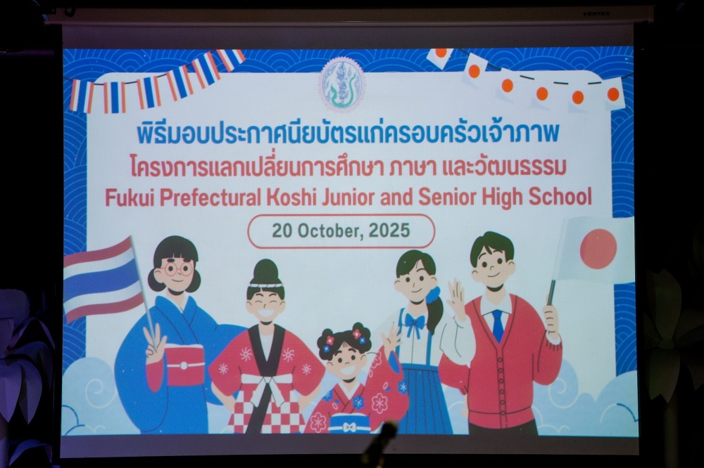 งานวิเทศสัมพันธ์ จัดพิธีมอบประกาศนียบัตรแก่ครอบครัวเจ้าภาพ โครงการแลกเปลี่ยนการศึกษา ภาษา และวัฒนธรรม Fukui Prefectural Koshi Junior and Senior High School, Japan - Satit Kaset MP Lab School ในวันจันทร์ที่ 20 ตุลาคม 2568 เวลา 16.00 - 17.00 น. ณ ห้องประชุมเล็ก อาคารหอประชุม