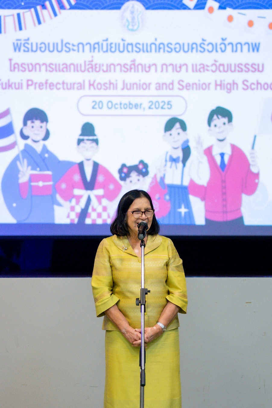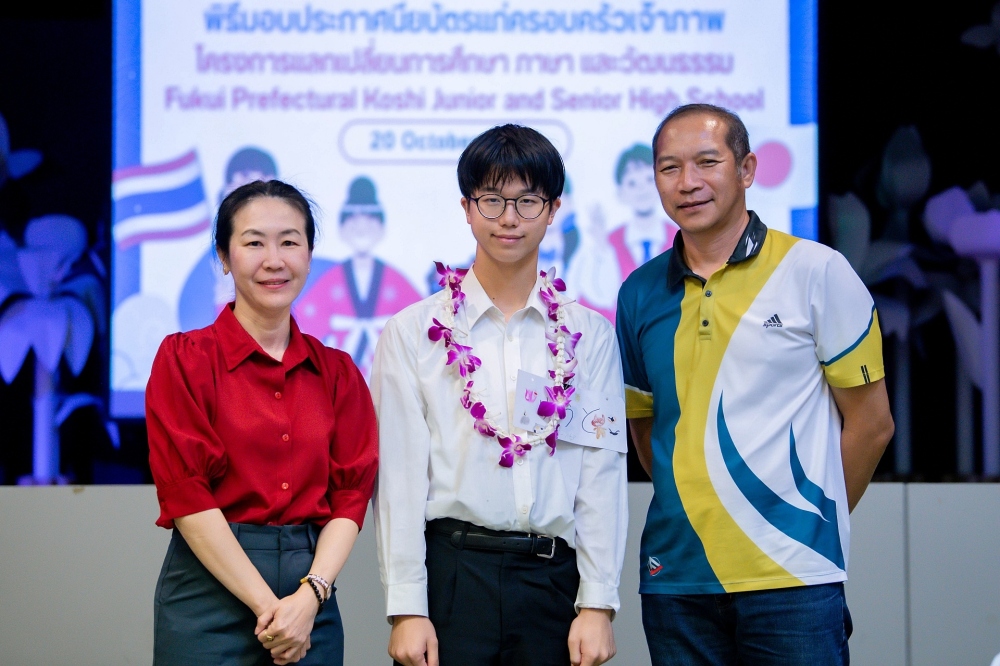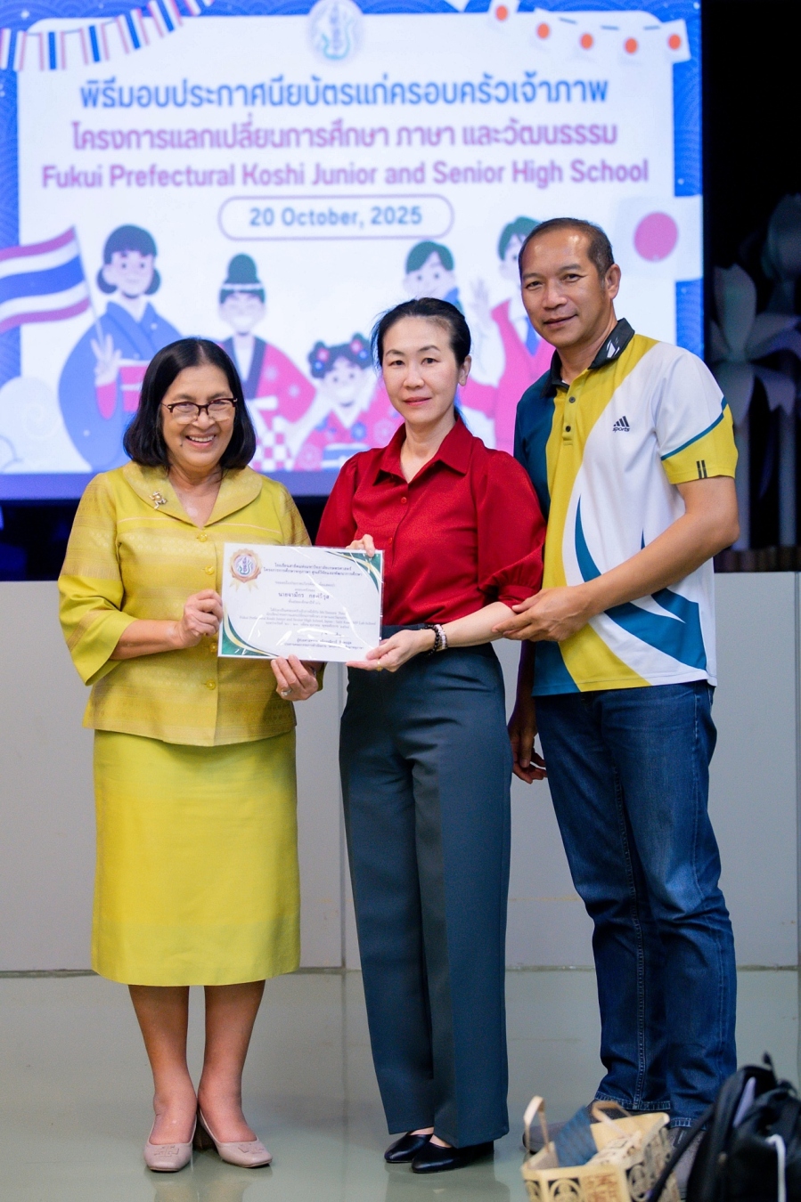พิธีมอบประกาศนียบัตรแก่ครอบครัวเจ้าภาพ โครงการแลกเปลี่ยนฯ Koshi Junior and Senior High School, Japan