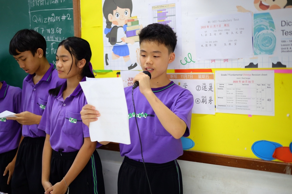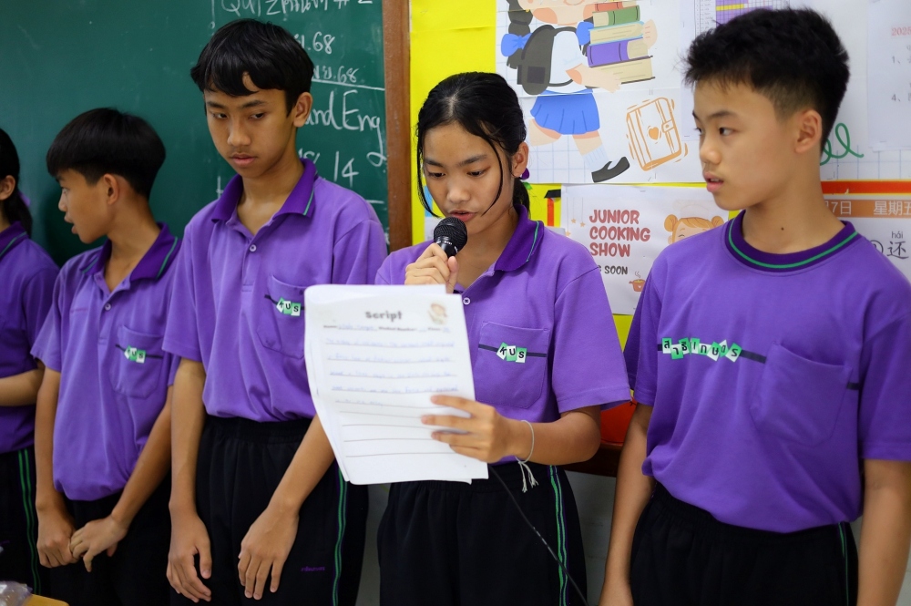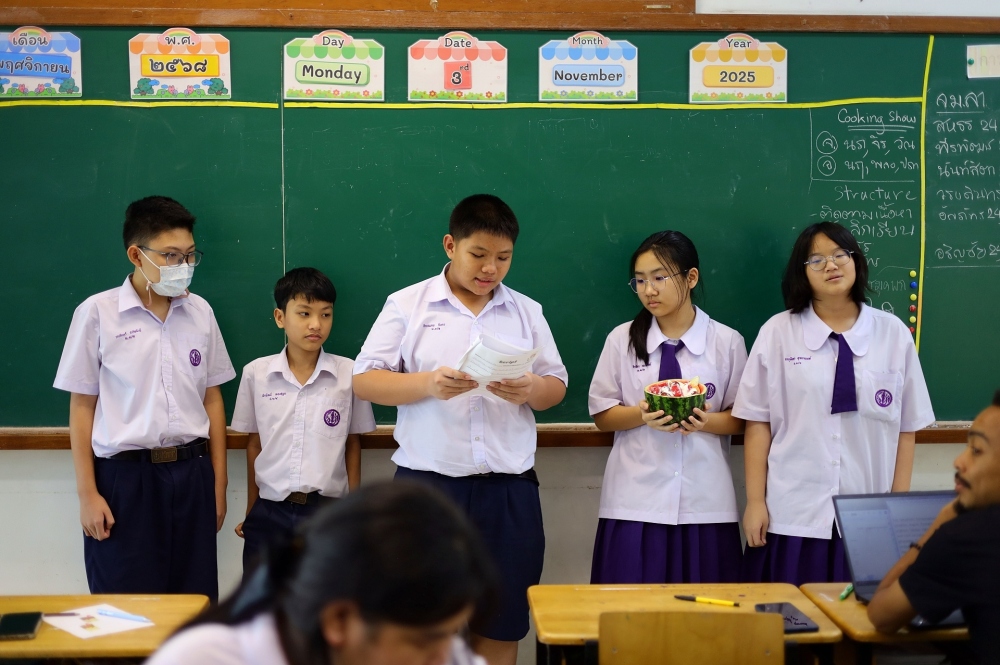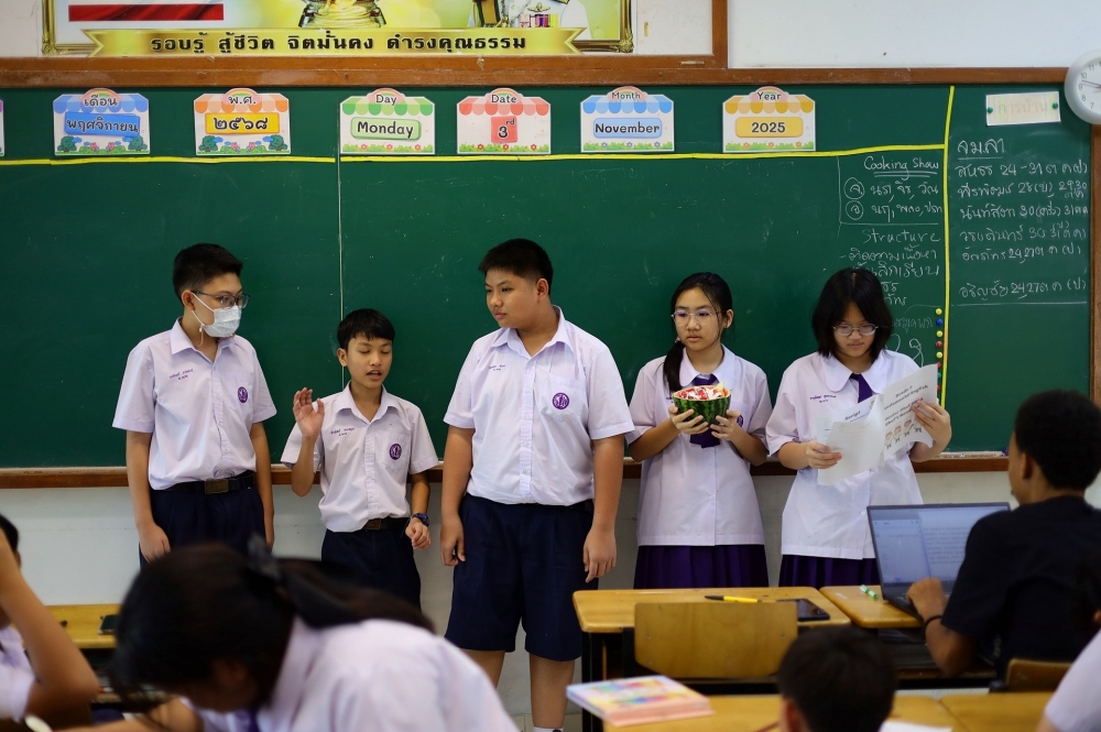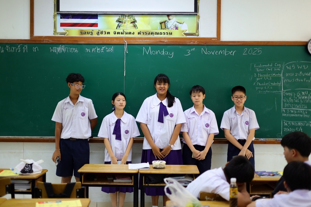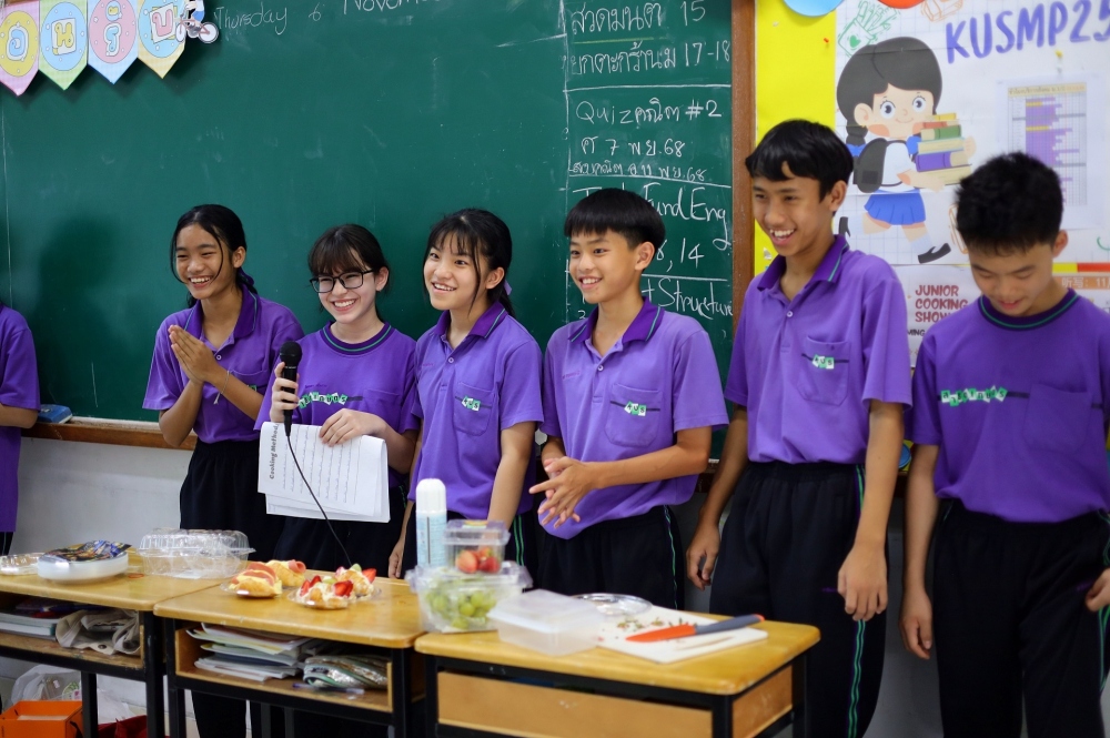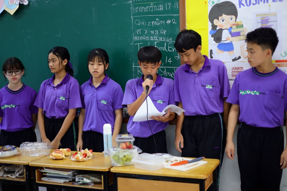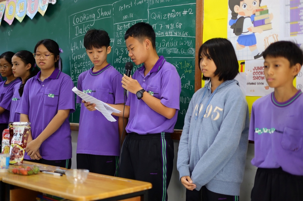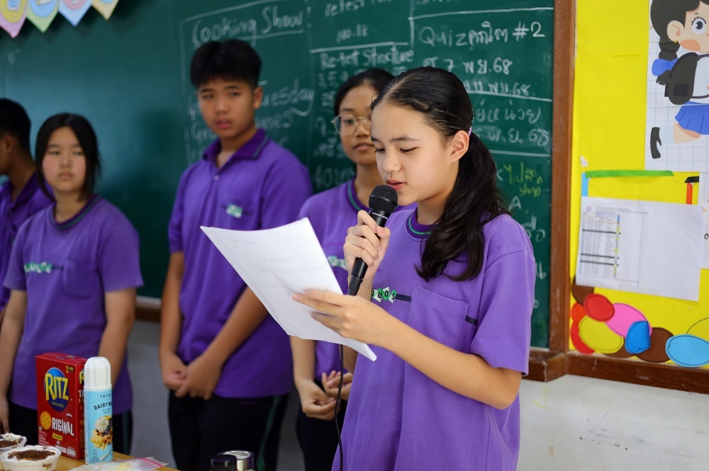 กลุ่มสาระการเรียนรู้ภาษาต่างประเทศ วิชาภาษาอังกฤษระดับมัธยมศึกษา จัดกิจกรรมเสริมหลักสูตร การประกวดการแสดงทำอาหารภาษาอังกฤษ (Junior Cooking Show) ให้กับนักเรียนระดับชั้นมัธยมศึกษาปีที่ 1ในระหว่างวันที่ 3-5 พฤศจิกายน 2568 เพื่อส่งเสริมให้นักเรียนได้บูรณาการความรู้เรื่องการทำอาหาร และการใช้ลำดับขั้นตอนเพื่อนำเสนอเป็นภาษาอังกฤษ