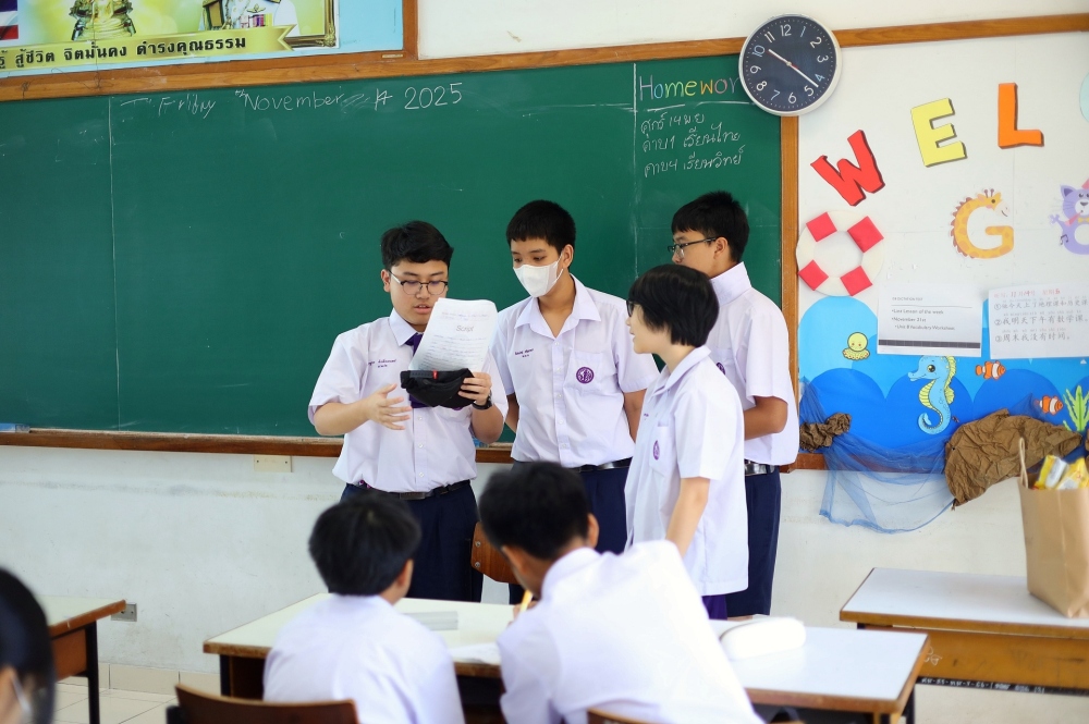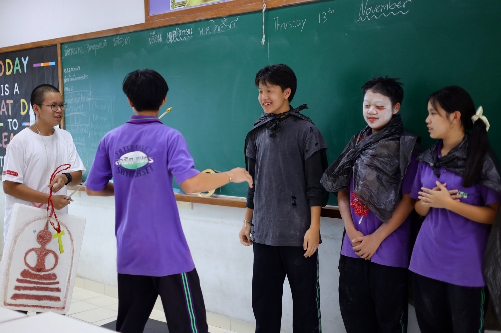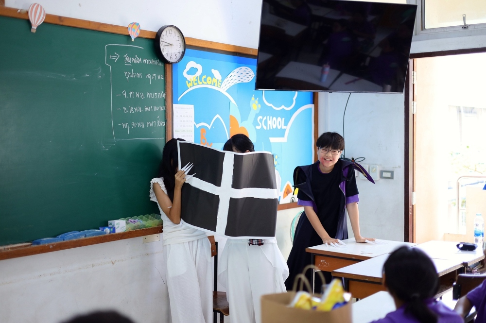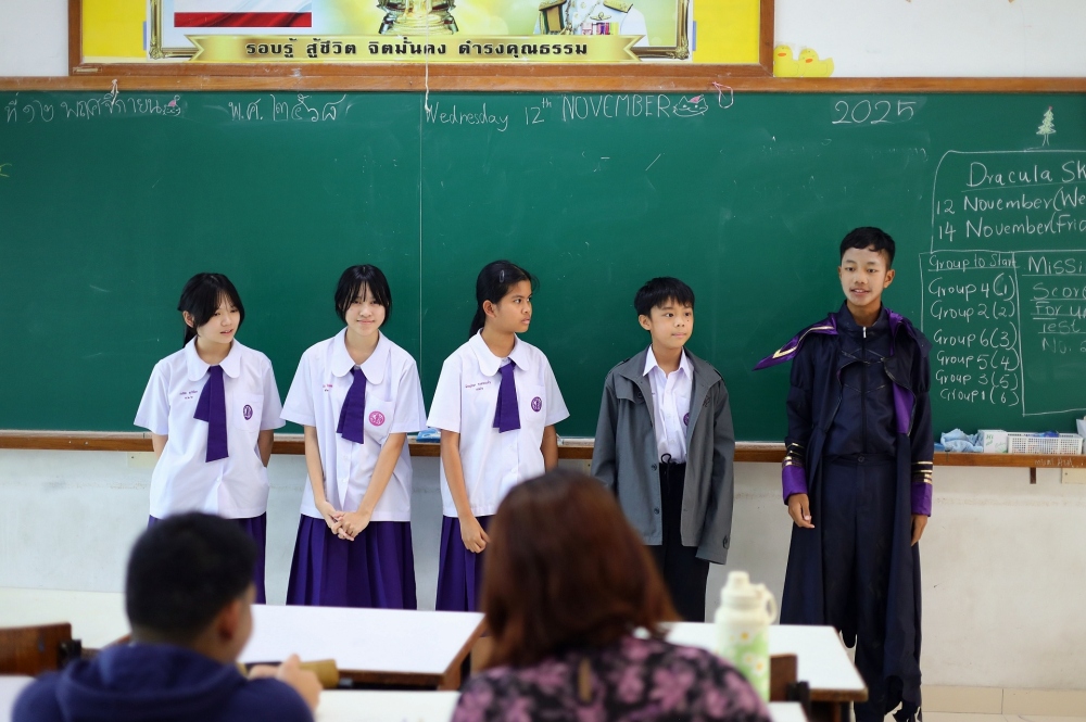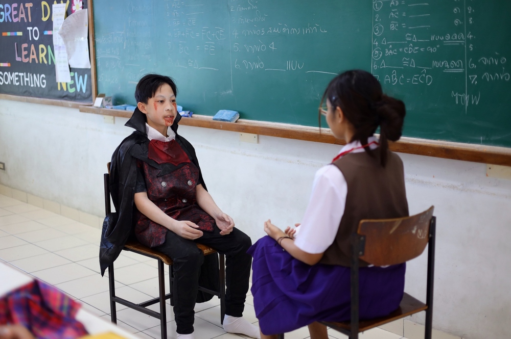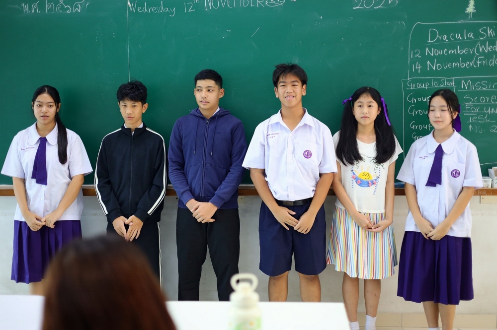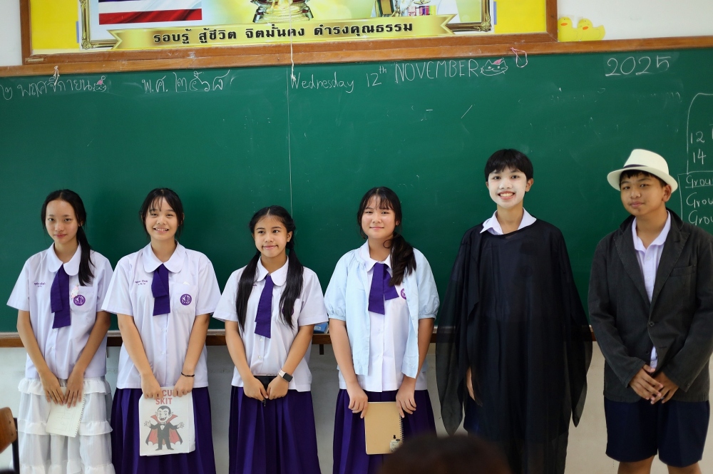 กลุ่มสาระการเรียนรู้ภาษาต่างประเทศ วิชาภาษาอังกฤษระดับมัธยมศึกษา จัดกิจกรรมเสริมหลักสูตร การประกวดการแสดงบทบาทสมมติประกอบหนังสืออ่านนอกเวลา Dracula ให้กับนักเรียนระดับชั้นมัธยมศึกษาปีที่ 2 ในระหว่างวันที่ 12-14 พฤศจิกายน 2568 เพื่อเปิดโอกาสให้นักเรียนได้ฝึกใช้ทักษะภาษาอังกฤษในการฝึกฟังพูดอ่านเขียน ผ่านทางการเขียนบทละครด้วยตนเองจากหนังสืออ่านนอกเวลาที่ได้เรียนรู้ และนำมาแสดงเป็นบทบาทสมมติอย่างสร้างสรรค์ อันนำไปสู่ความคล่องแคล่วในการใช้ภาษาอังกฤษผ่านทางสถานการณ์ที่ได้แสดงออก อีกทั้งยังช่วยส่งเสริมเจตคติอันดีต่อการเรียนวิชาภาษาอังกฤษด้วย