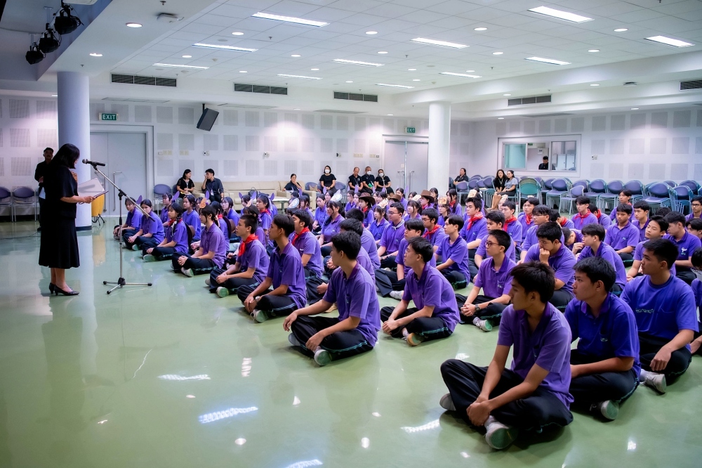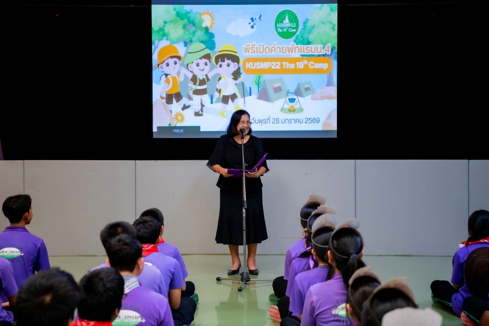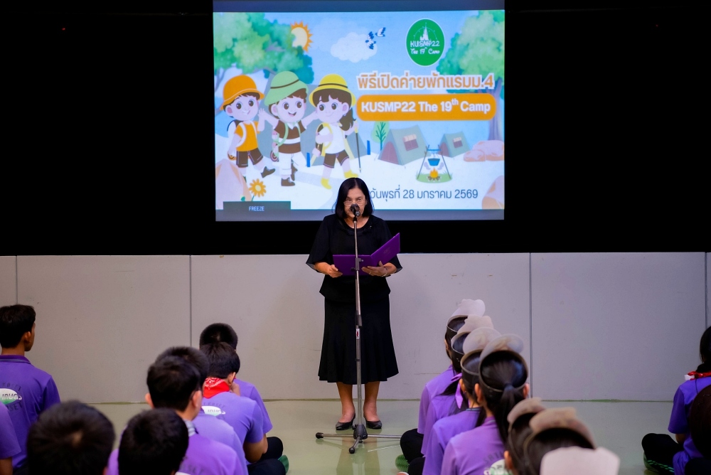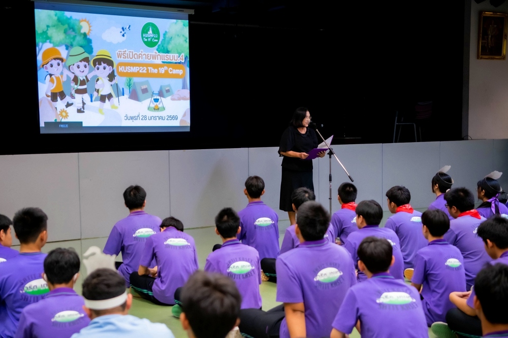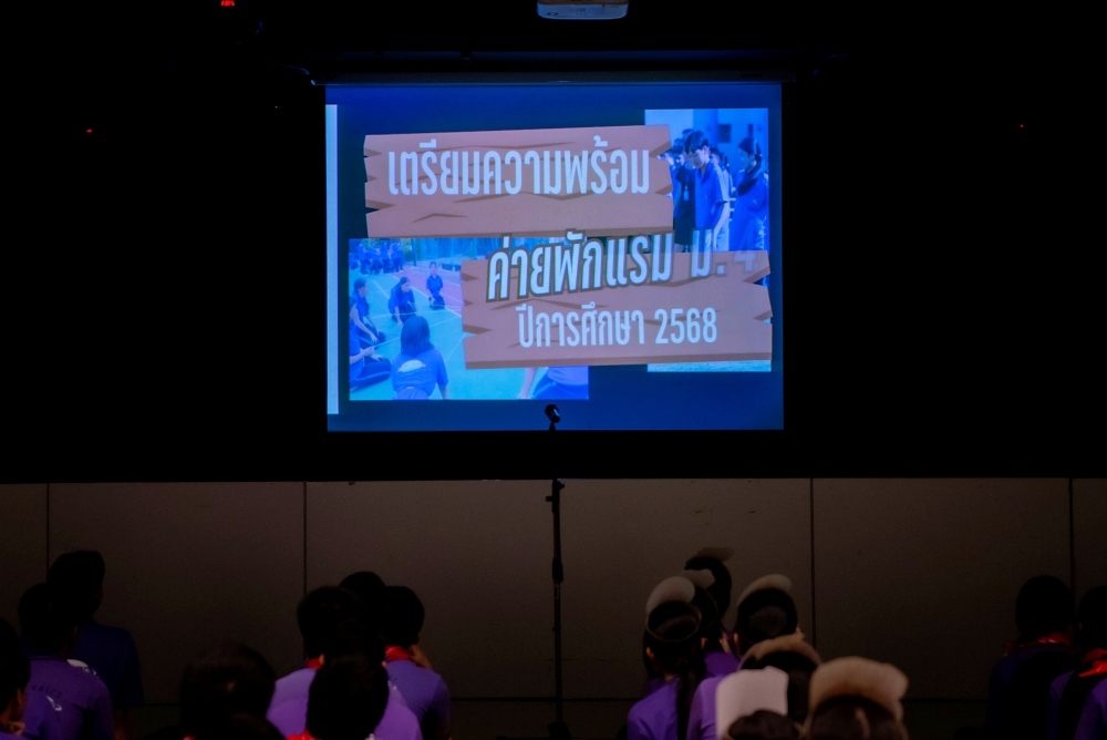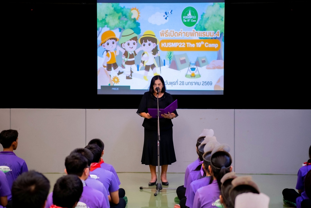พิธีเปิดค่ายพักแรม ระดับชั้นมัธยมศึกษาปีที่ 4 ปีการศึกษา 2568 วันพุธที่ 28 มกราคม 2569 เวลา 15.00 - 15.45 น. ณ ห้องประชุมเล็ก อาคารหอประชุม เพื่อรับโอวาทจาก ผศ.กรรณิการ์ ลิมพะสุต ประธานกรรมการดำเนินงานโครงการ และดำรงตำแหน่งผู้อำนวยการค่ายพักแรมฯ