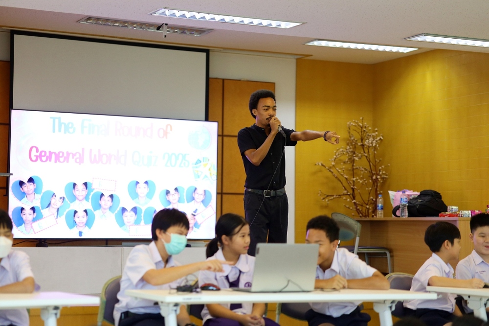 กลุ่มสาระการเรียนรู้ภาษาต่างประเทศ วิชาภาษาอังกฤษ ระดับประถมศึกษา จัดกิจกรรมเสริมหลักสูตร การตอบคำถามความรู้รอบโลก (General World Quiz 2025) สำหรับนักเรียนระดับชั้นประถมศึกษาปีที่ 6 เพื่อให้นักเรียนได้ฝึกฝนทักษะการใช้ภาษาอังกฤษในการตอบคำถาม ส่งเสริมให้นักเรียนมีนิสัยรักการเรียนรู้ และมีโอกาสได้ทดสอบความรู้ที่มีในหมวดหมู่ต่างๆ จัดขึ้นในวันจันทร์ที่ 9 กุมภาพันธ์ 2569 คาบเรียนที่ 3 ห้อง Smart Classroom