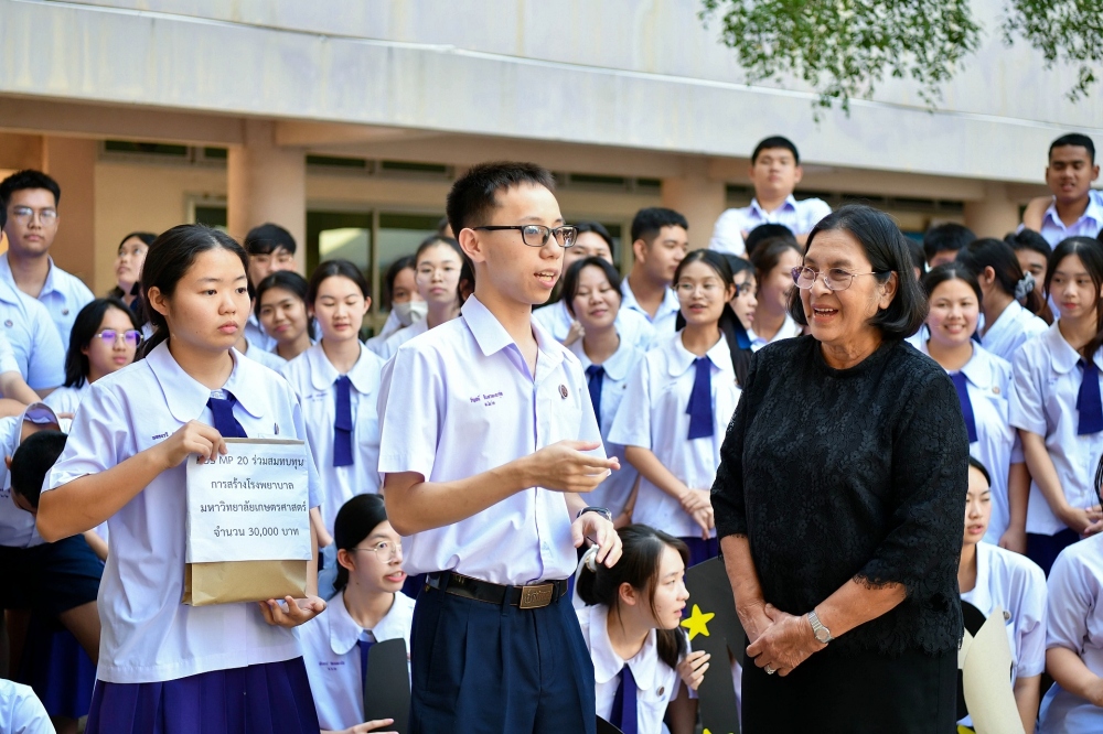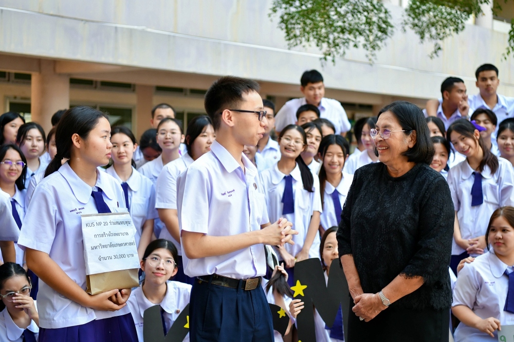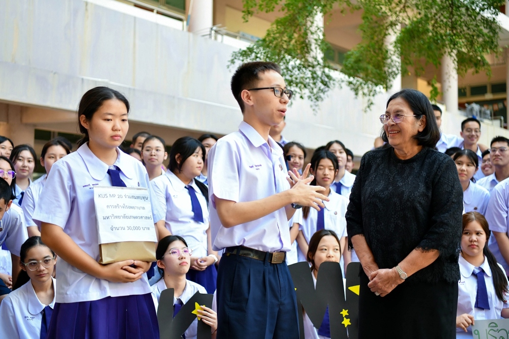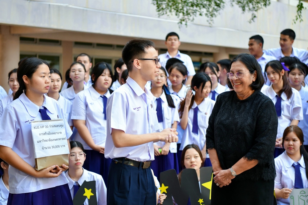 ผศ.กรรณิการ์ ลิมพะสุต ประธานกรรมการดำเนินงานโครงการการศึกษาพหุภาษาและ อาจารย์ ดร.ปารมี ศรีบุญทิพย์ รองประธานกรรมการดำเนินงานฯ ให้เกียรติรับมอบเงินรายได้จากกิจกรรมบริการสังคม "Life Project" ของนักเรียนระดับชั้นมัธยมศึกษาปีที่ 6 ปีการศึกษา 2568 (KUSMP20) ซึ่งได้มีการจัดจำหน่ายอาหารและซุ้มเกม ตลอดปีการศึกษาที่ผ่านมา รายได้หลังหักค่าใช้จ่าย ได้นำมาบริจาคและสมทบสนับสนุนด้าน ๆ ดังนี้