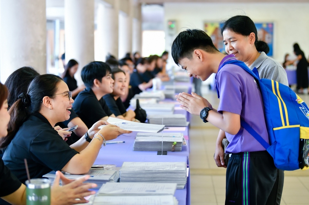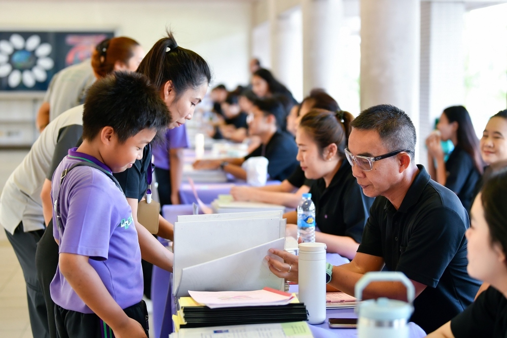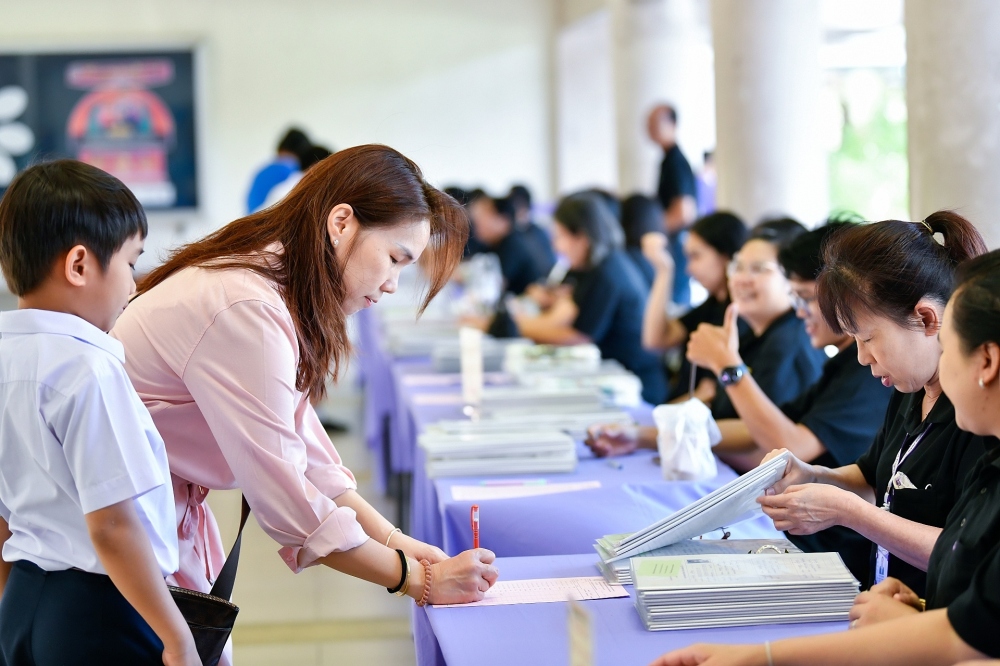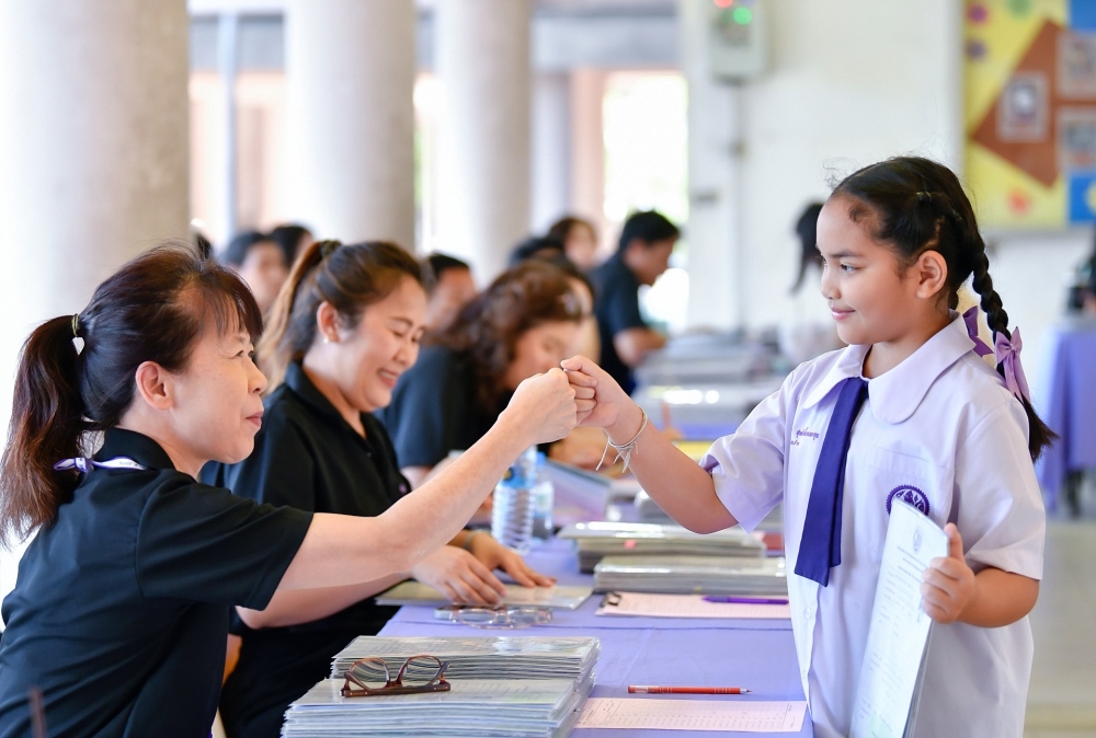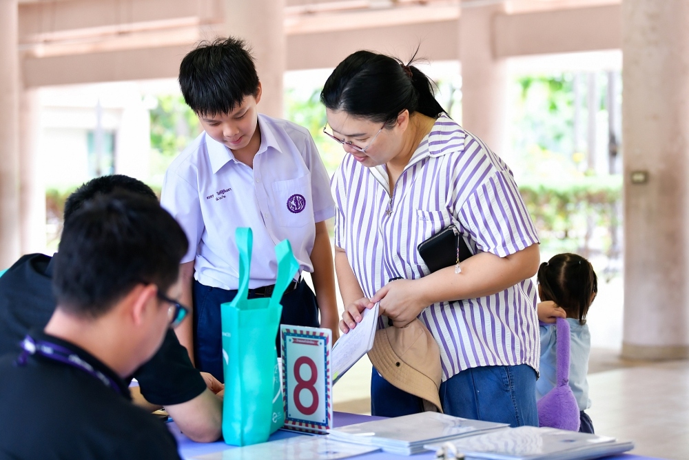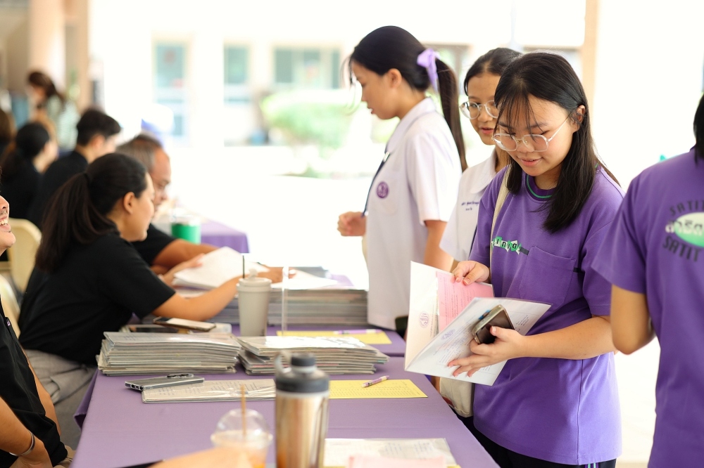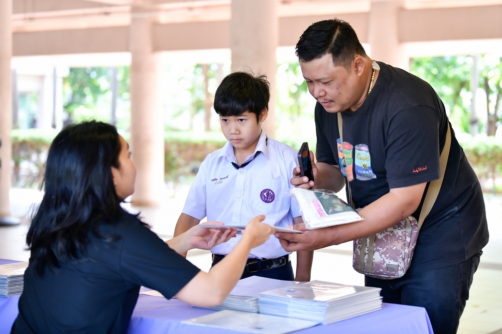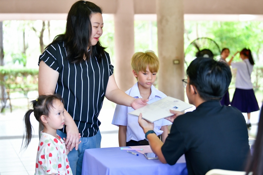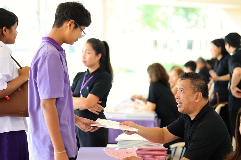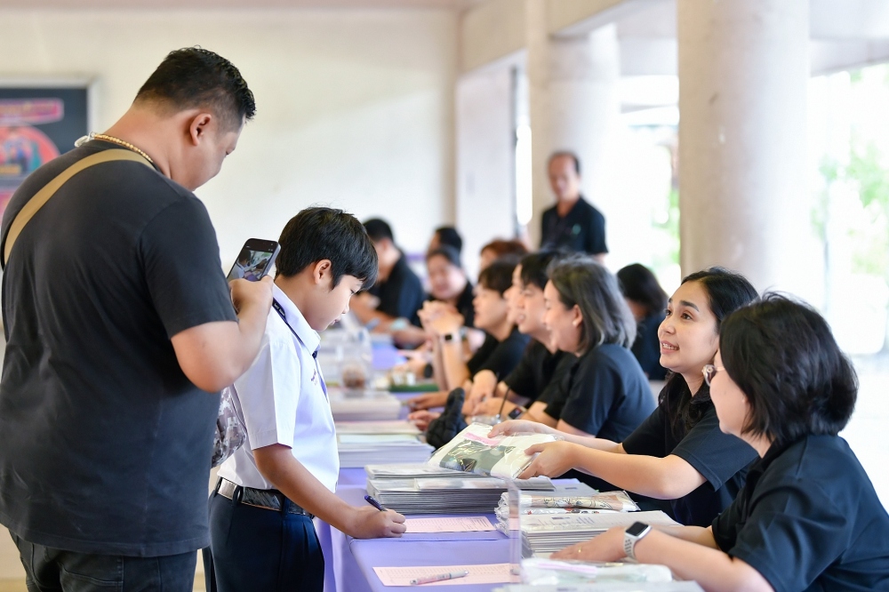 บรรยากาศการรับแบบรายงานผลการเรียน ของนักเรียนระดับชั้น ป.1 - ม.6 ปีการศึกษา 2568 ในวันศุกร์ที่ 27 มีนาคม 2569 เวลา 08.30 - 11.00 น. ณ บริเวณใต้อาคาร 3