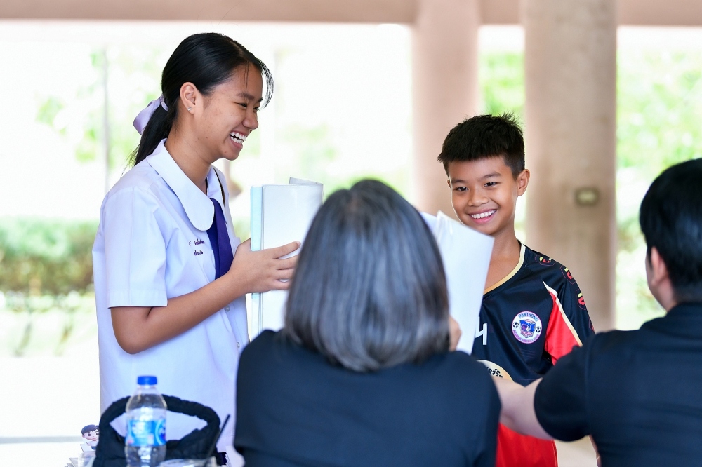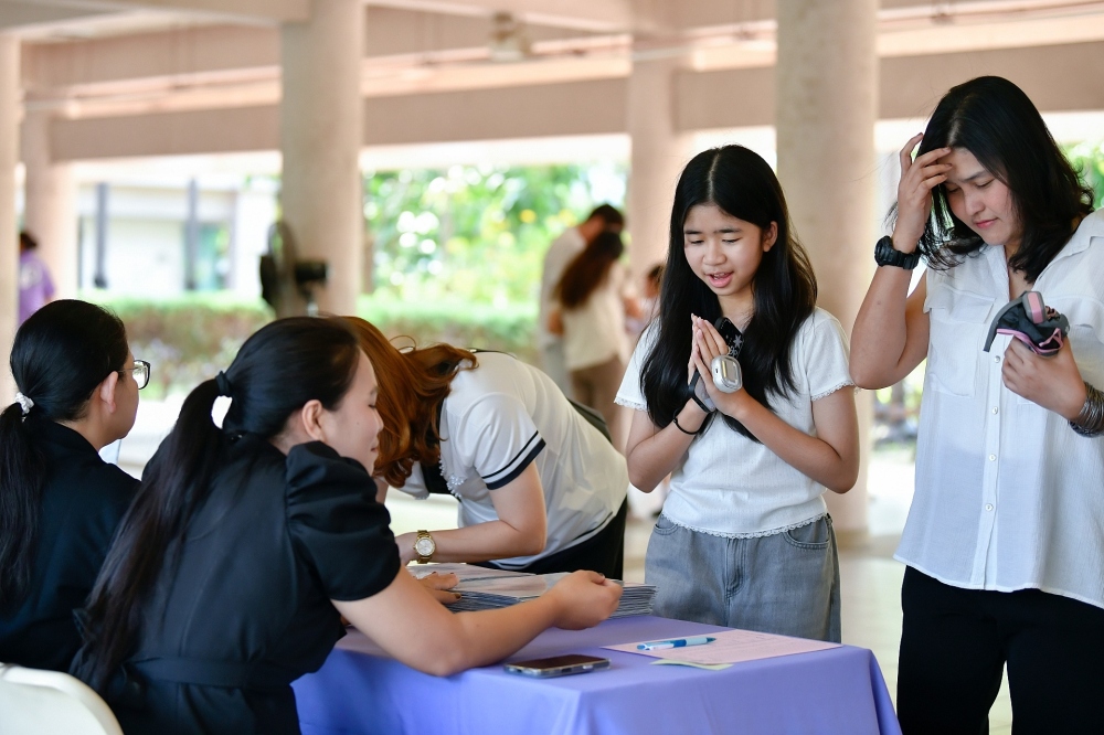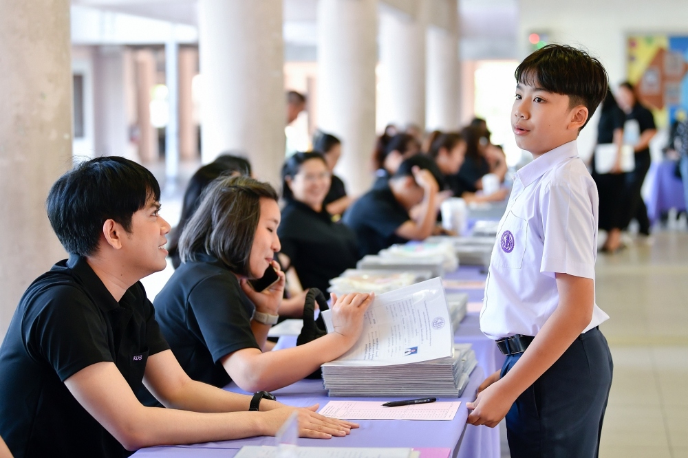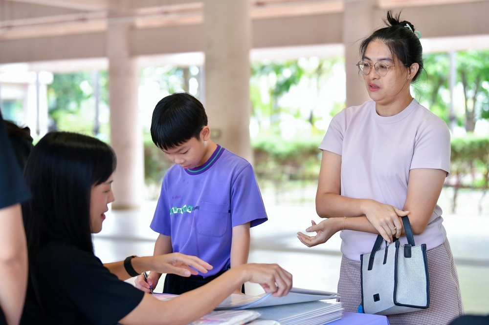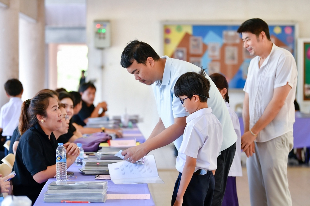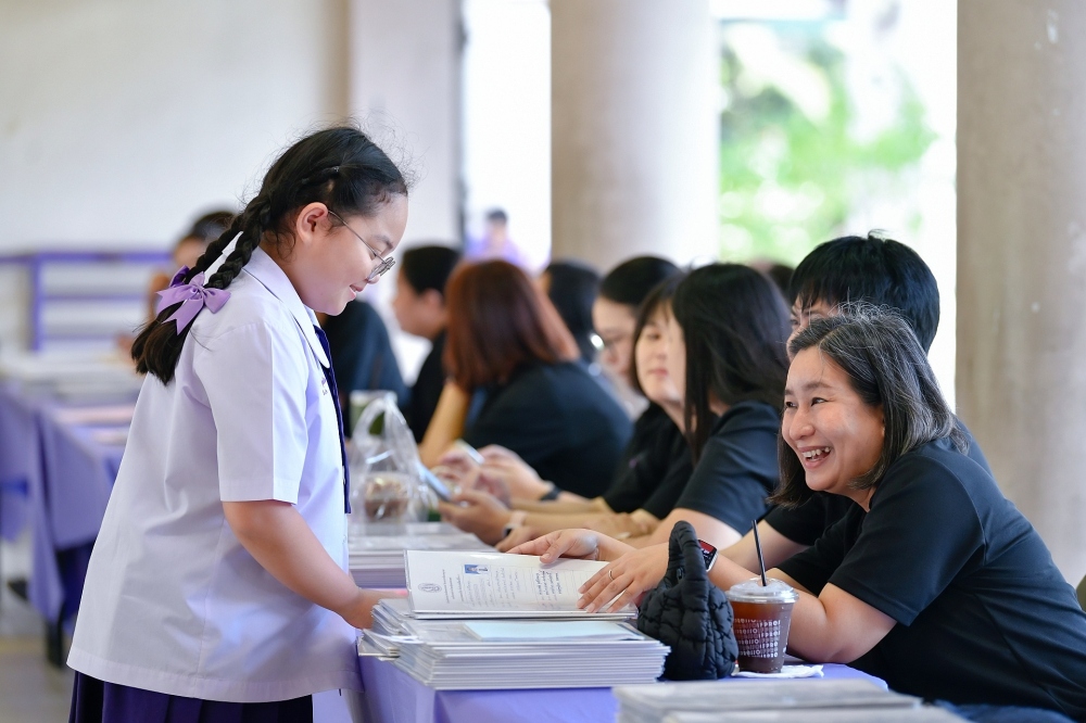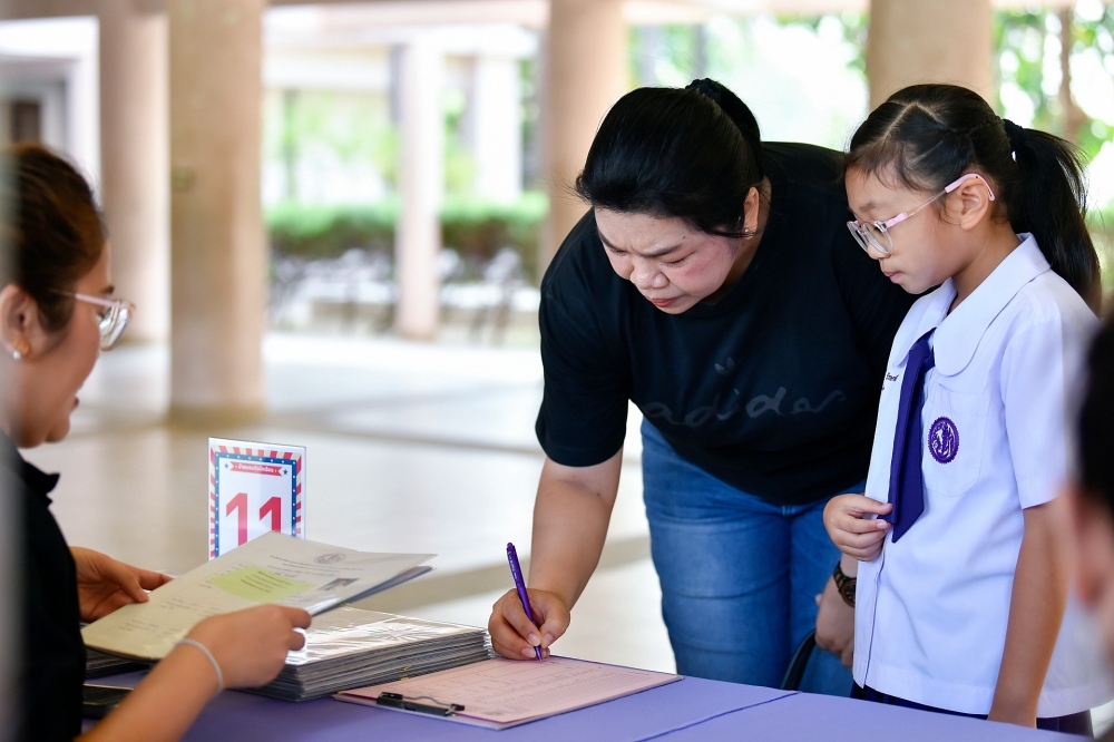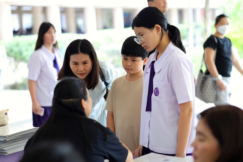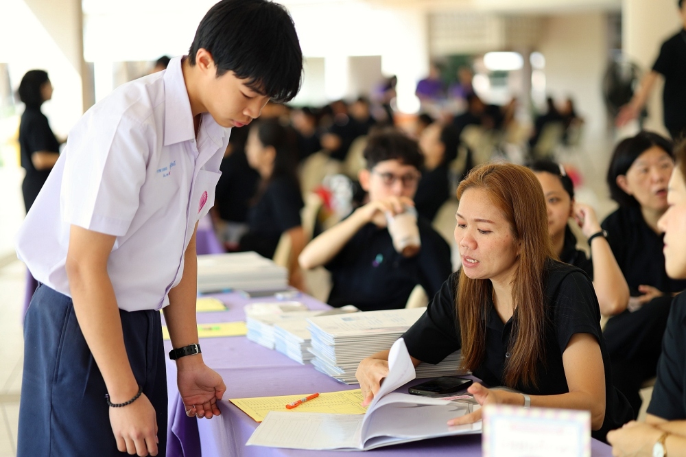 บรรยากาศการรับแบบรายงานผลการเรียน ของนักเรียนระดับชั้น ป.1 - ม.6 ปีการศึกษา 2568 ในวันศุกร์ที่ 27 มีนาคม 2569 เวลา 08.30 - 11.00 น. ณ บริเวณใต้อาคาร 3