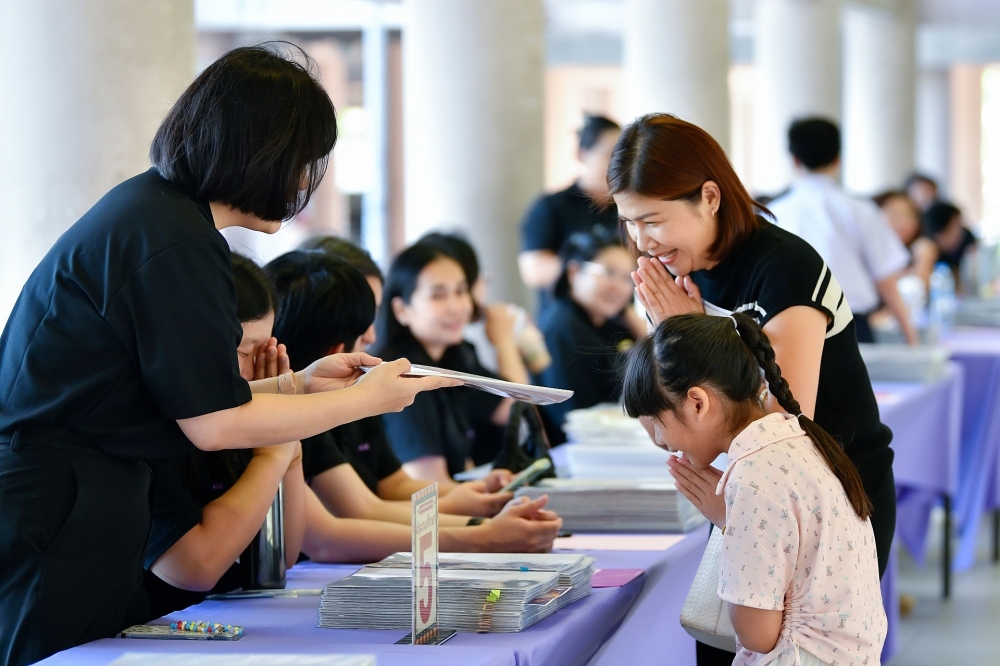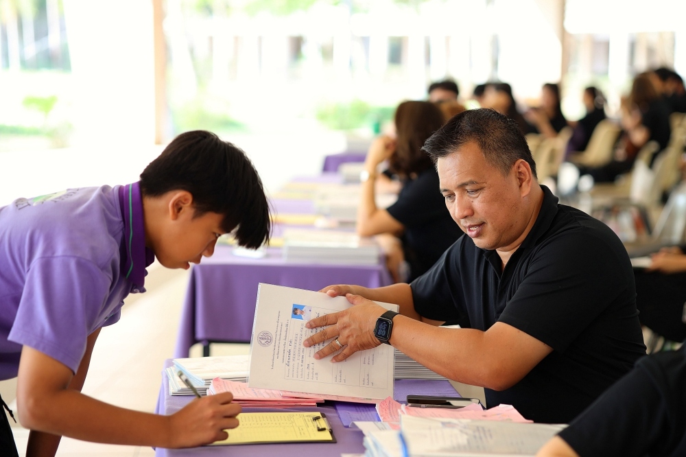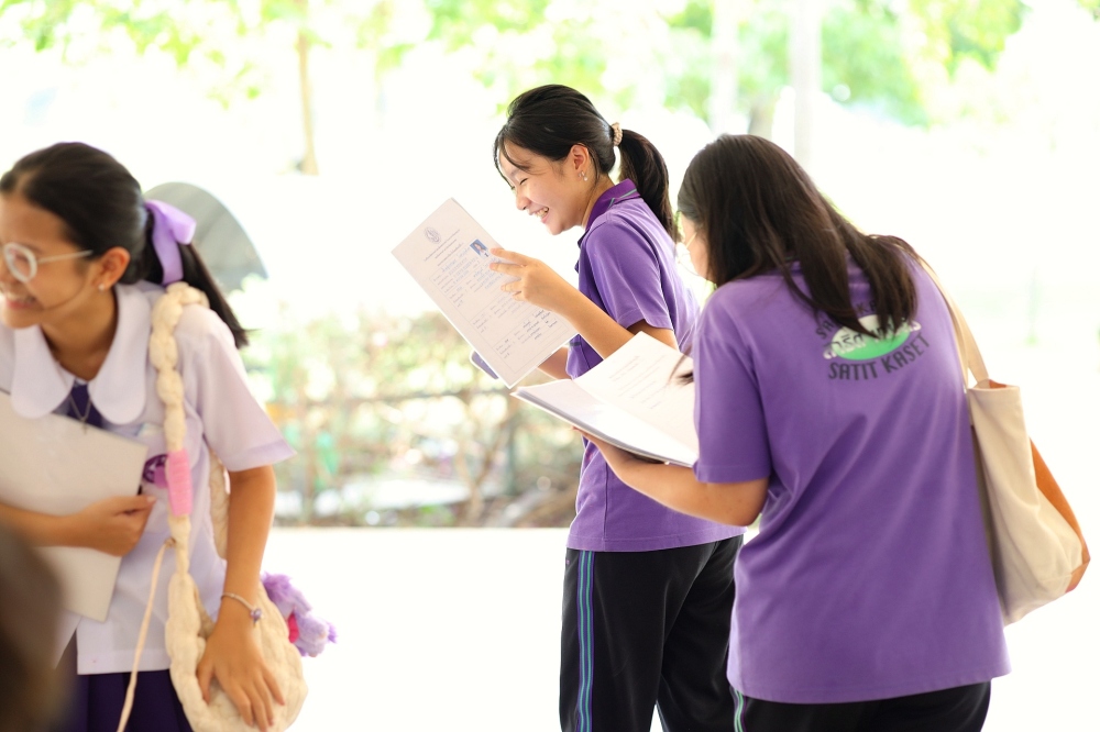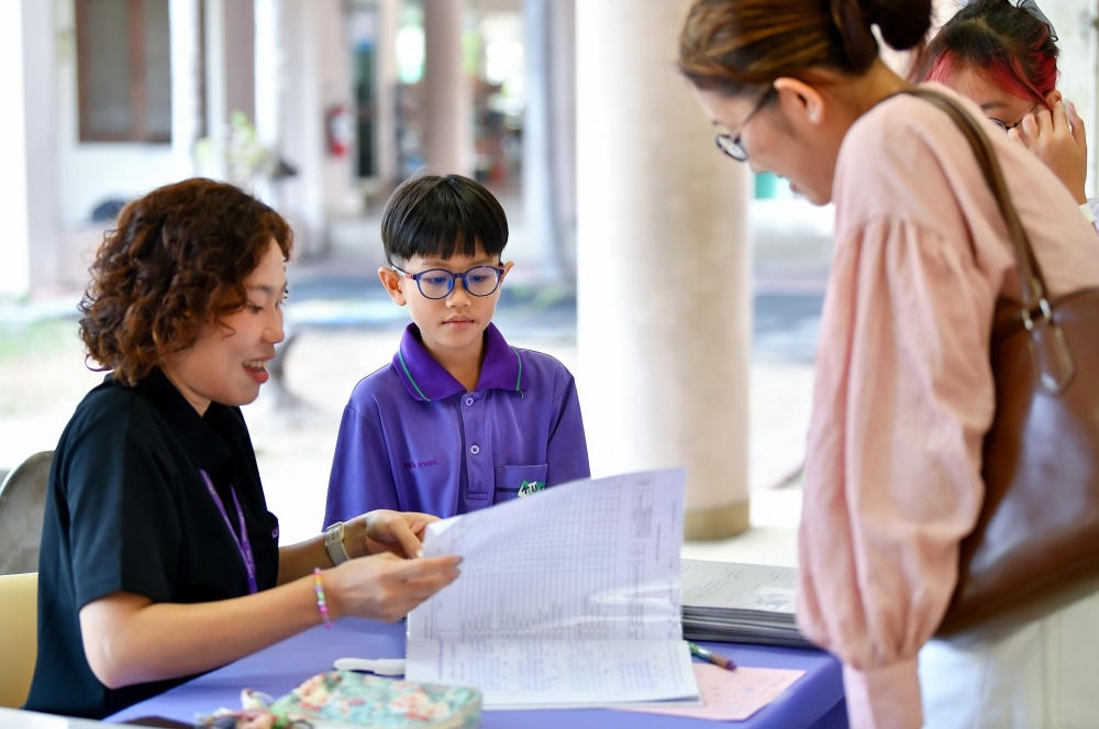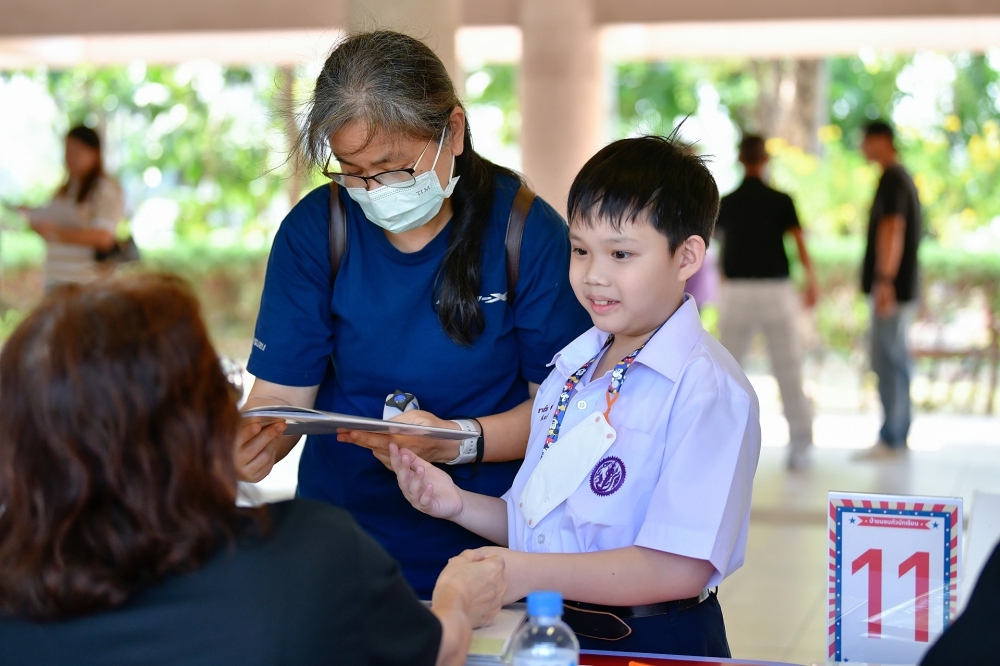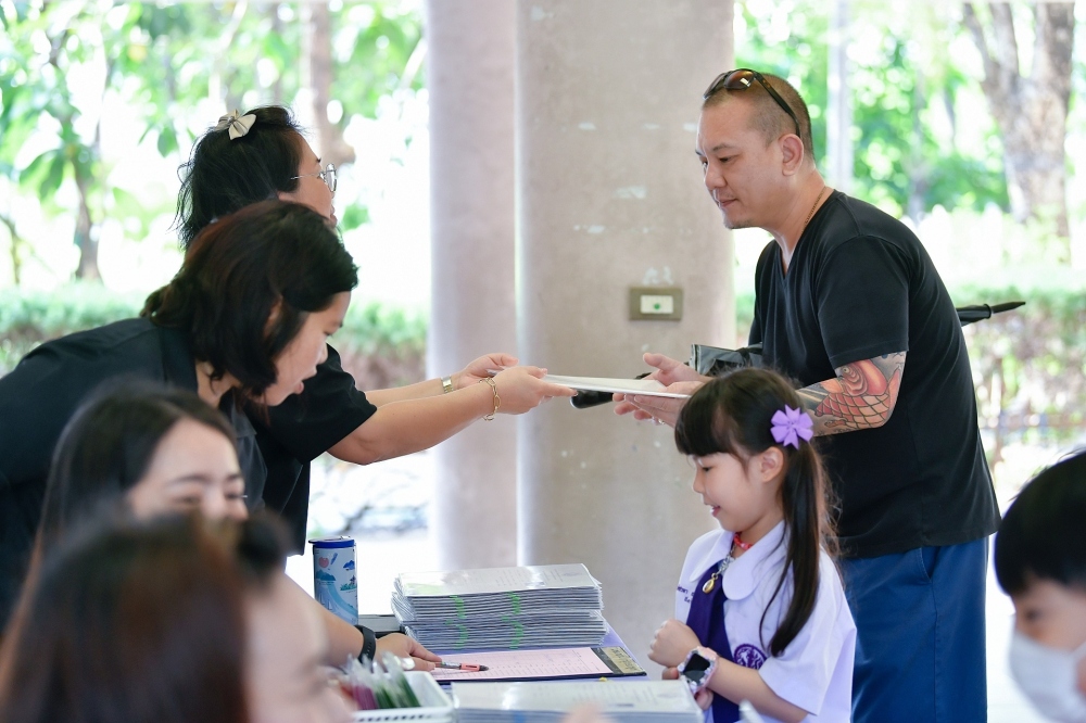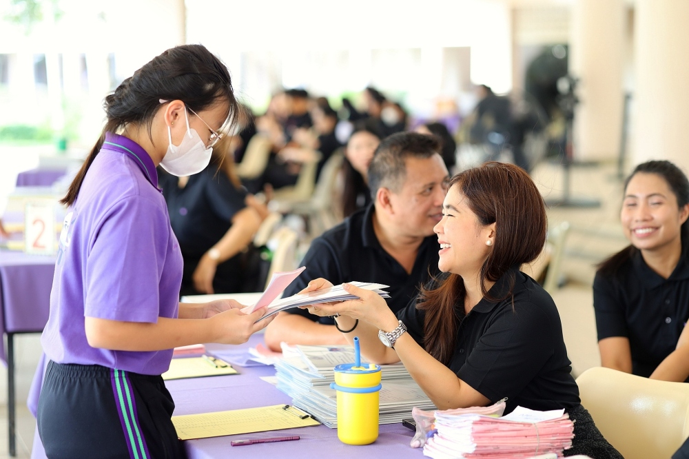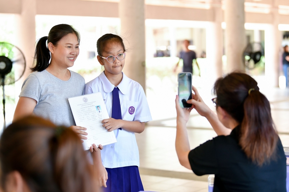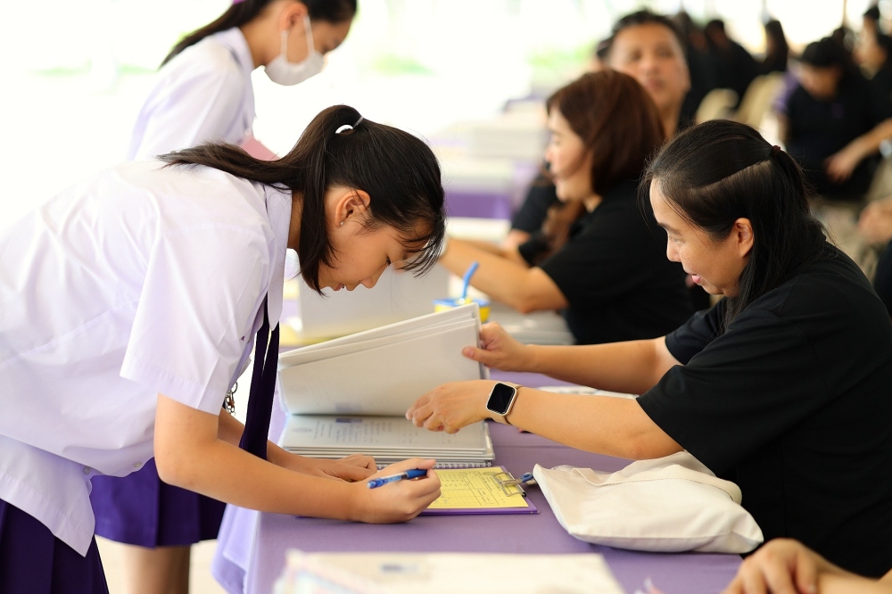 บรรยากาศการรับแบบรายงานผลการเรียน ของนักเรียนระดับชั้น ป.1 - ม.6 ปีการศึกษา 2568 ในวันศุกร์ที่ 27 มีนาคม 2569 เวลา 08.30 - 11.00 น. ณ บริเวณใต้อาคาร 3