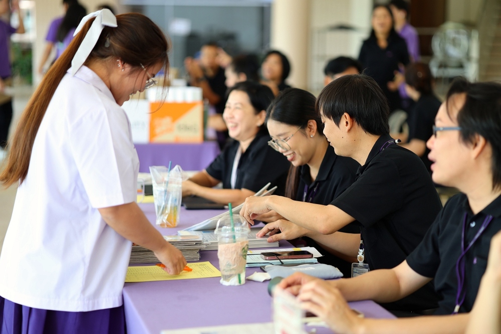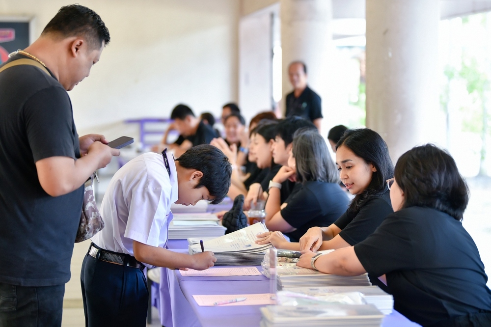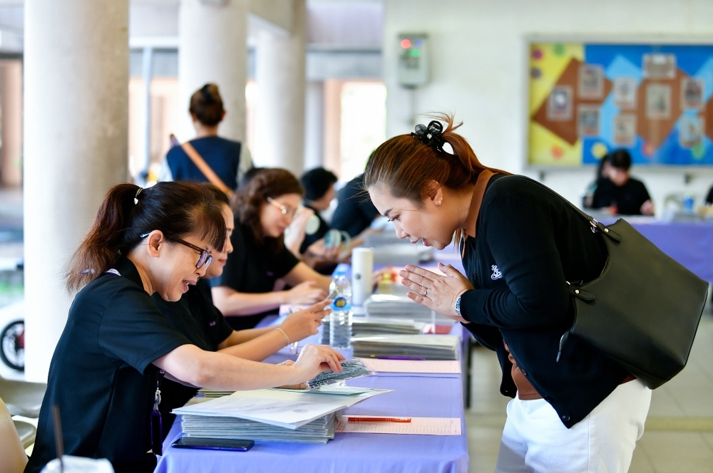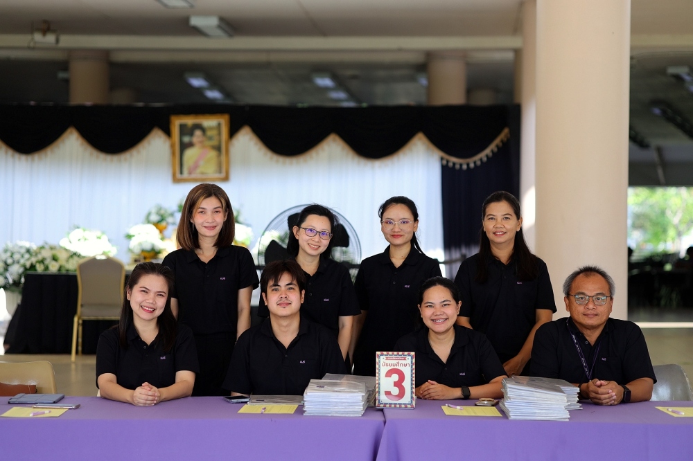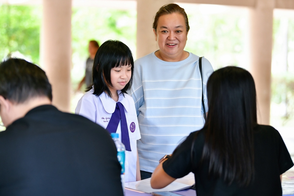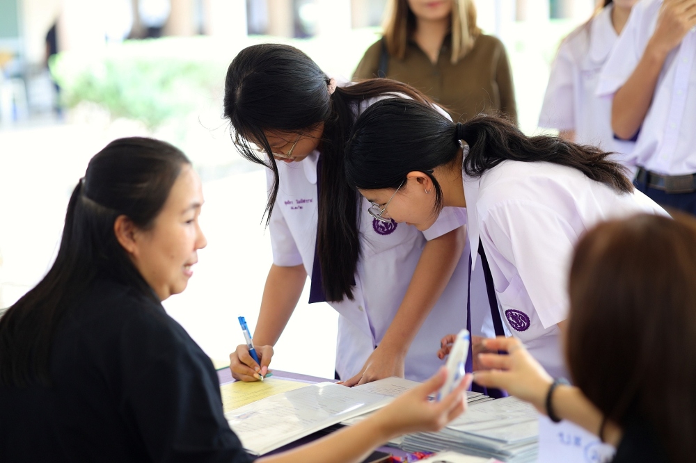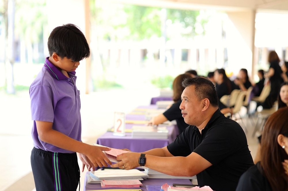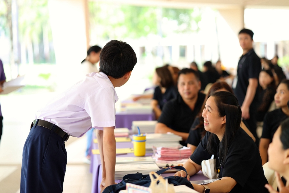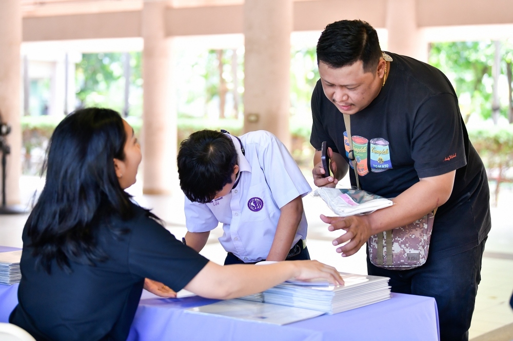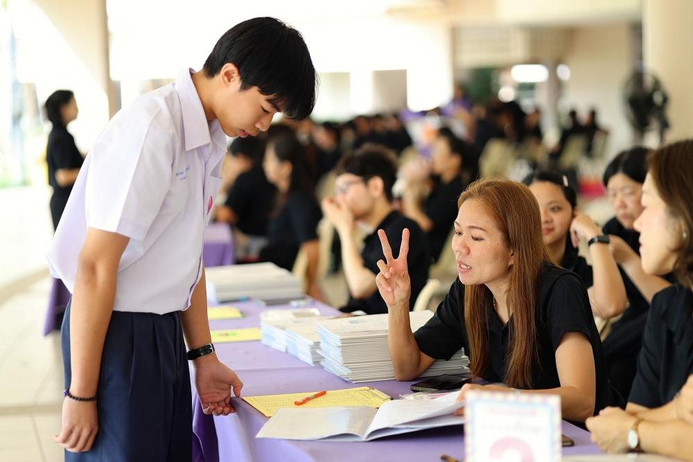 บรรยากาศการรับแบบรายงานผลการเรียน ของนักเรียนระดับชั้น ป.1 - ม.6 ปีการศึกษา 2568 ในวันศุกร์ที่ 27 มีนาคม 2569 เวลา 08.30 - 11.00 น. ณ บริเวณใต้อาคาร 3