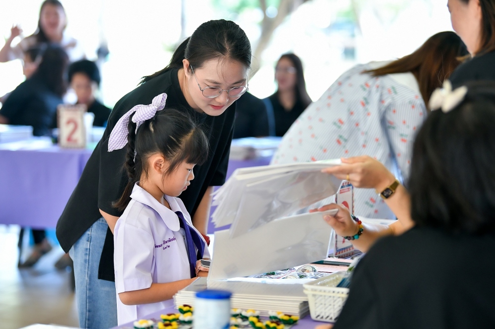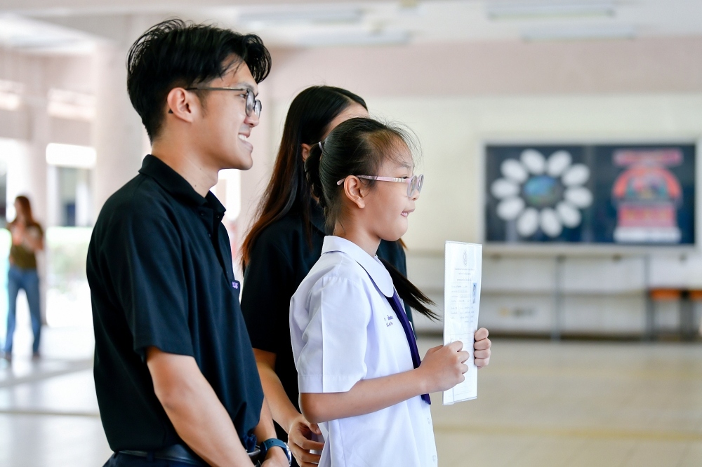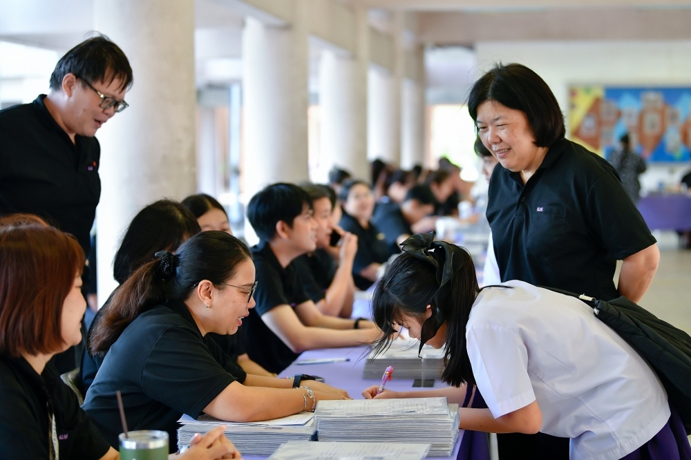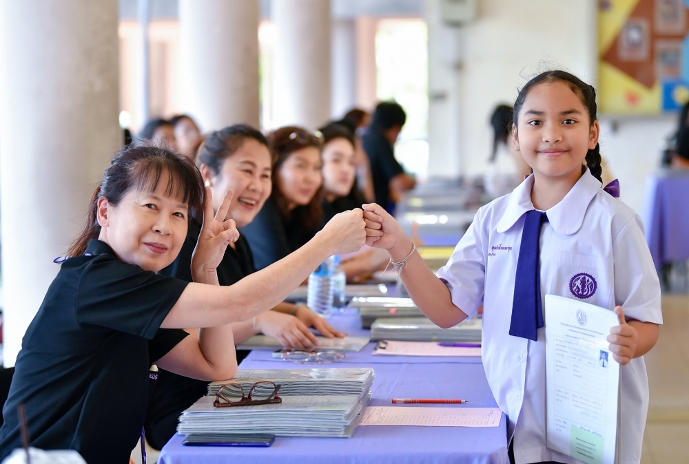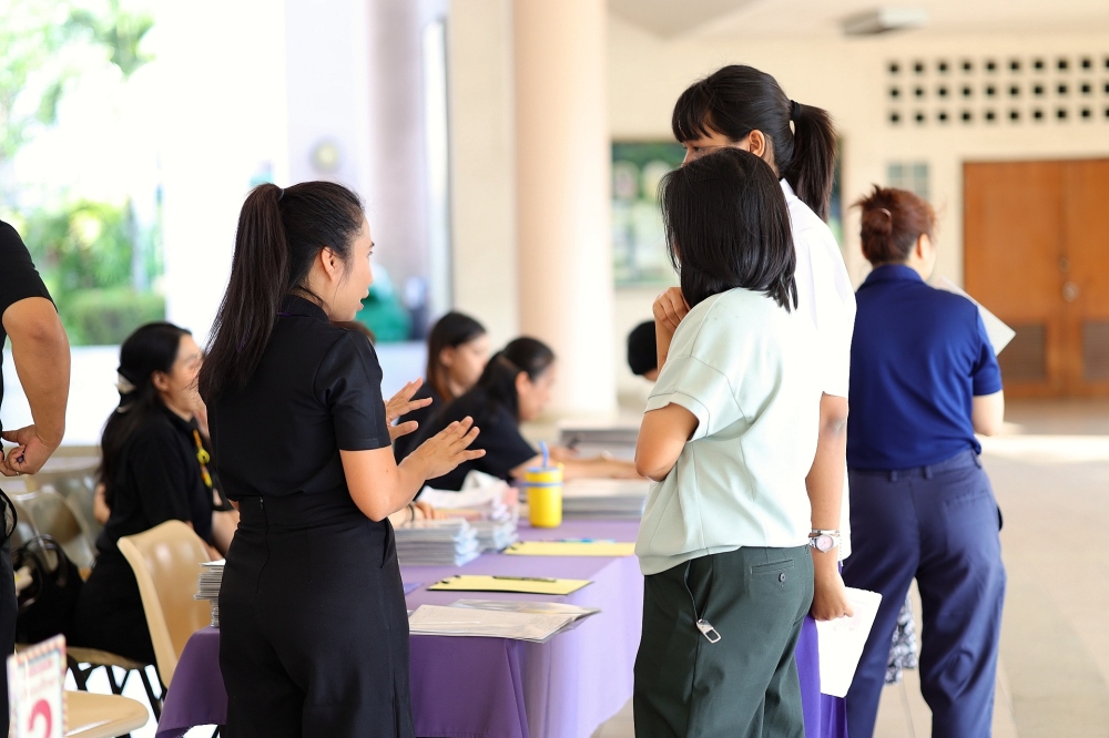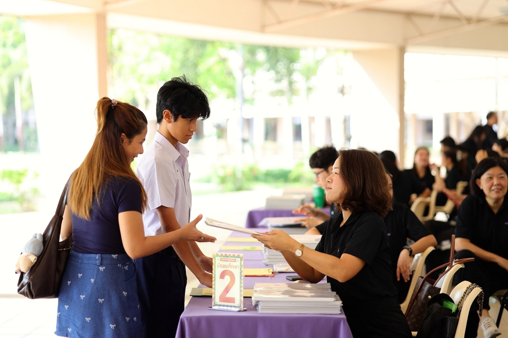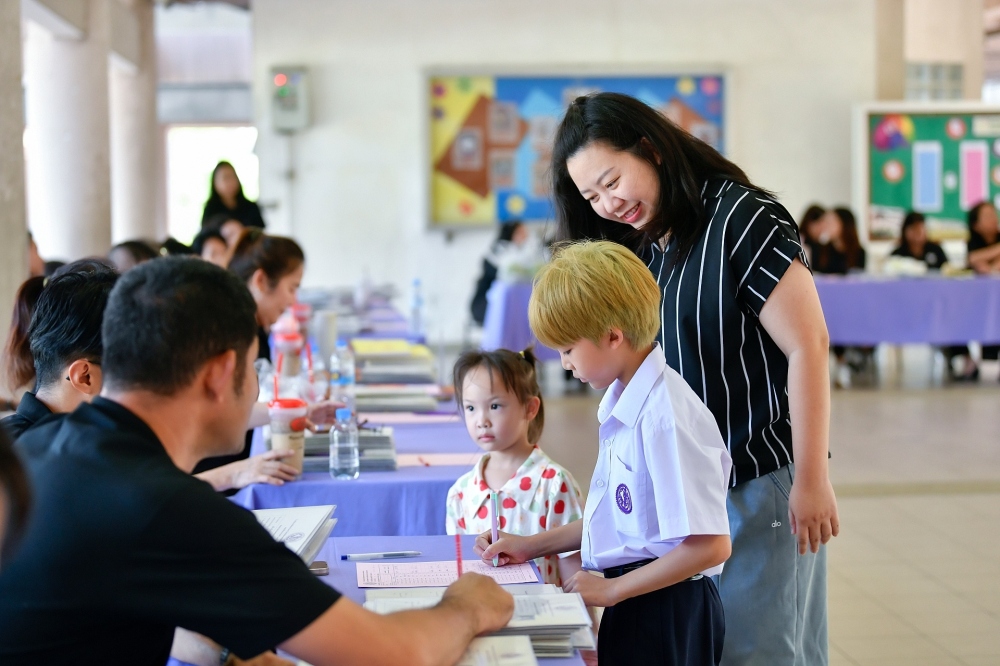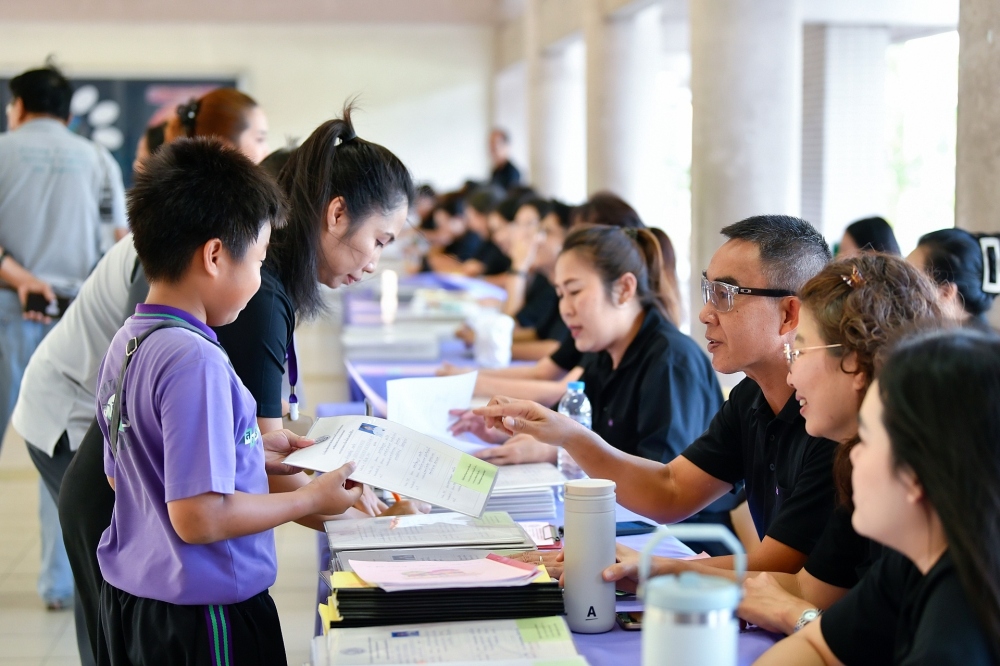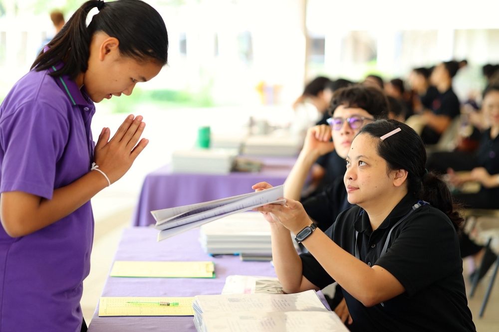 บรรยากาศการรับแบบรายงานผลการเรียน ของนักเรียนระดับชั้น ป.1 - ม.6 ปีการศึกษา 2568 ในวันศุกร์ที่ 27 มีนาคม 2569 เวลา 08.30 - 11.00 น. ณ บริเวณใต้อาคาร 3