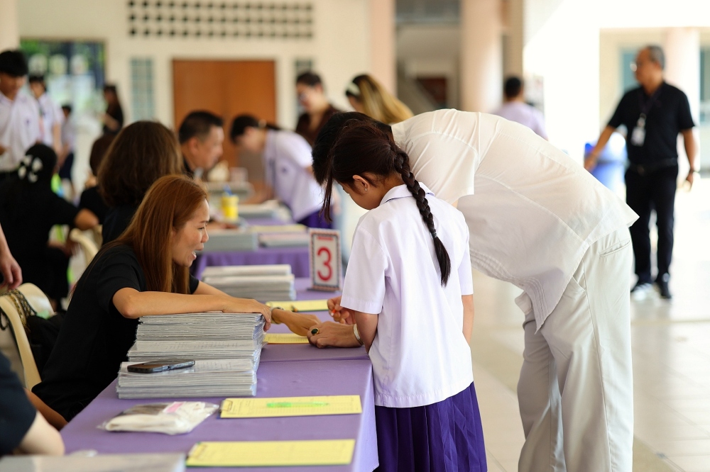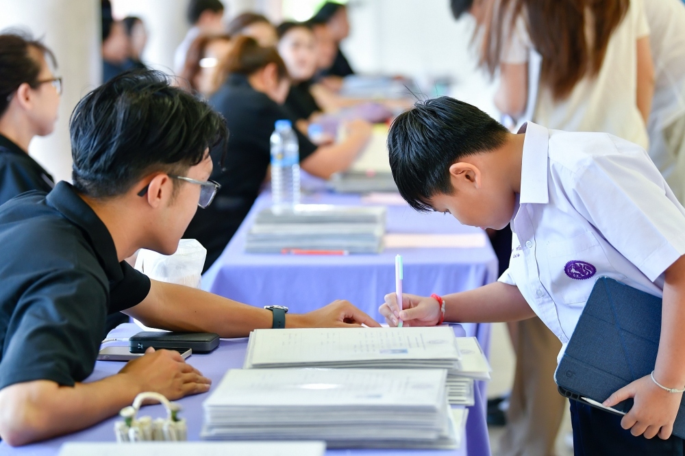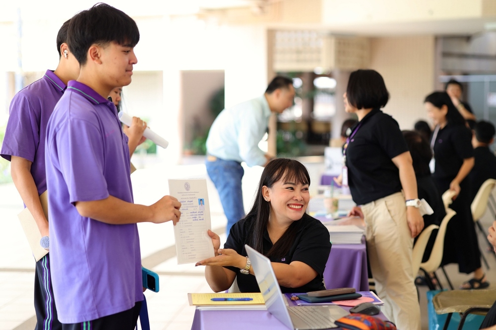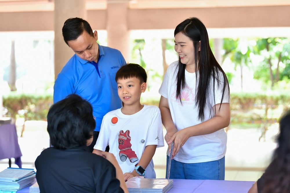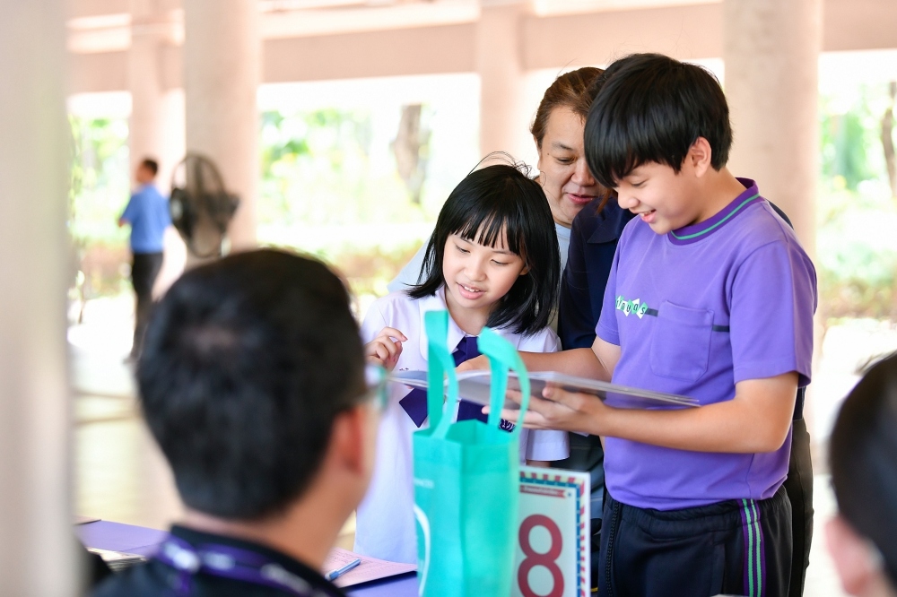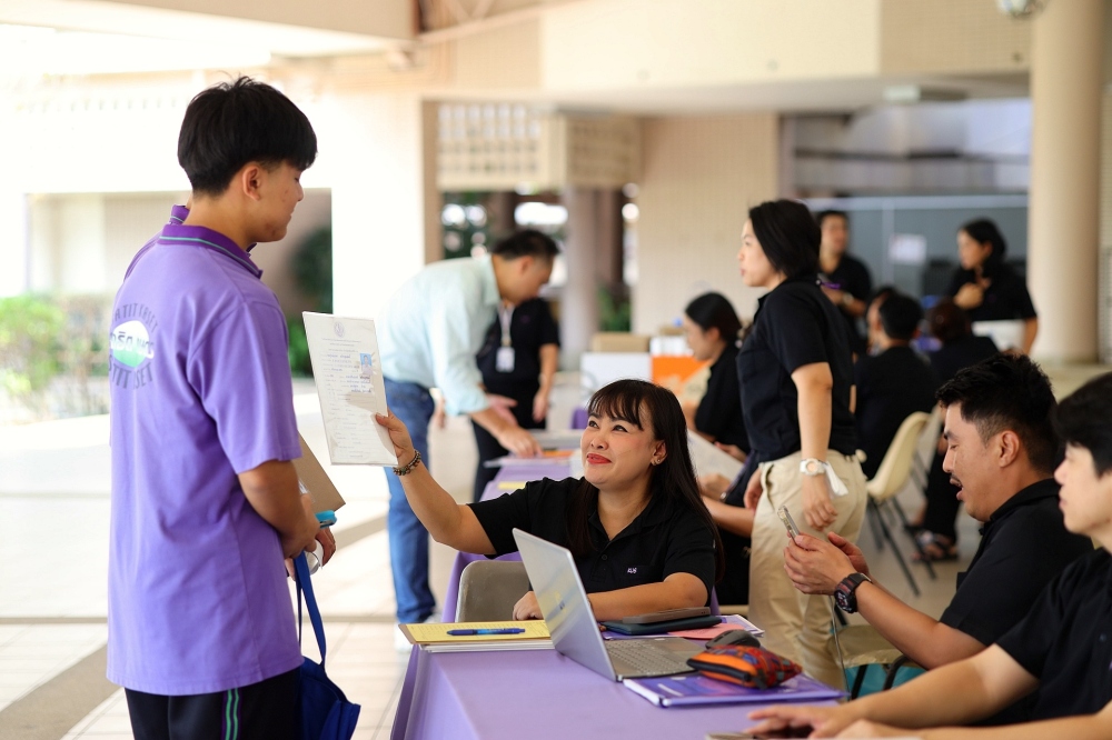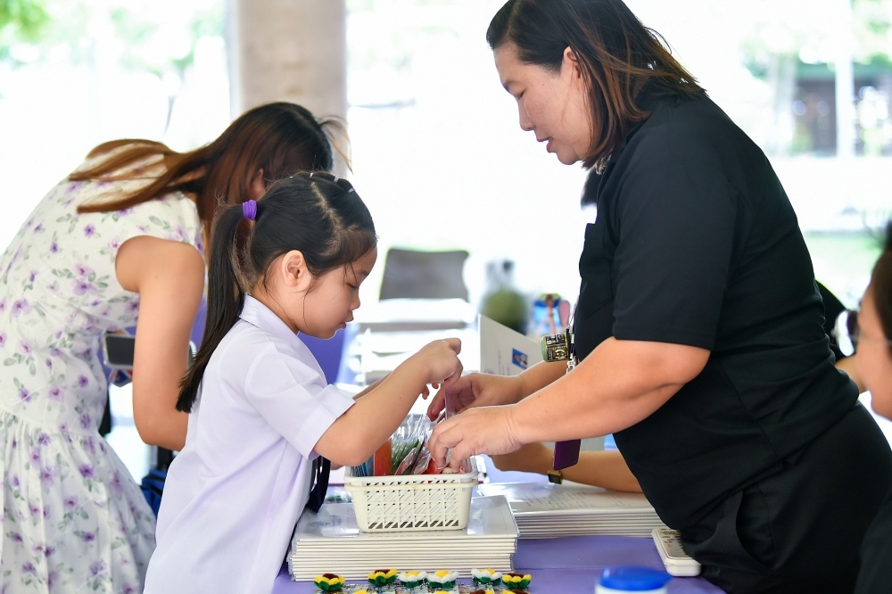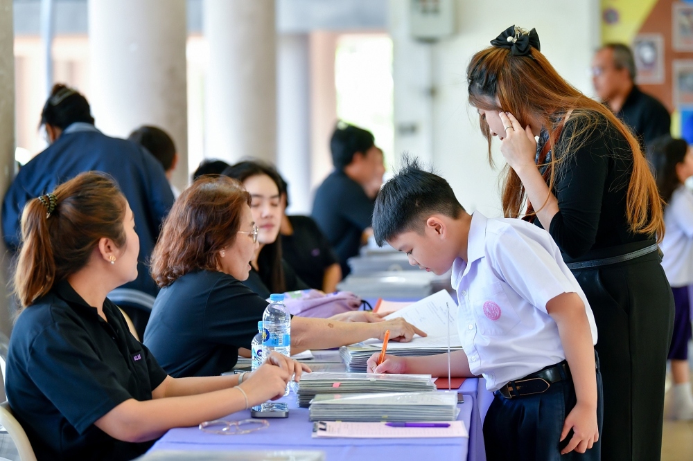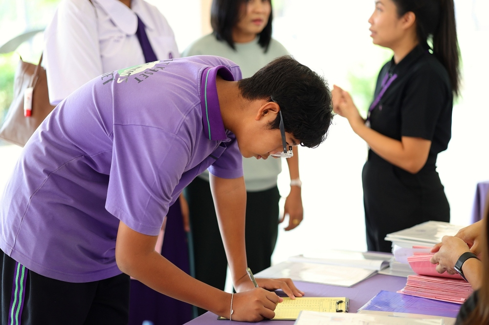 บรรยากาศการรับแบบรายงานผลการเรียน ของนักเรียนระดับชั้น ป.1 - ม.6 ปีการศึกษา 2568 ในวันศุกร์ที่ 27 มีนาคม 2569 เวลา 08.30 - 11.00 น. ณ บริเวณใต้อาคาร 3