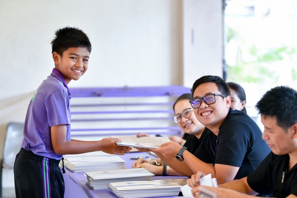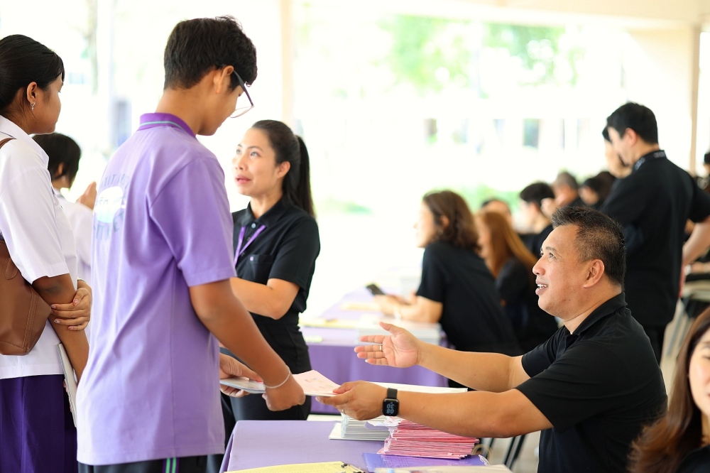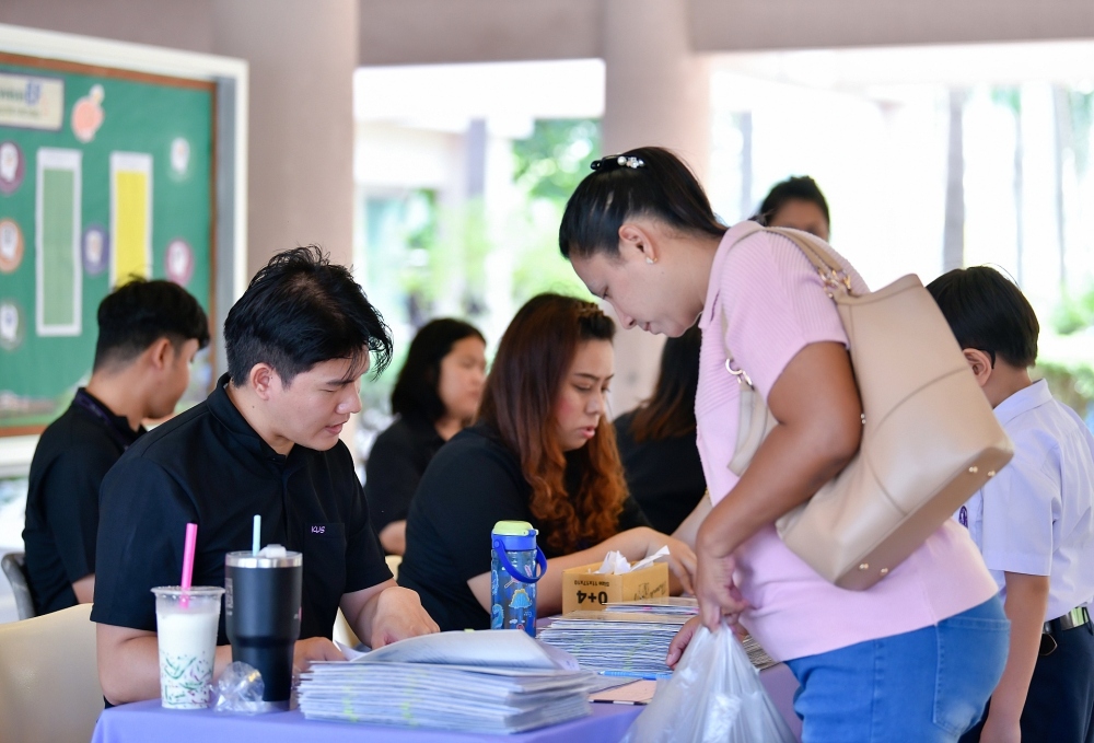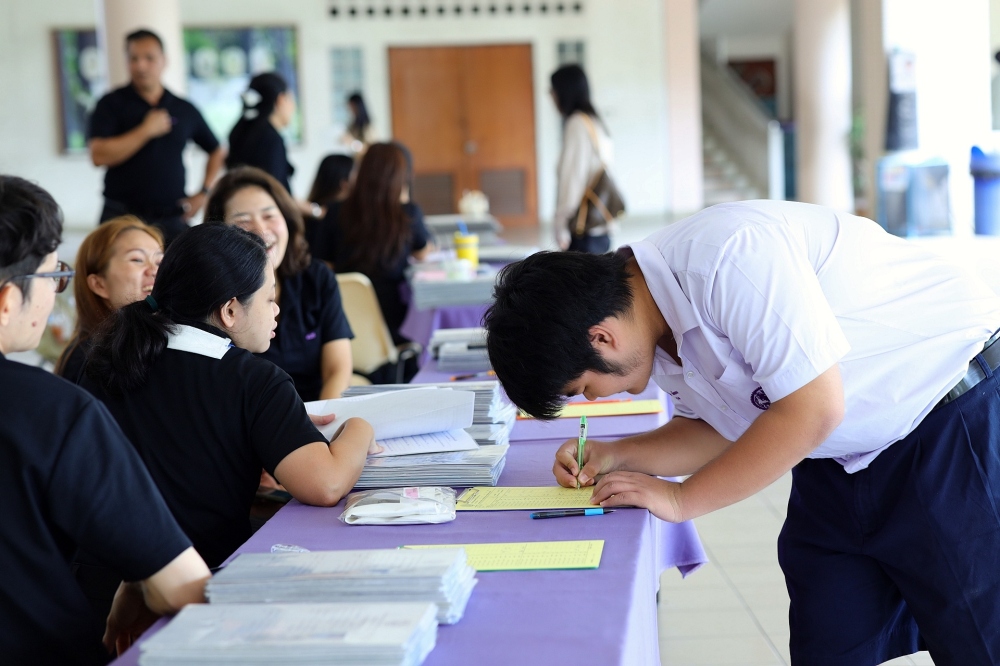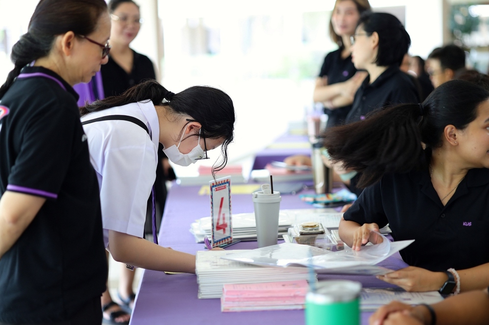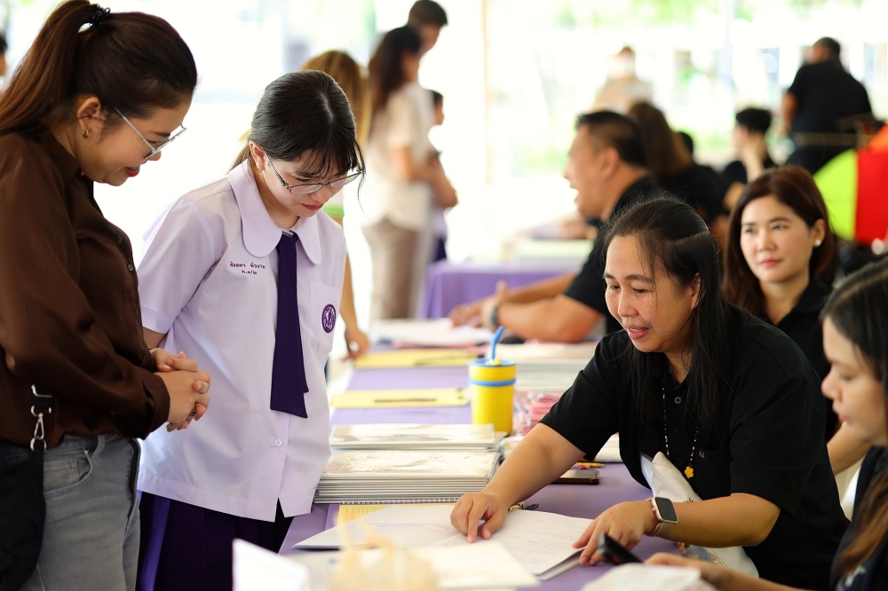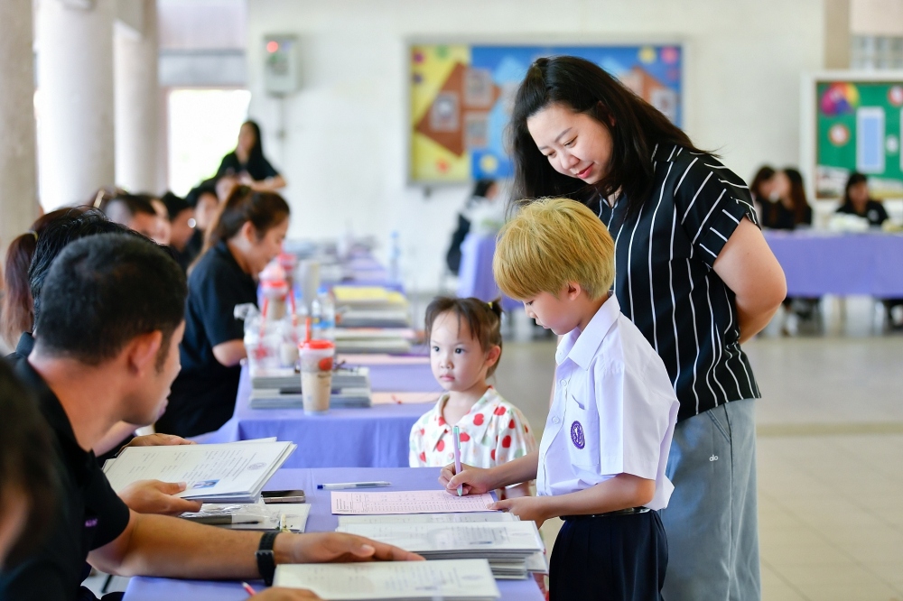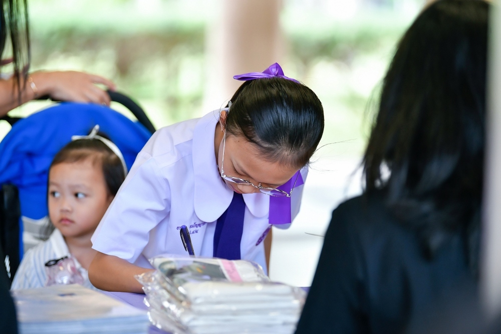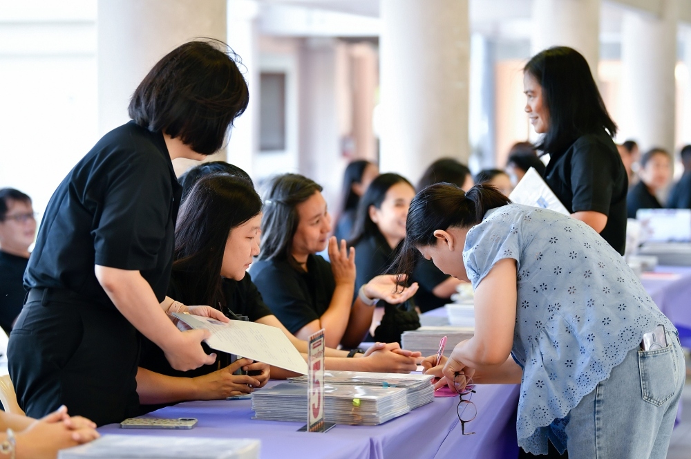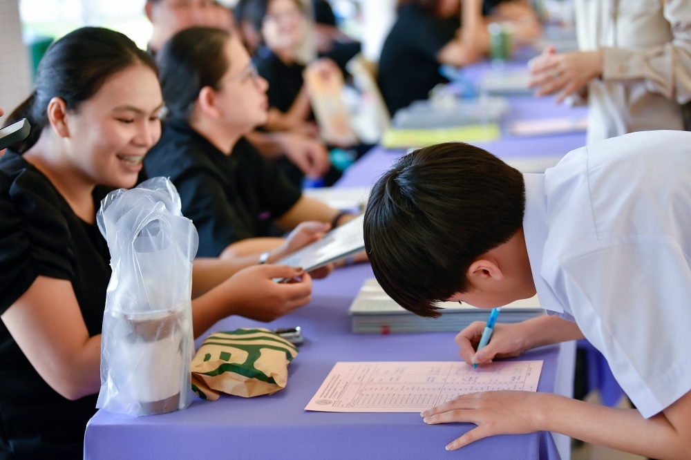 บรรยากาศการรับแบบรายงานผลการเรียน ของนักเรียนระดับชั้น ป.1 - ม.6 ปีการศึกษา 2568 ในวันศุกร์ที่ 27 มีนาคม 2569 เวลา 08.30 - 11.00 น. ณ บริเวณใต้อาคาร 3