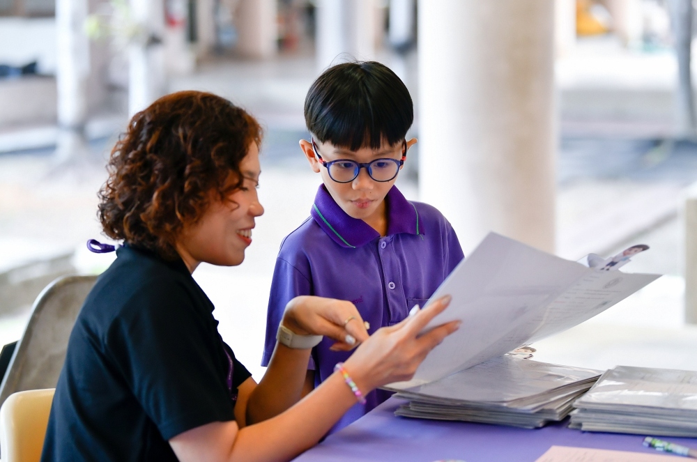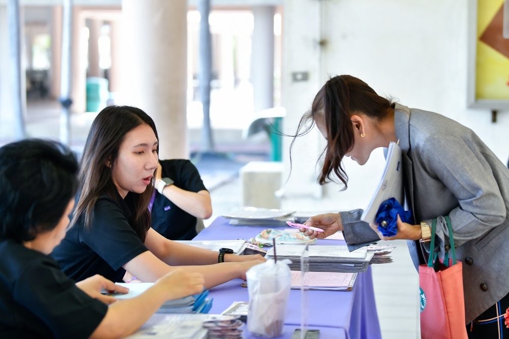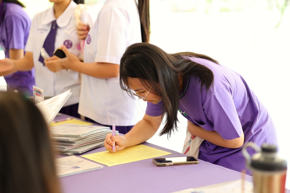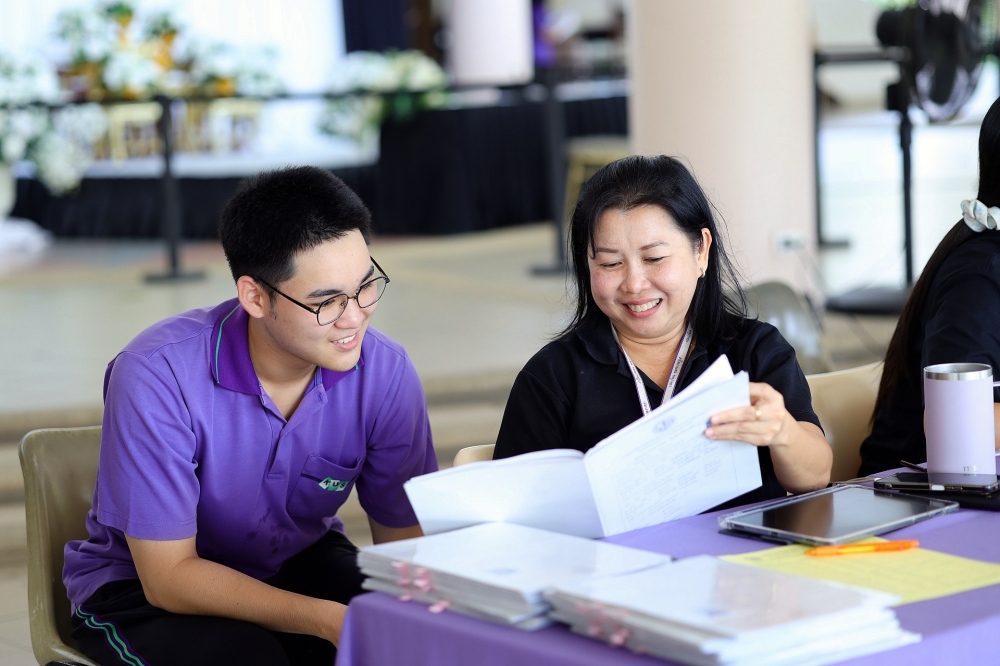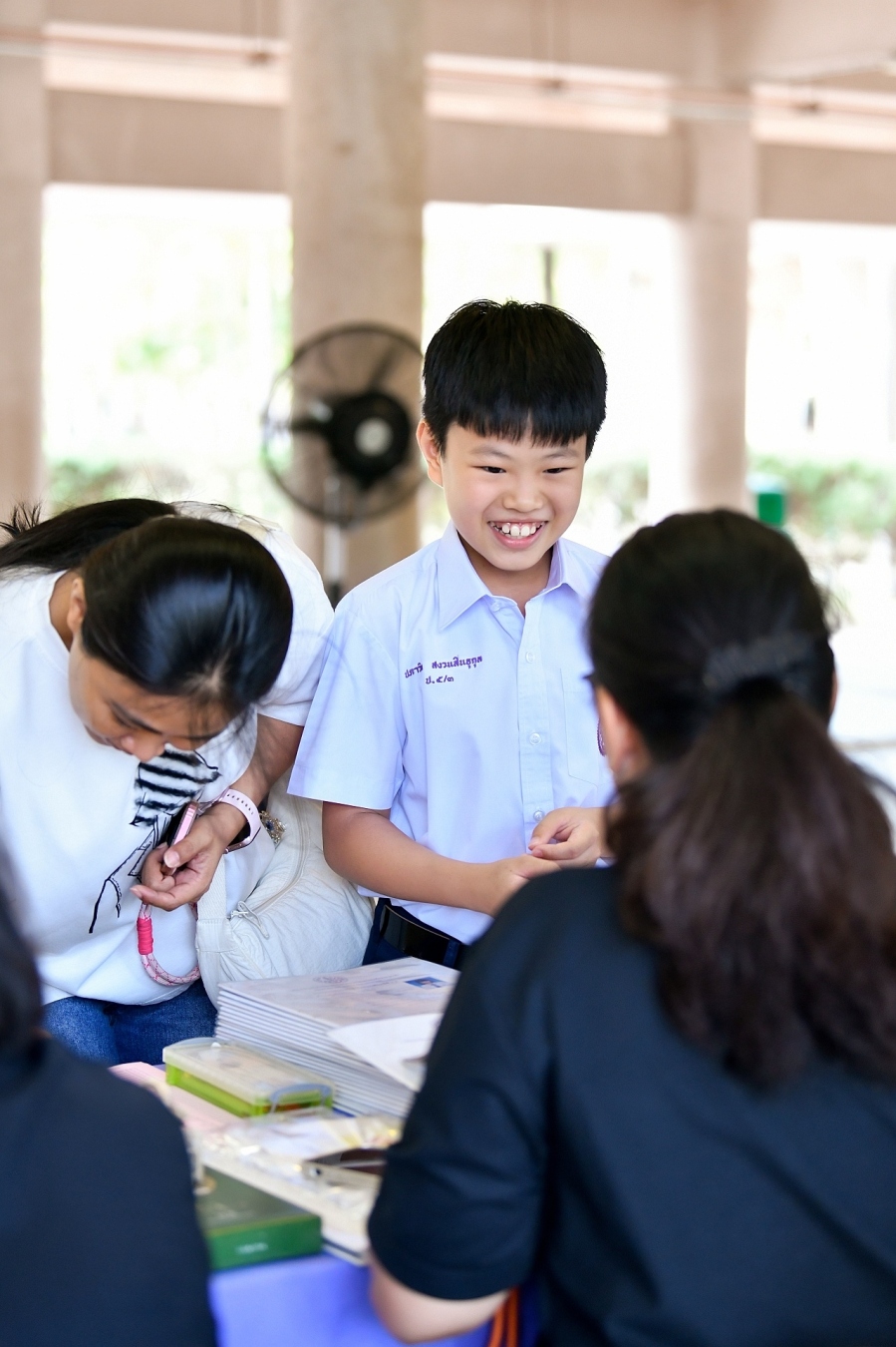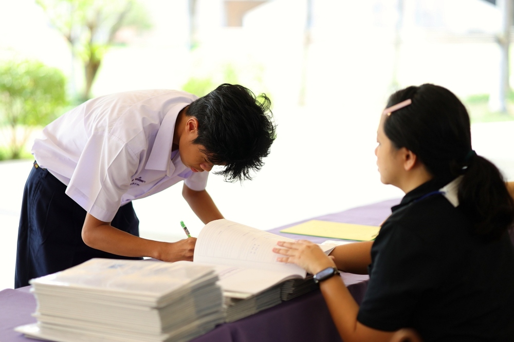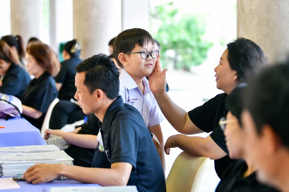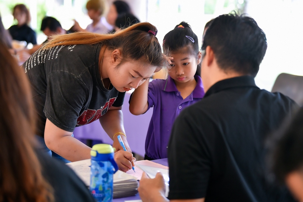 บรรยากาศการรับแบบรายงานผลการเรียน ของนักเรียนระดับชั้น ป.1 - ม.6 ปีการศึกษา 2568 ในวันศุกร์ที่ 27 มีนาคม 2569 เวลา 08.30 - 11.00 น. ณ บริเวณใต้อาคาร 3