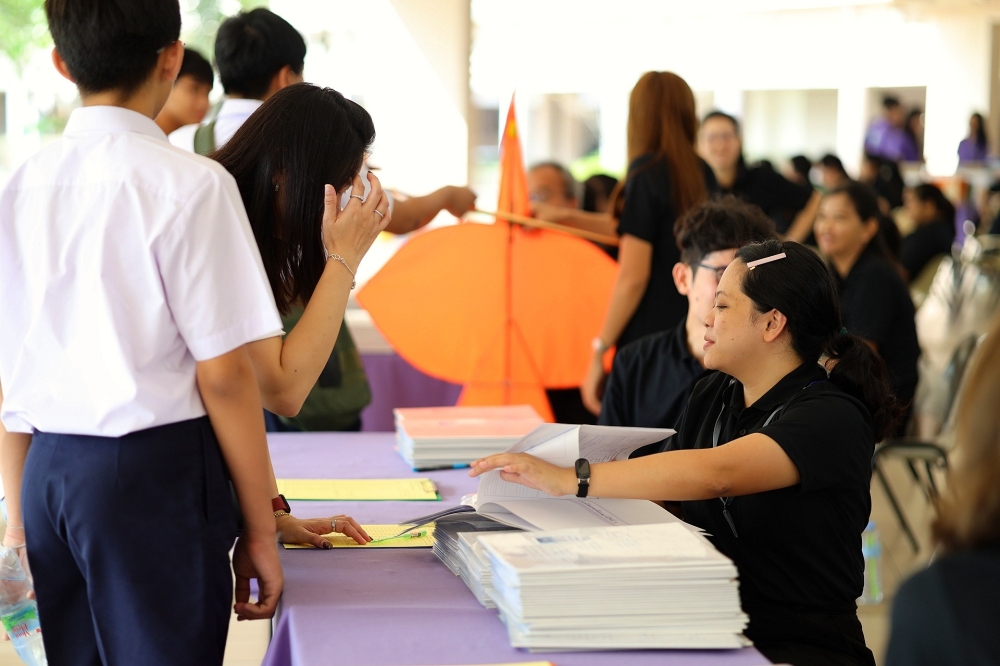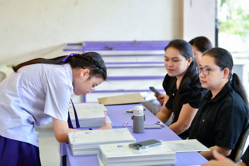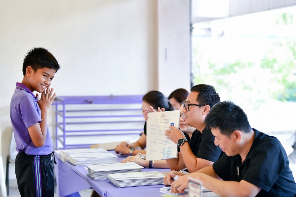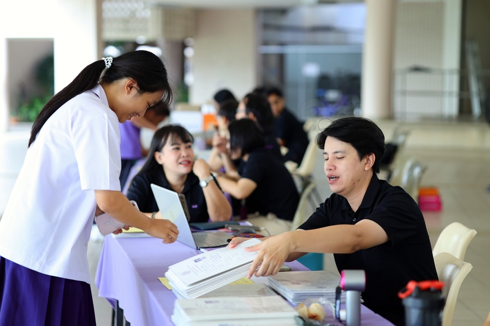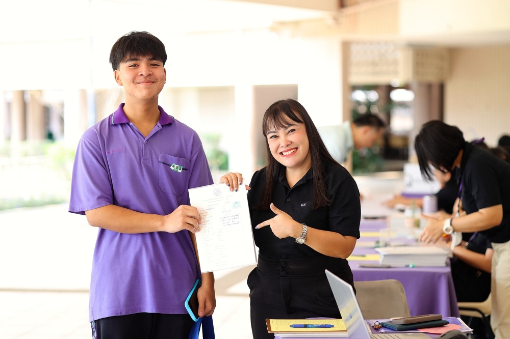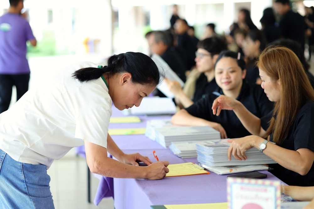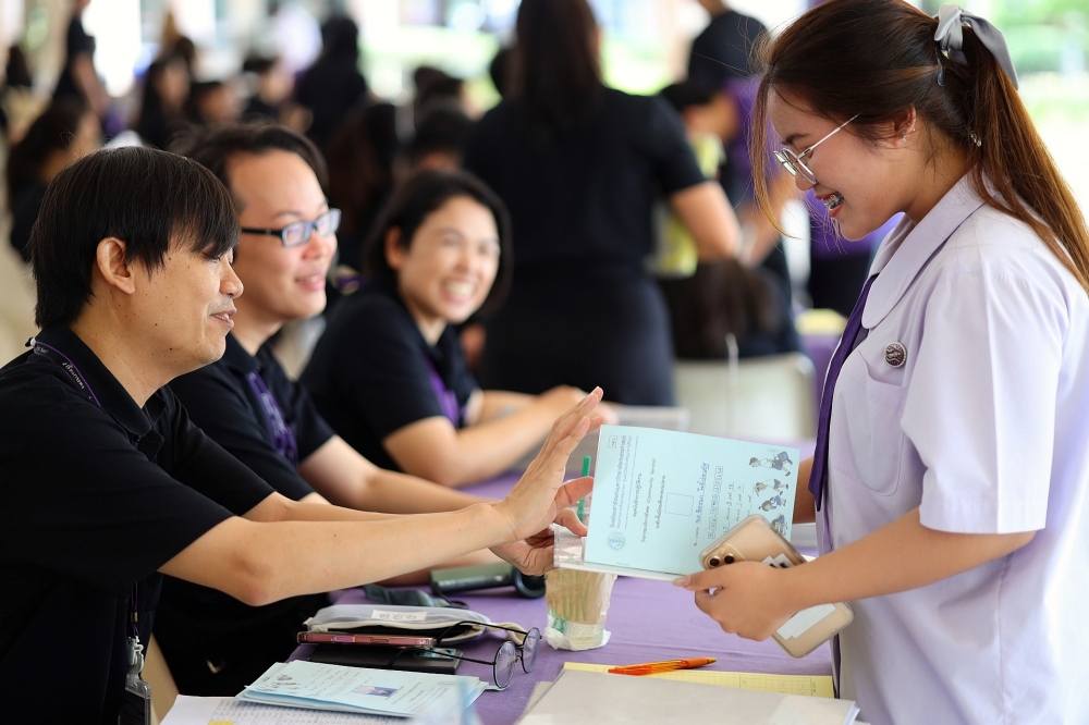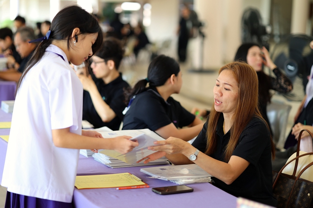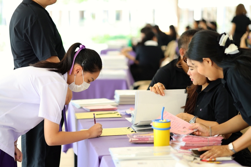 บรรยากาศการรับแบบรายงานผลการเรียน ของนักเรียนระดับชั้น ป.1 - ม.6 ปีการศึกษา 2568 ในวันศุกร์ที่ 27 มีนาคม 2569 เวลา 08.30 - 11.00 น. ณ บริเวณใต้อาคาร 3
