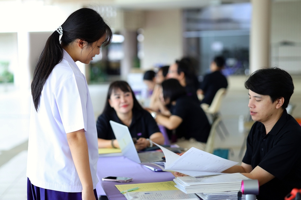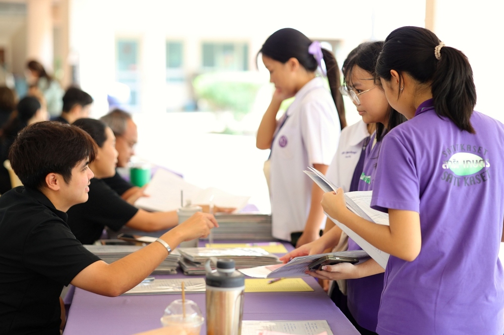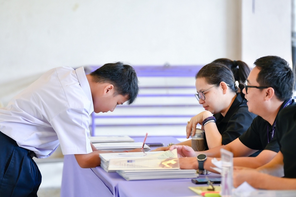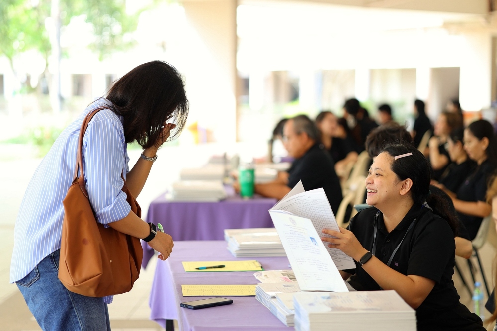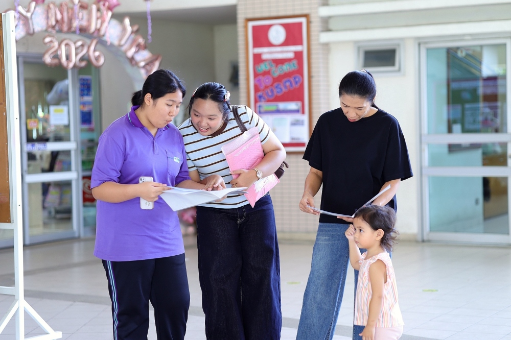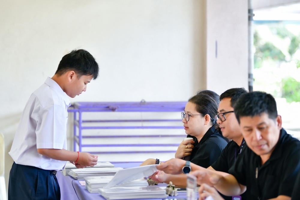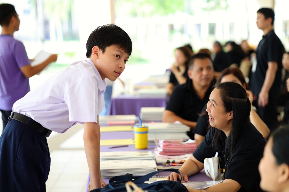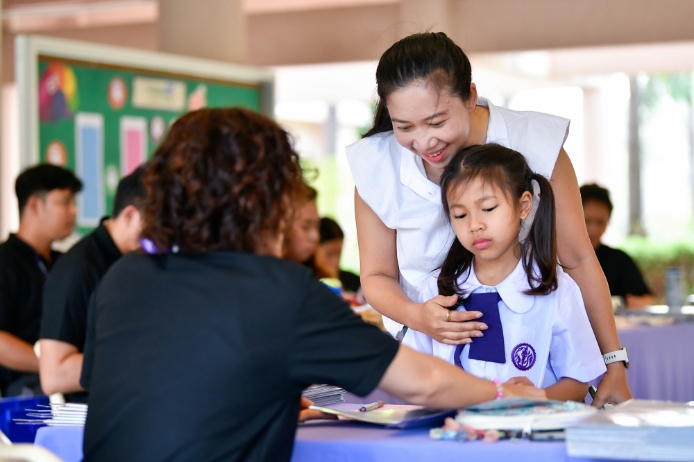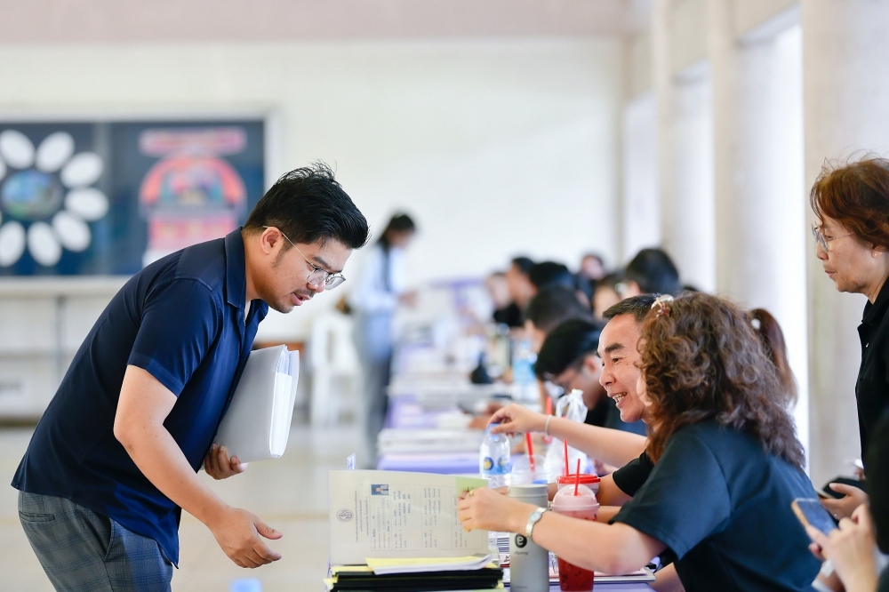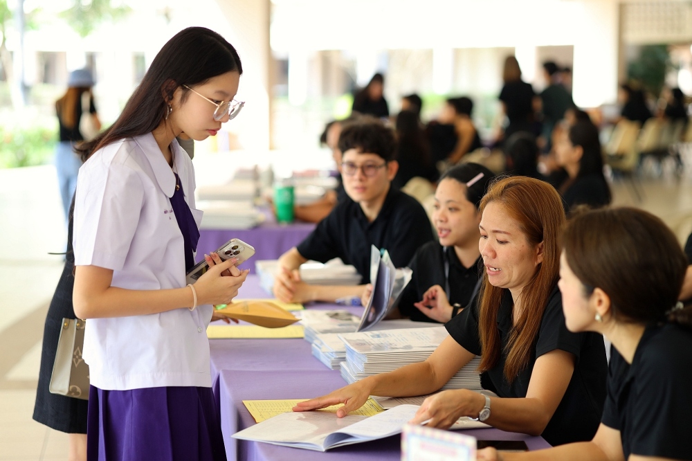 บรรยากาศการรับแบบรายงานผลการเรียน ของนักเรียนระดับชั้น ป.1 - ม.6 ปีการศึกษา 2568 ในวันศุกร์ที่ 27 มีนาคม 2569 เวลา 08.30 - 11.00 น. ณ บริเวณใต้อาคาร 3