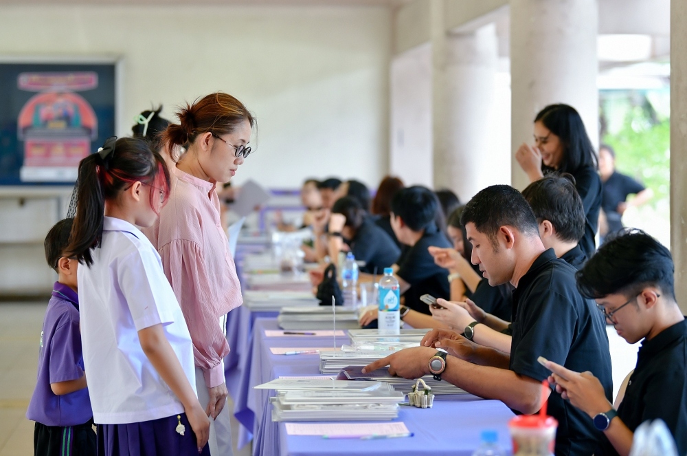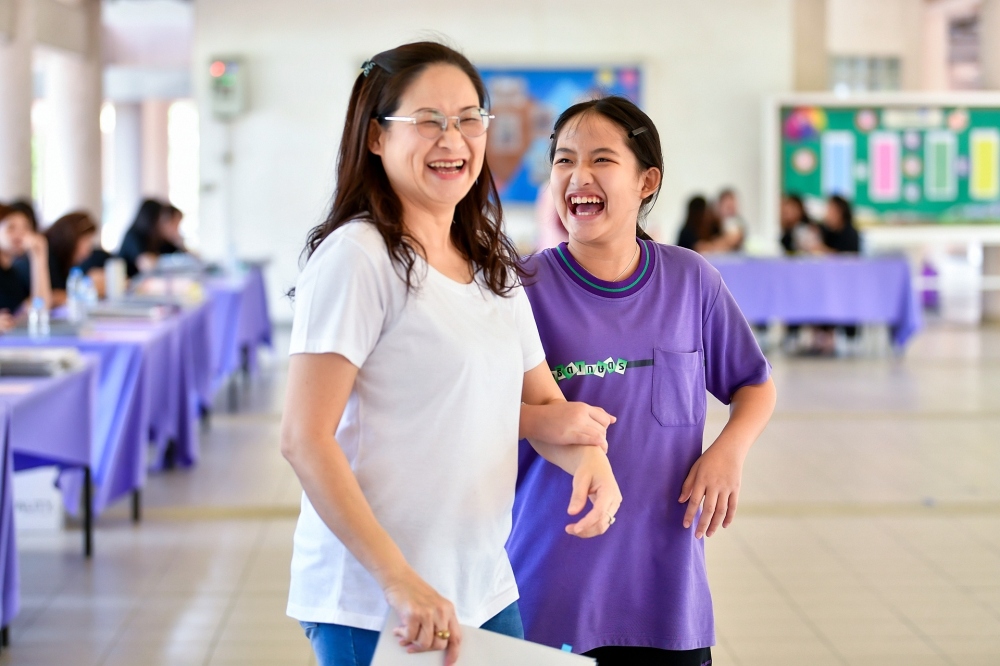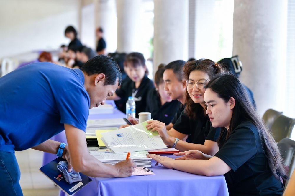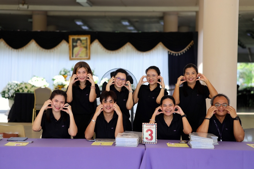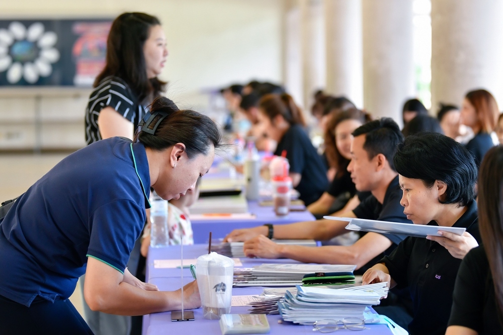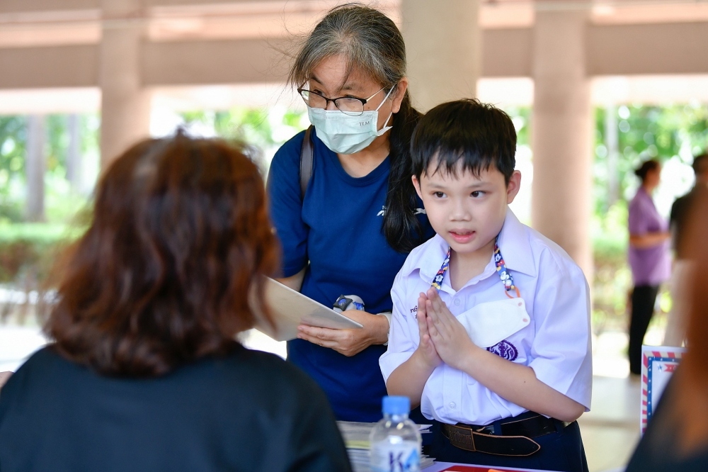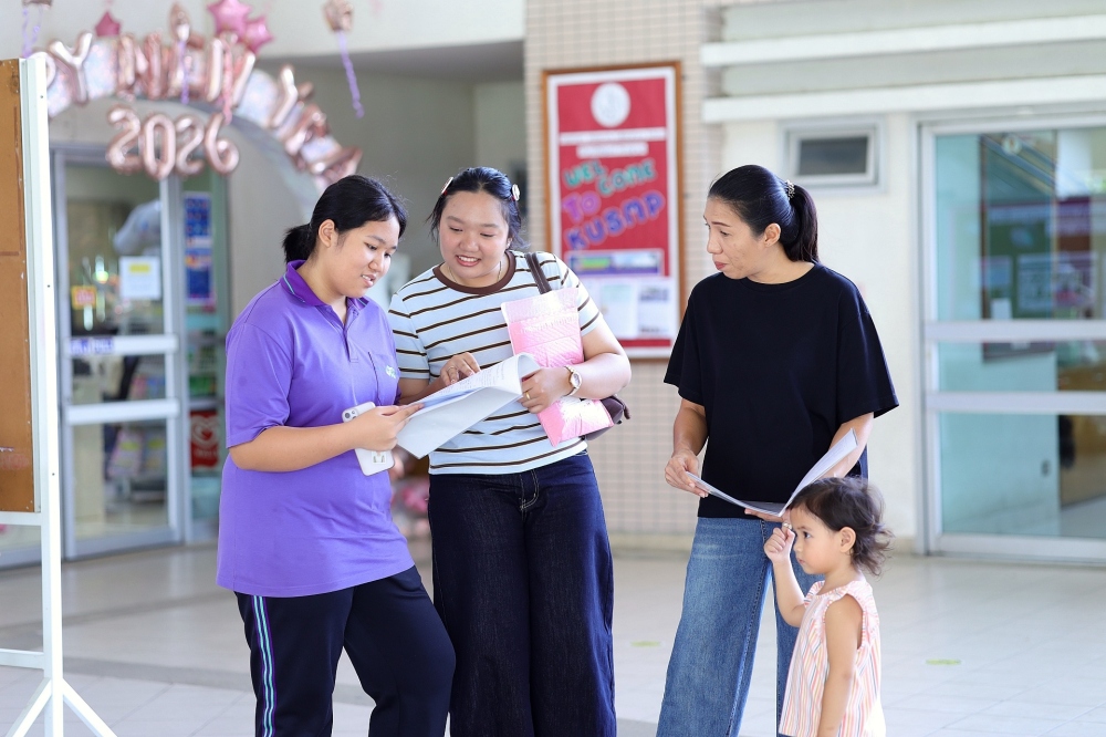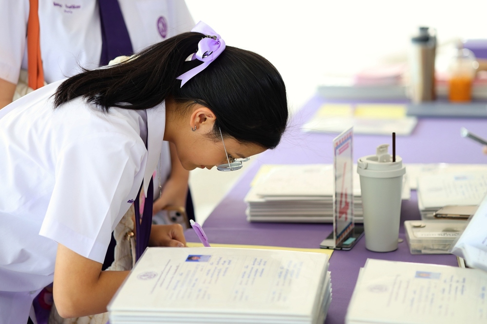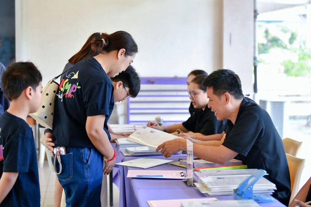 บรรยากาศการรับแบบรายงานผลการเรียน ของนักเรียนระดับชั้น ป.1 - ม.6 ปีการศึกษา 2568 ในวันศุกร์ที่ 27 มีนาคม 2569 เวลา 08.30 - 11.00 น. ณ บริเวณใต้อาคาร 3