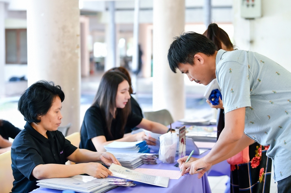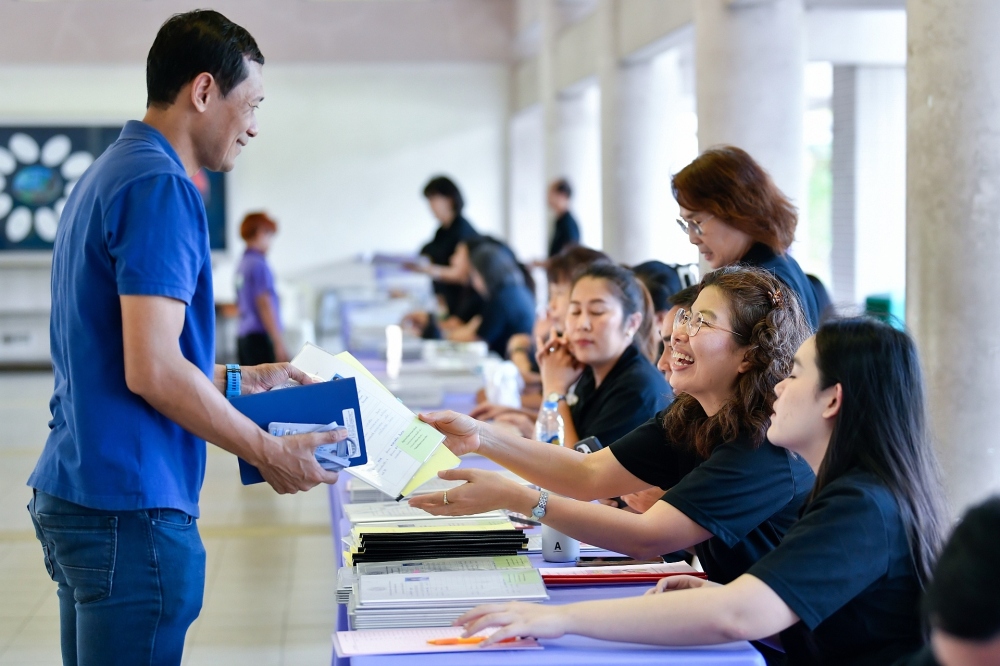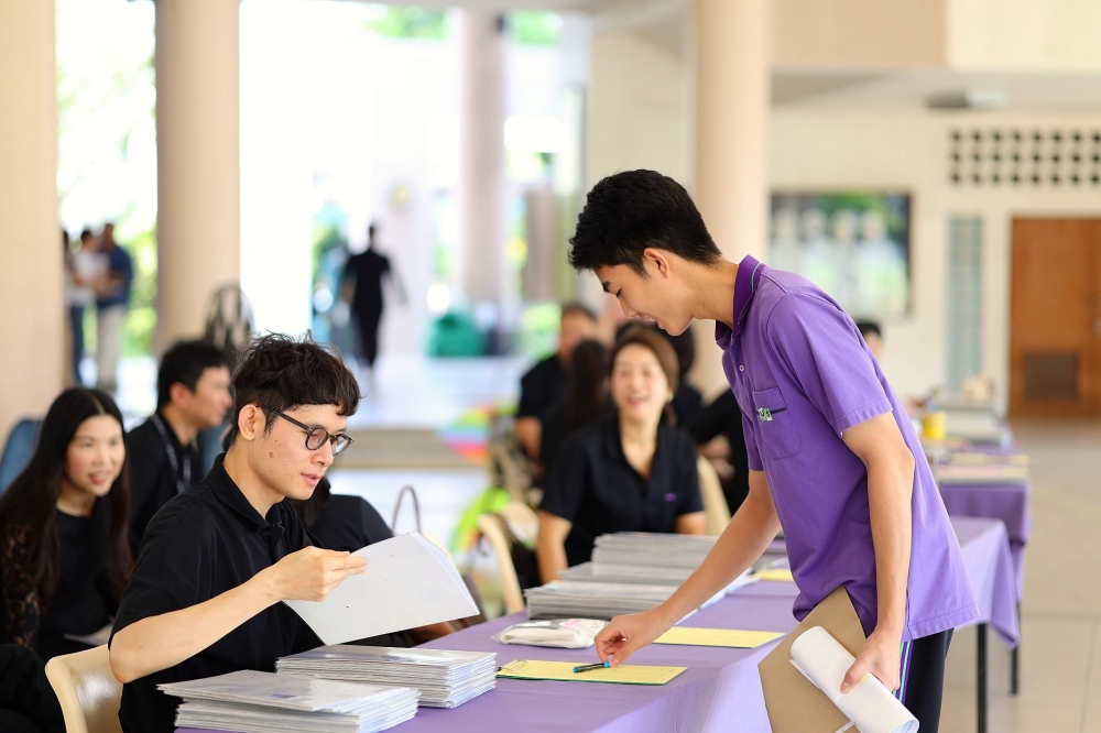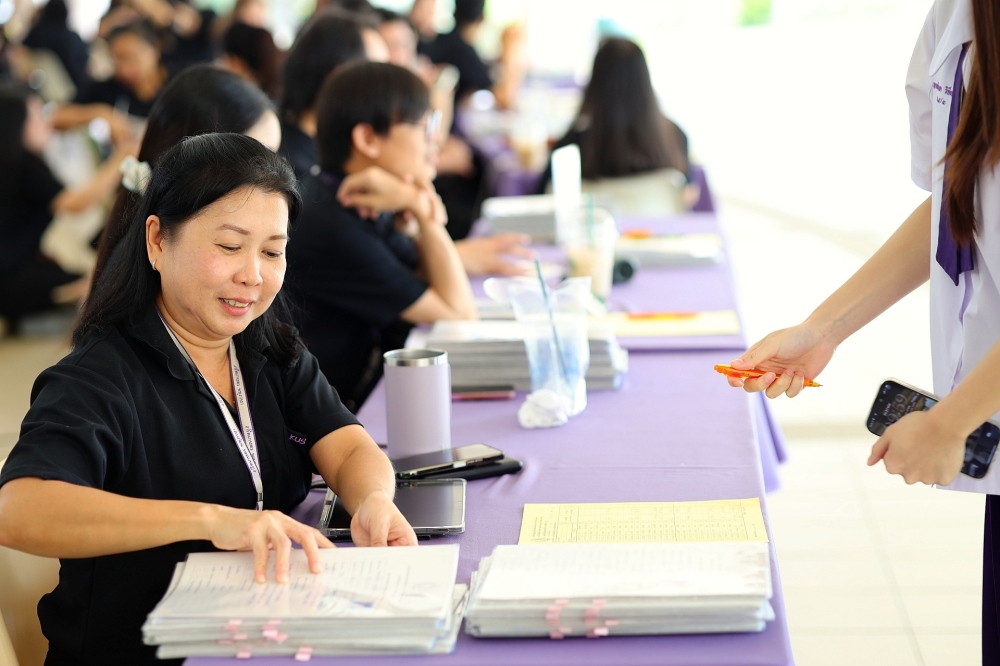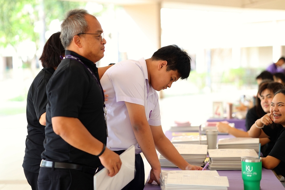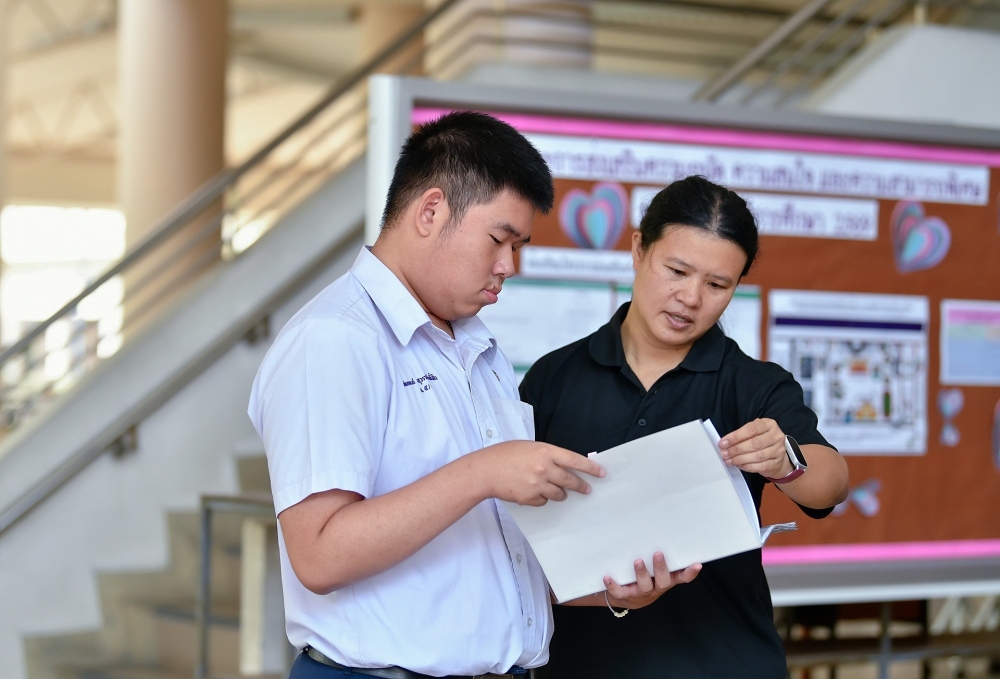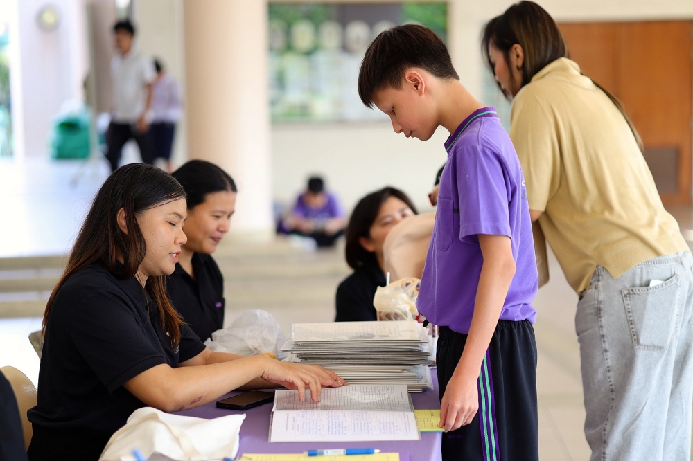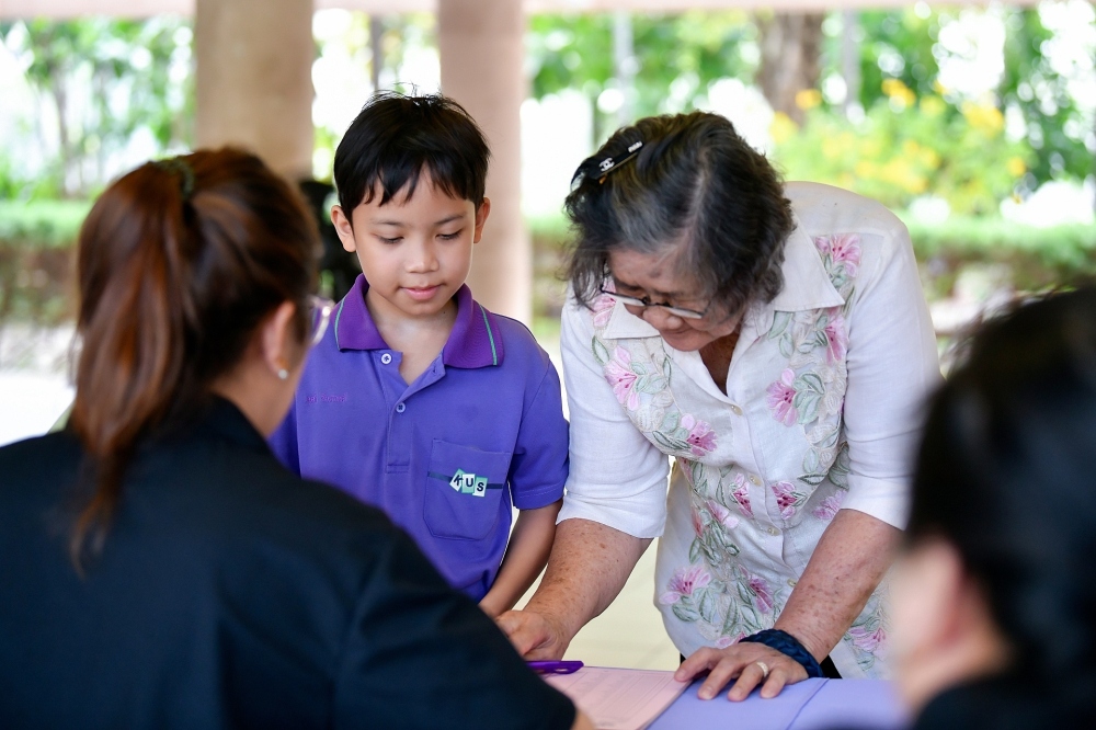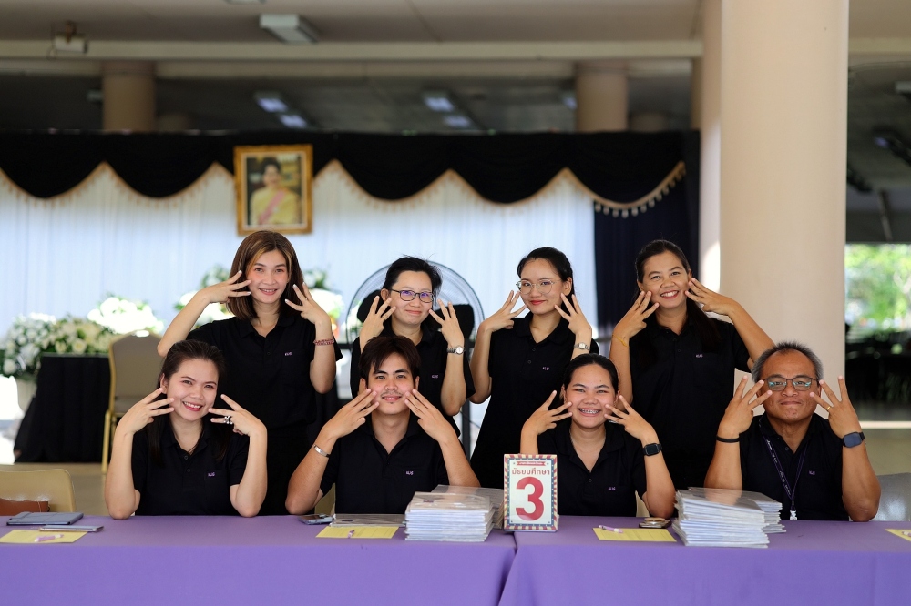 บรรยากาศการรับแบบรายงานผลการเรียน ของนักเรียนระดับชั้น ป.1 - ม.6 ปีการศึกษา 2568 ในวันศุกร์ที่ 27 มีนาคม 2569 เวลา 08.30 - 11.00 น. ณ บริเวณใต้อาคาร 3