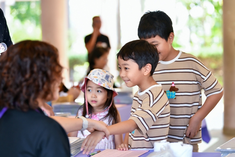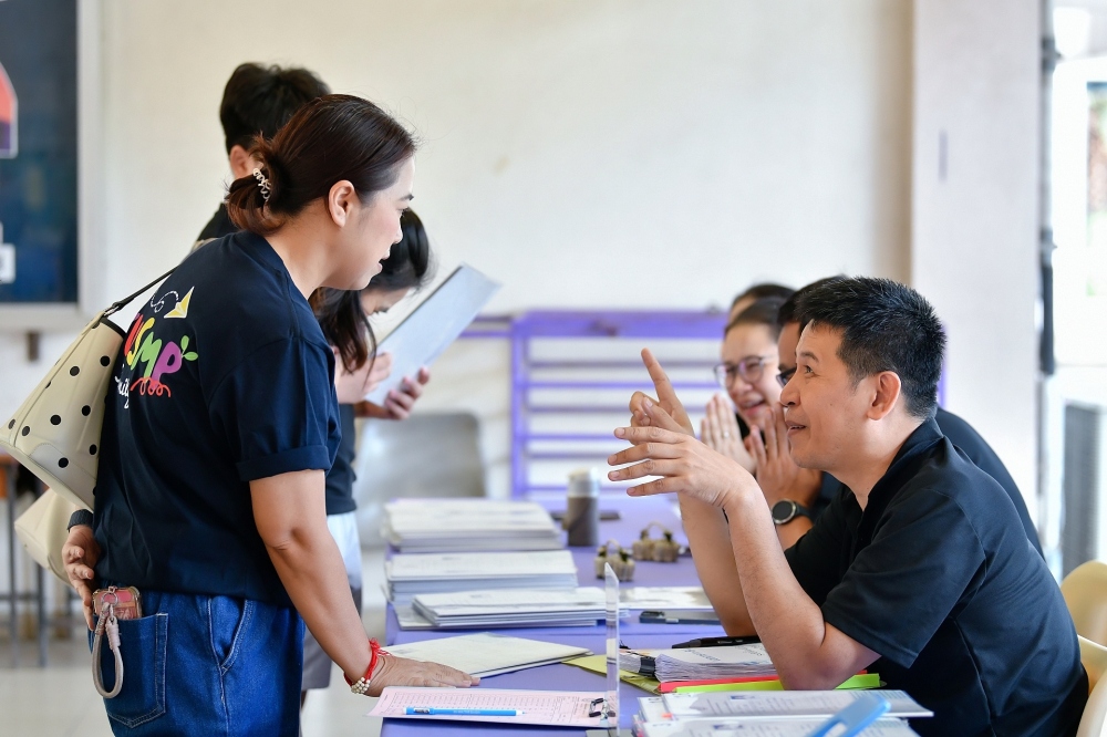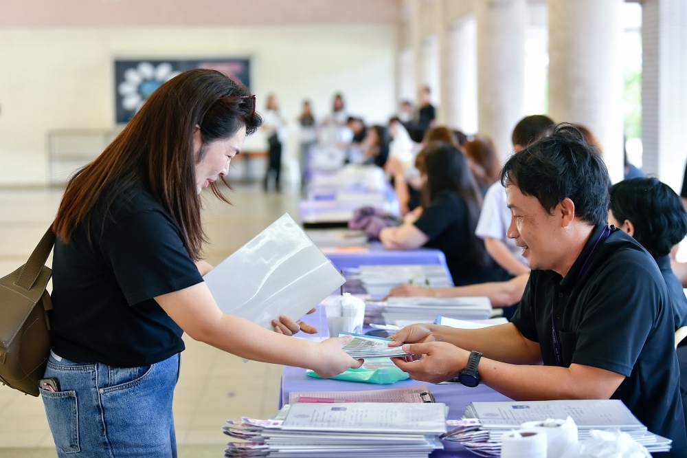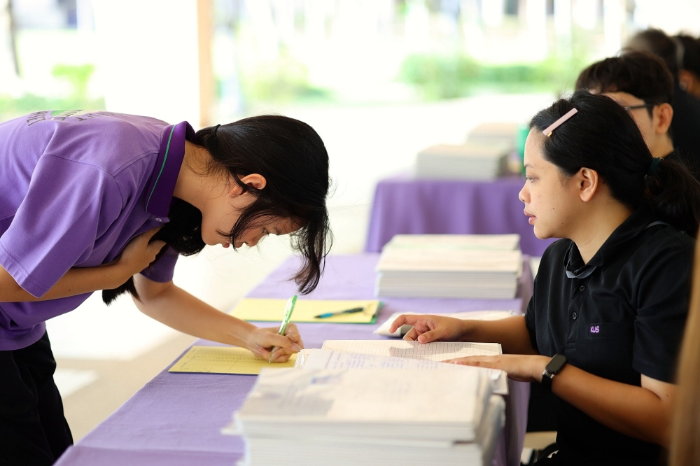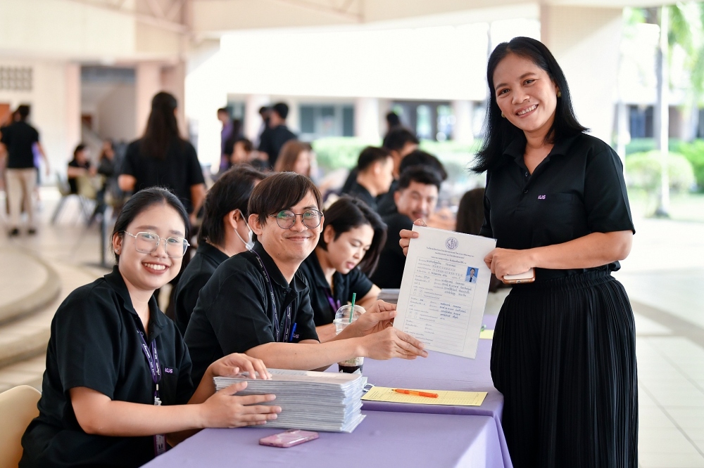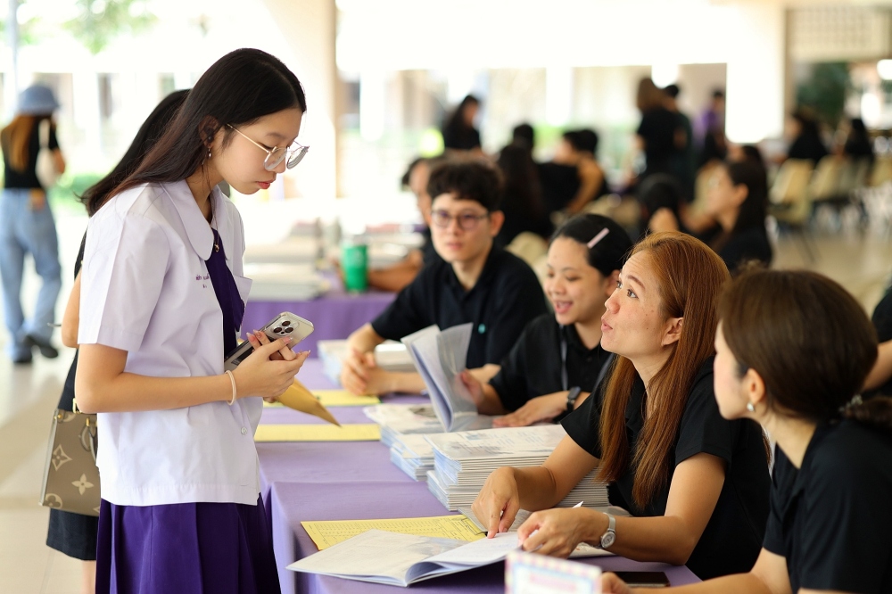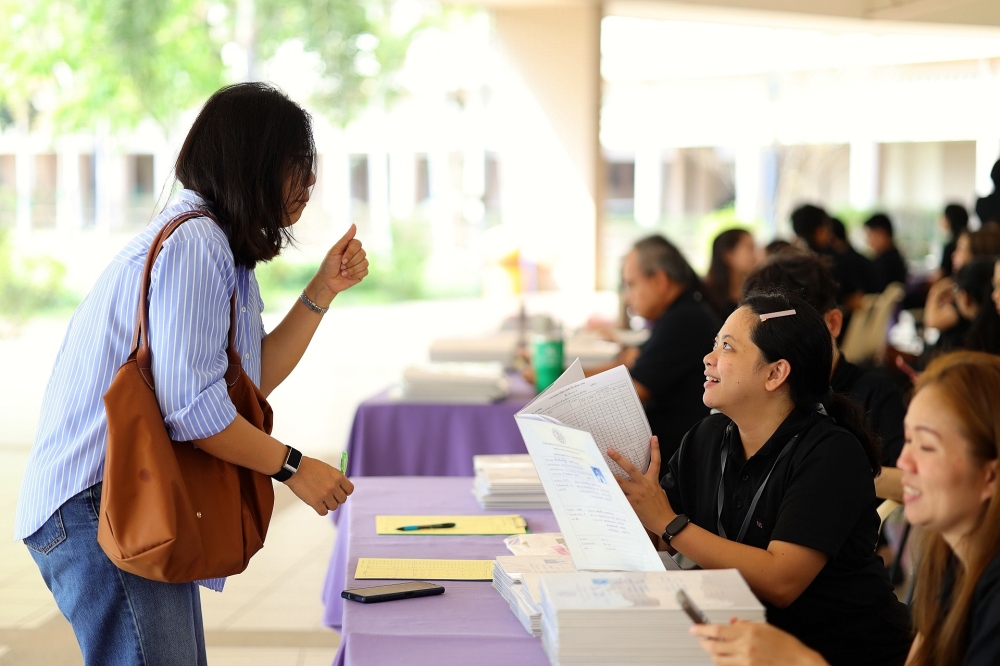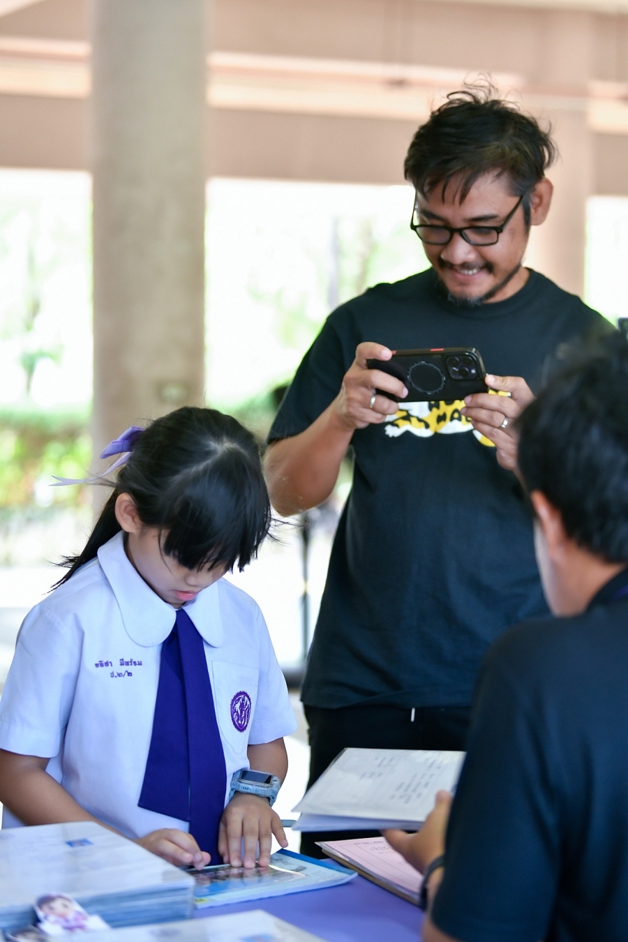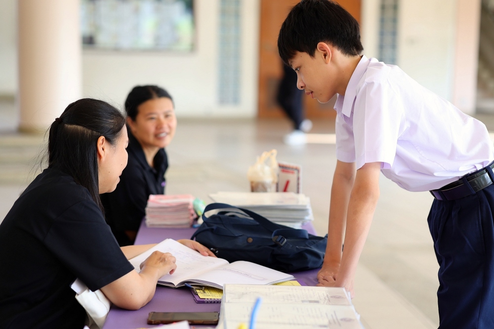 บรรยากาศการรับแบบรายงานผลการเรียน ของนักเรียนระดับชั้น ป.1 - ม.6 ปีการศึกษา 2568 ในวันศุกร์ที่ 27 มีนาคม 2569 เวลา 08.30 - 11.00 น. ณ บริเวณใต้อาคาร 3