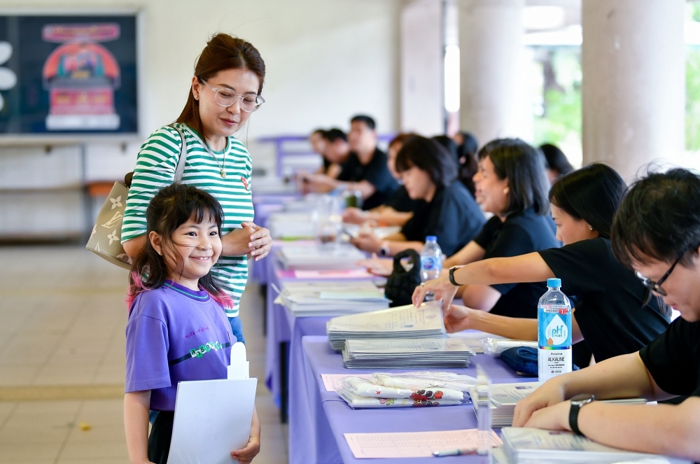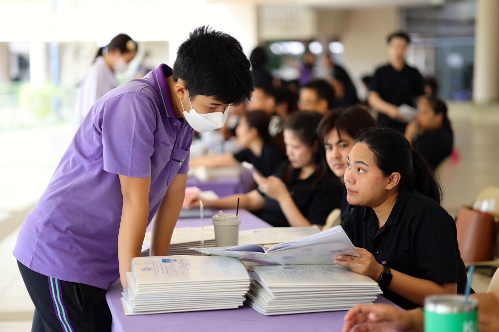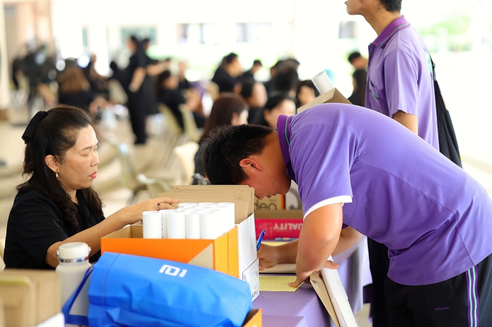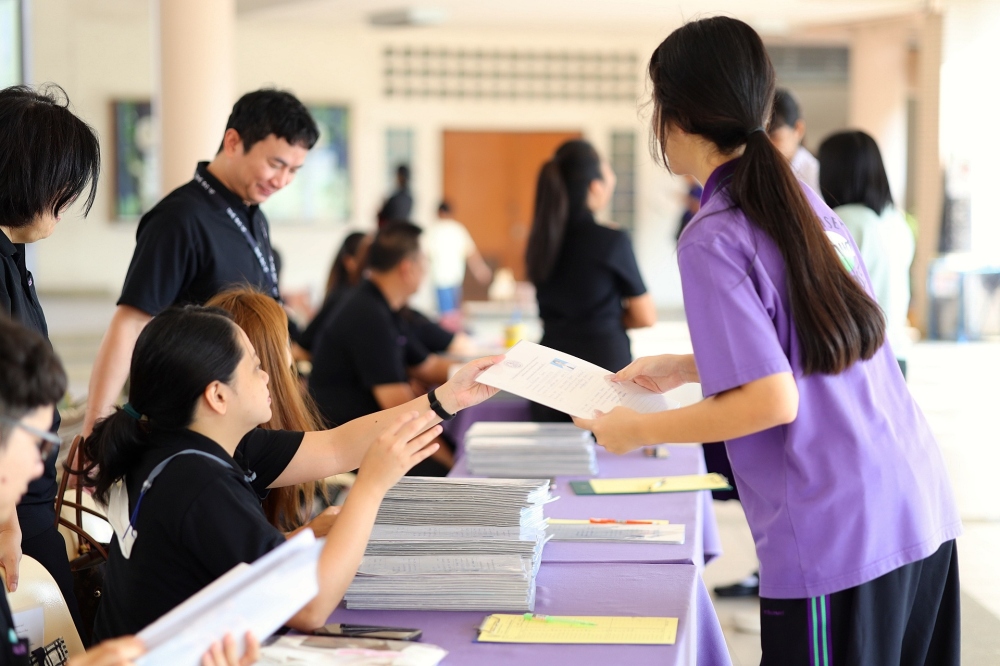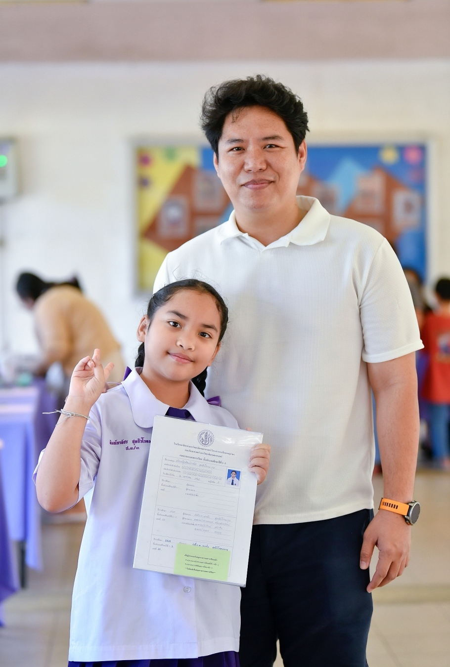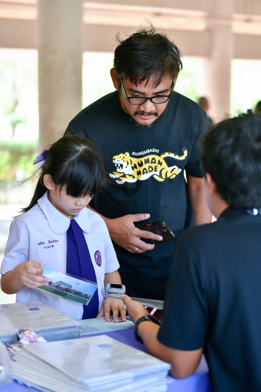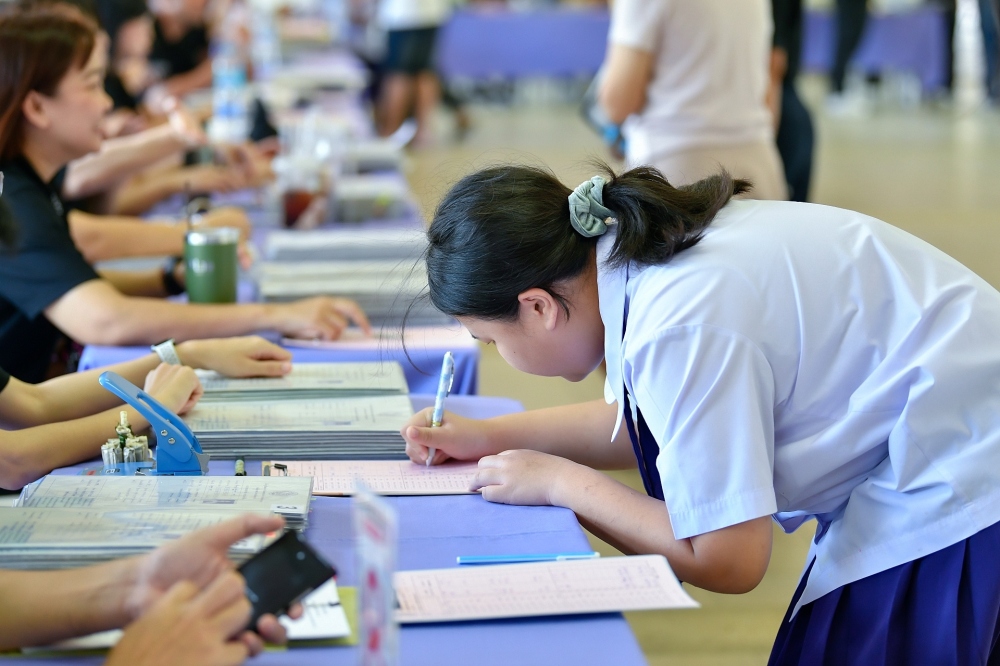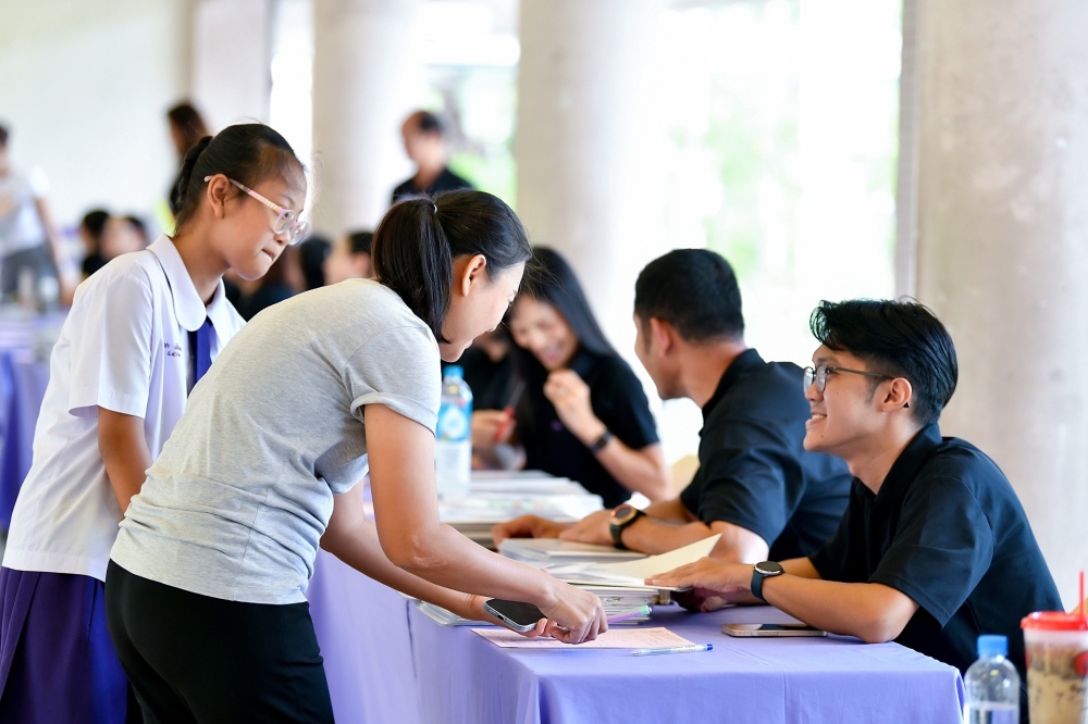 บรรยากาศการรับแบบรายงานผลการเรียน ของนักเรียนระดับชั้น ป.1 - ม.6 ปีการศึกษา 2568 ในวันศุกร์ที่ 27 มีนาคม 2569 เวลา 08.30 - 11.00 น. ณ บริเวณใต้อาคาร 3