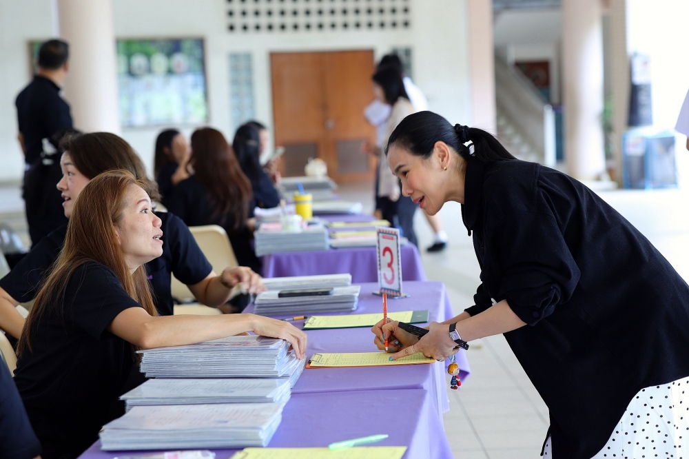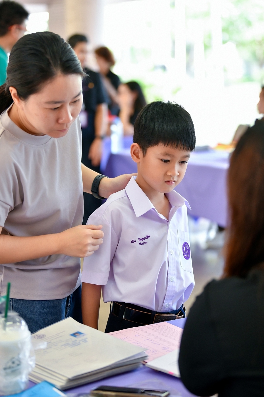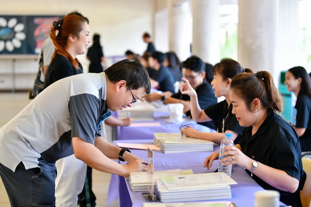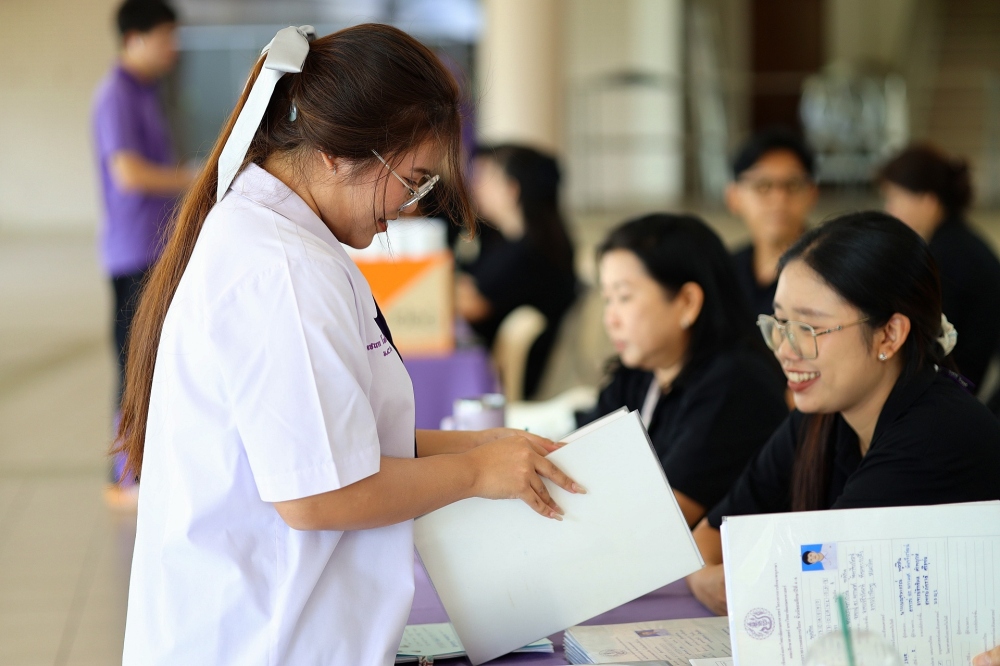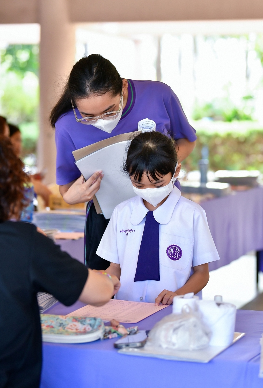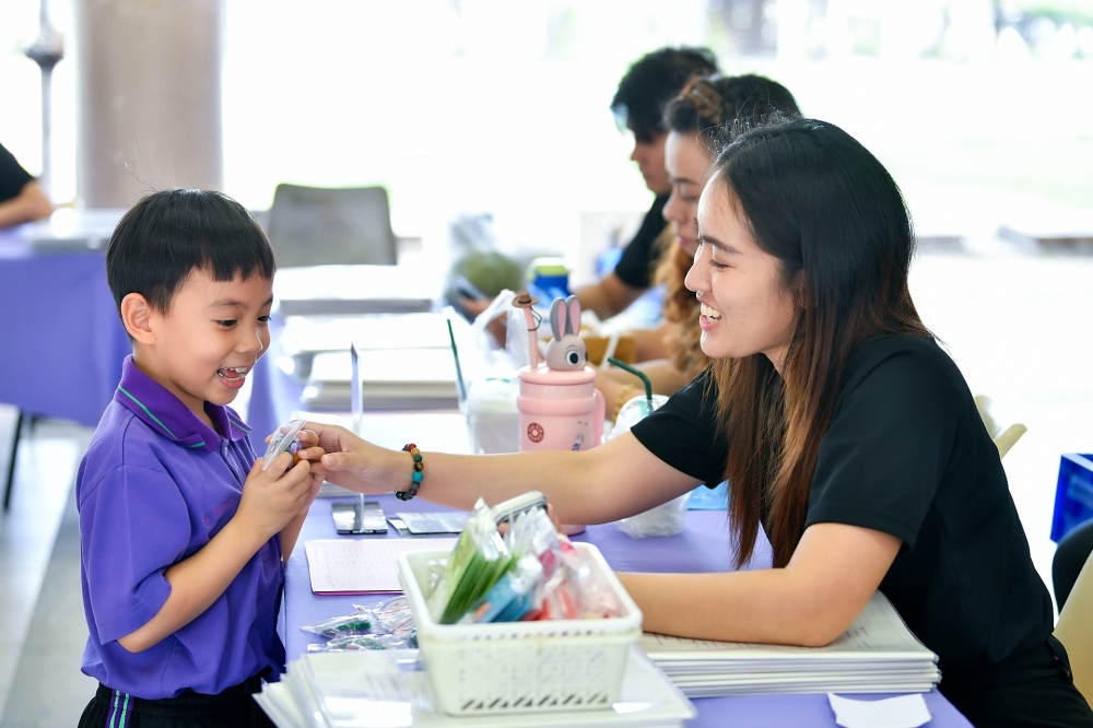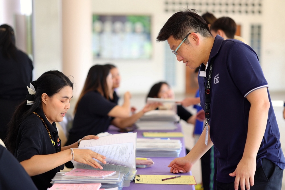 บรรยากาศการรับแบบรายงานผลการเรียน ของนักเรียนระดับชั้น ป.1 - ม.6 ปีการศึกษา 2568 ในวันศุกร์ที่ 27 มีนาคม 2569 เวลา 08.30 - 11.00 น. ณ บริเวณใต้อาคาร 3