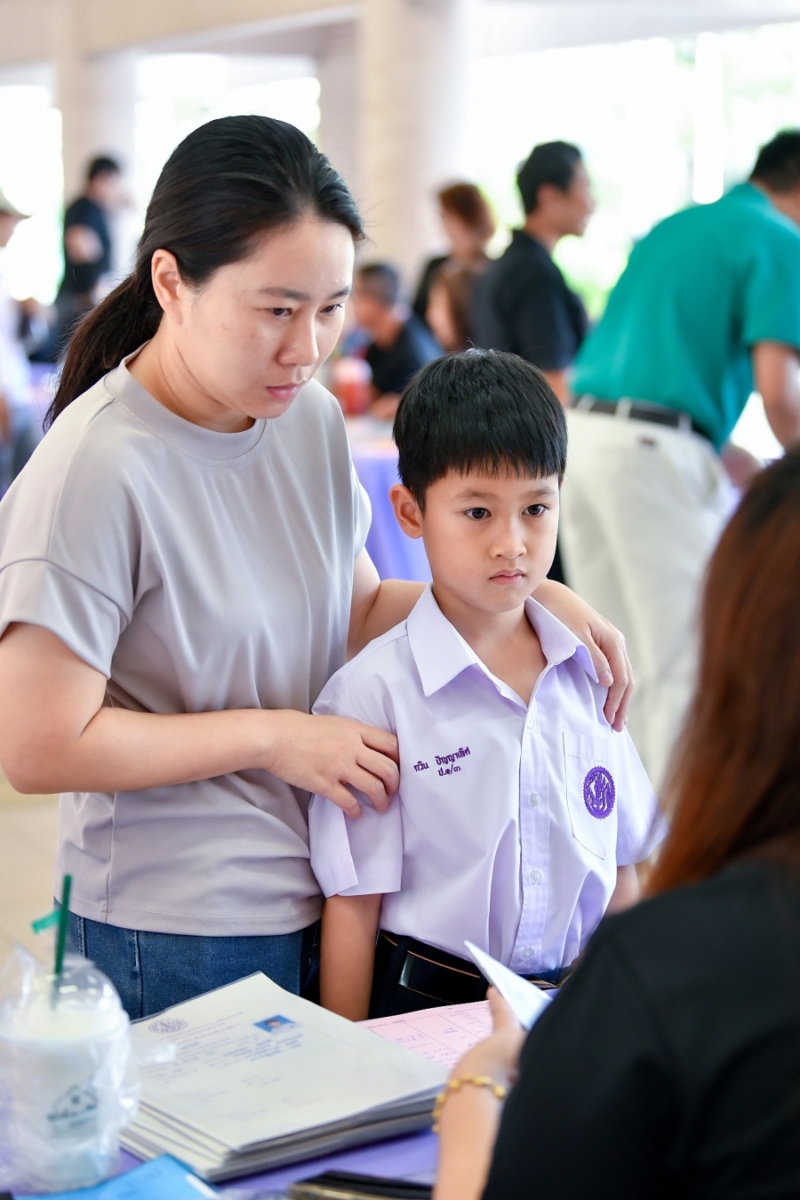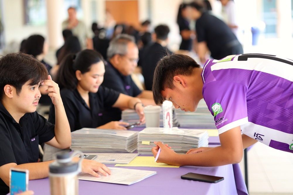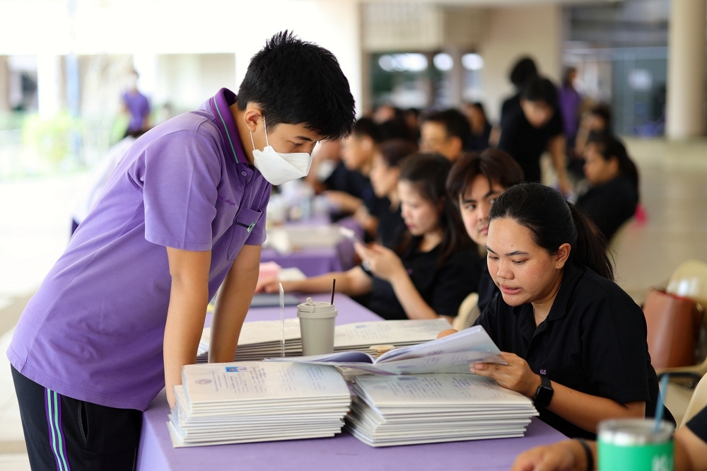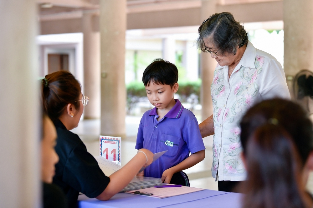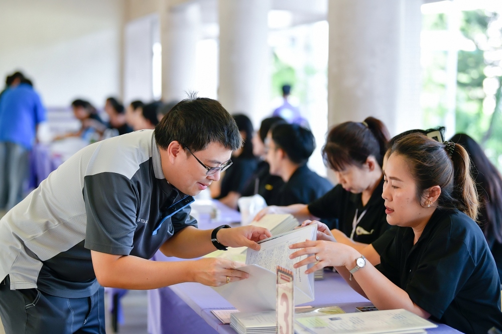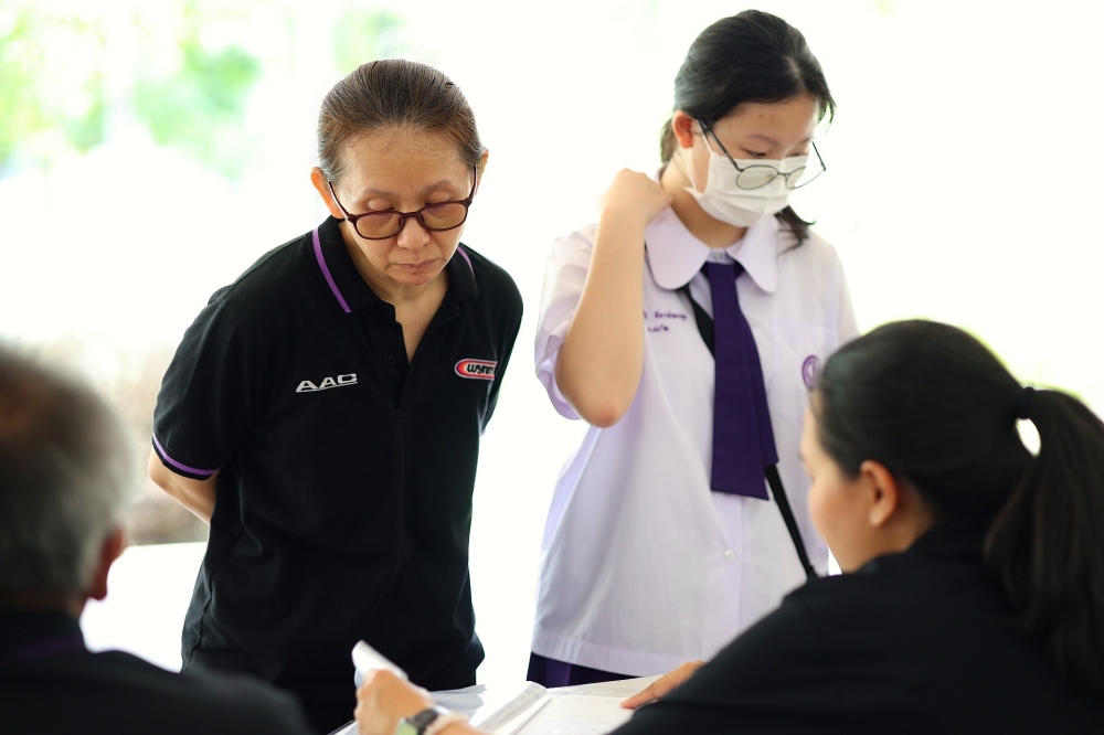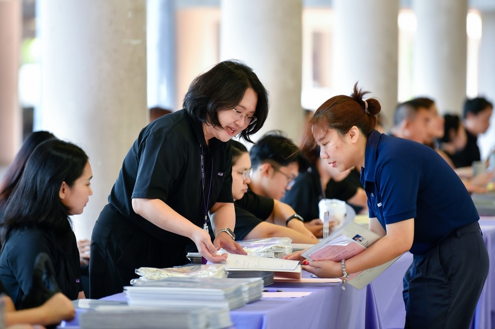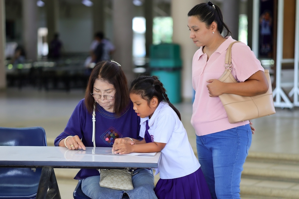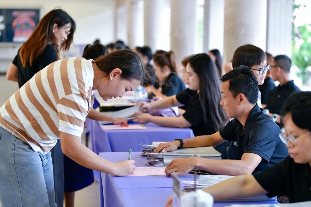บรรยากาศการรับแบบรายงานผลการเรียน ของนักเรียนระดับชั้น ป.1 - ม.6 ปีการศึกษา 2568 ในวันศุกร์ที่ 27 มีนาคม 2569 เวลา 08.30 - 11.00 น. ณ บริเวณใต้อาคาร 3