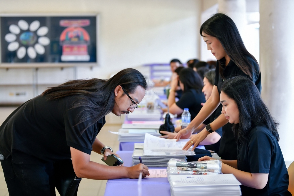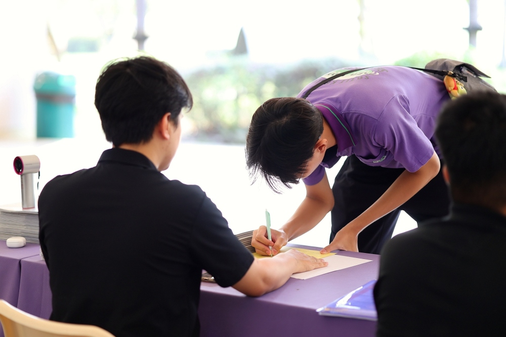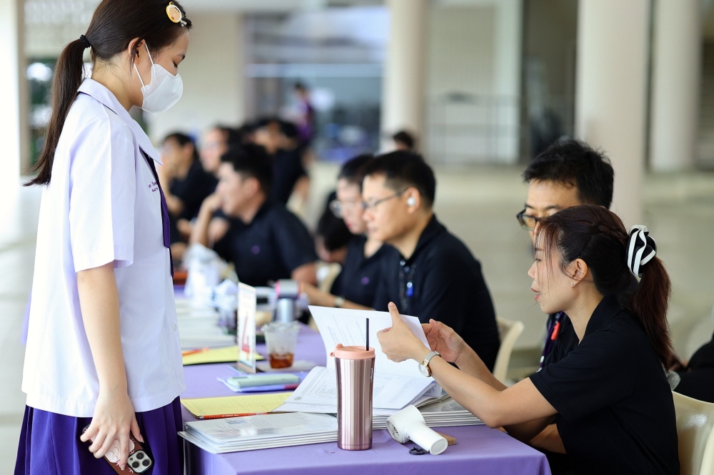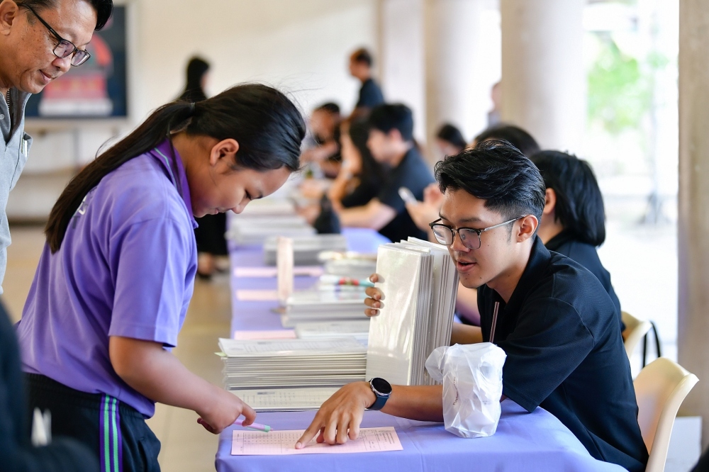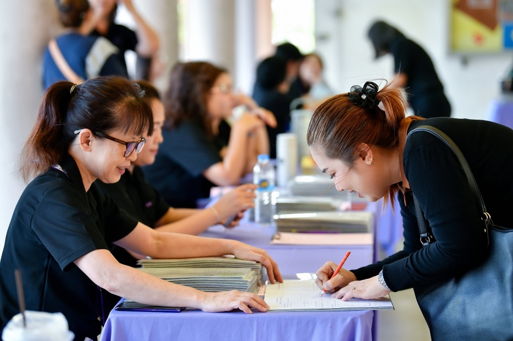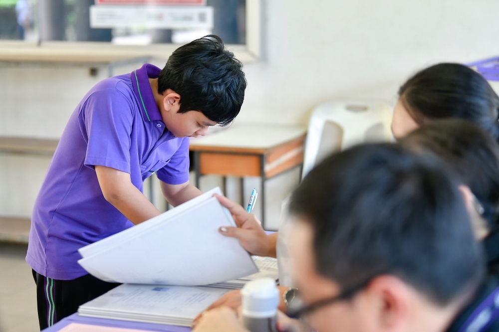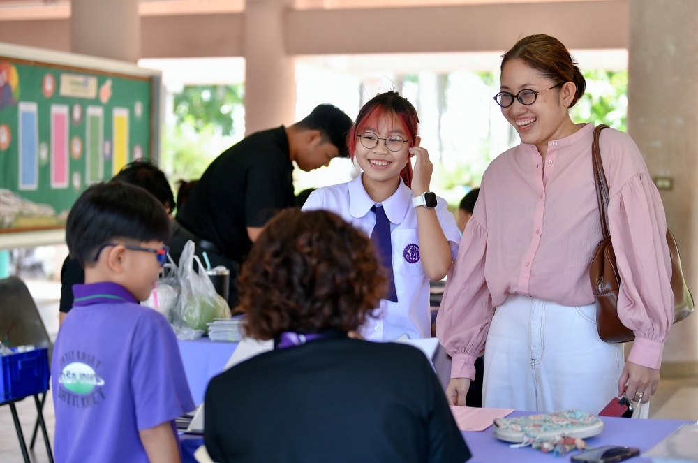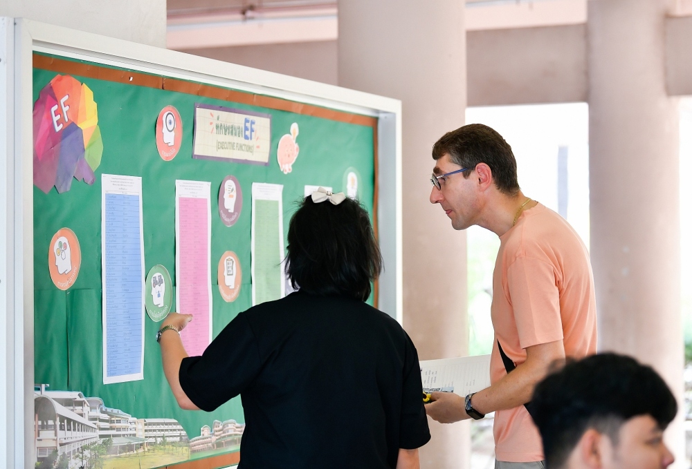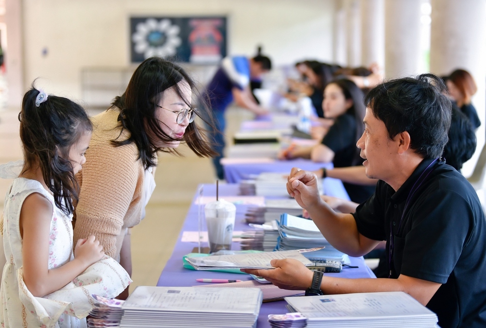 บรรยากาศการรับแบบรายงานผลการเรียน ของนักเรียนระดับชั้น ป.1 - ม.6 ปีการศึกษา 2568 ในวันศุกร์ที่ 27 มีนาคม 2569 เวลา 08.30 - 11.00 น. ณ บริเวณใต้อาคาร 3