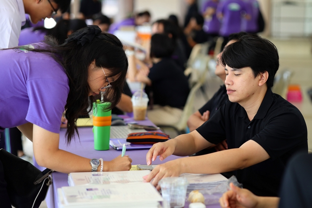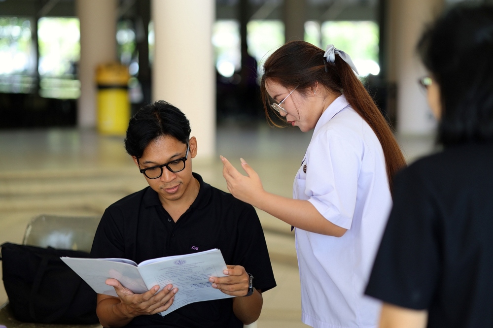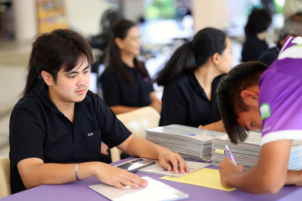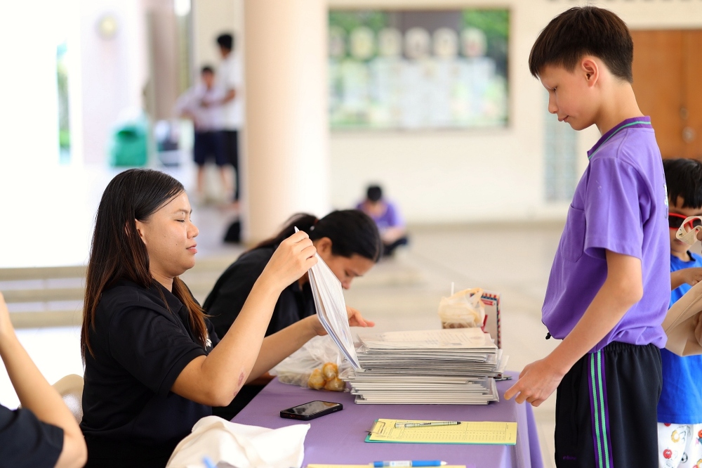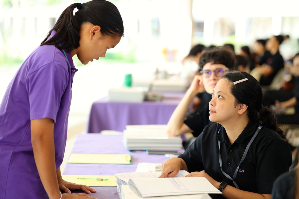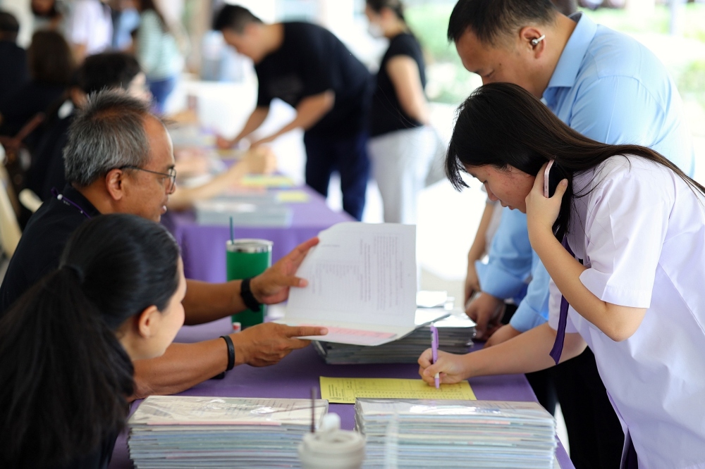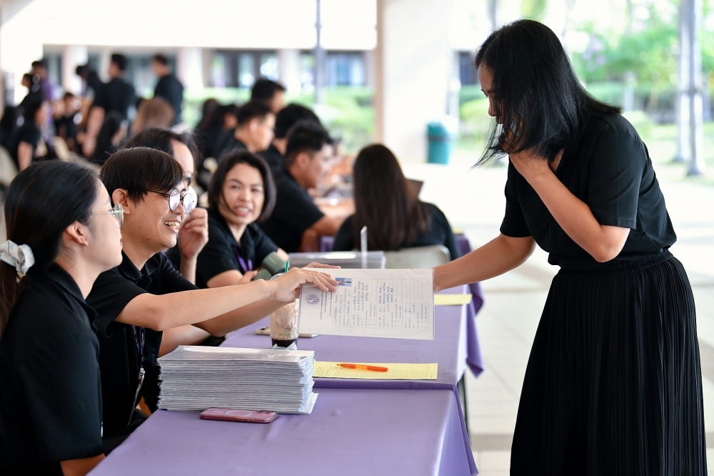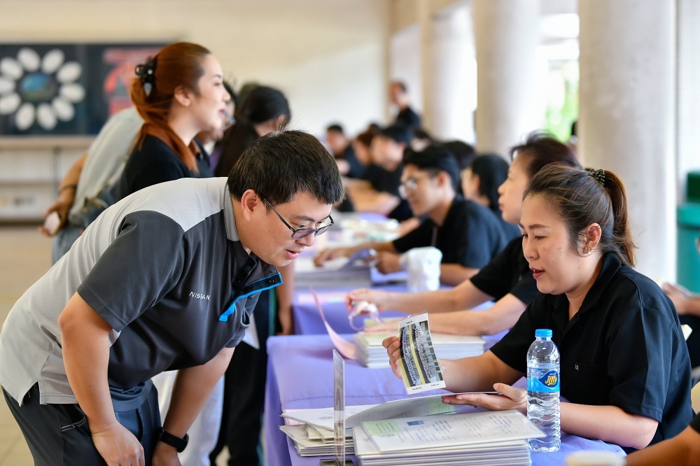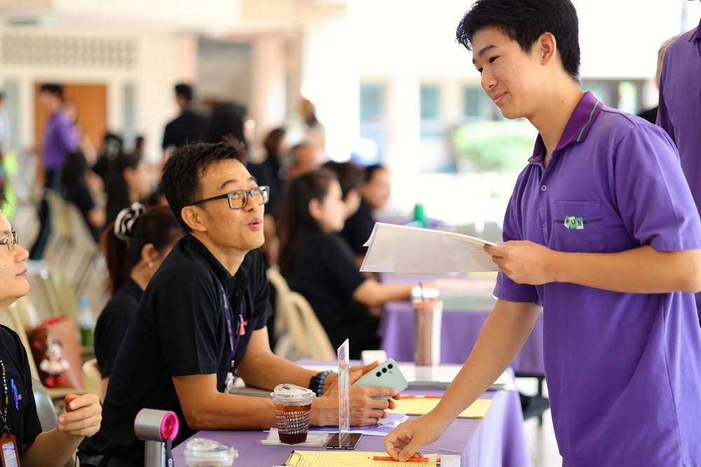 บรรยากาศการรับแบบรายงานผลการเรียน ของนักเรียนระดับชั้น ป.1 - ม.6 ปีการศึกษา 2568 ในวันศุกร์ที่ 27 มีนาคม 2569 เวลา 08.30 - 11.00 น. ณ บริเวณใต้อาคาร 3
