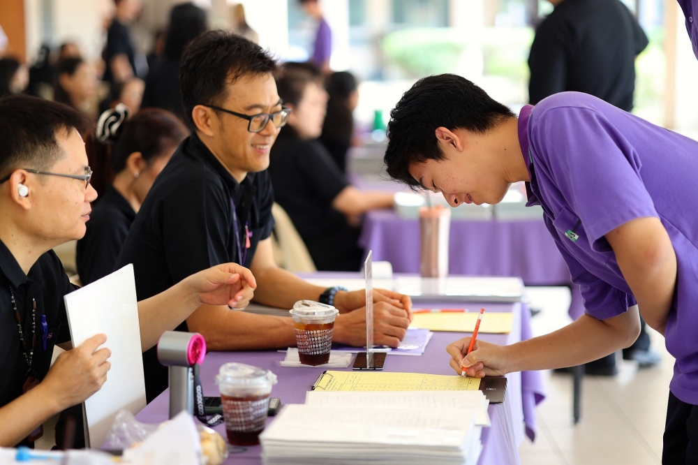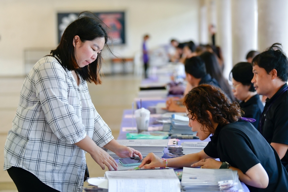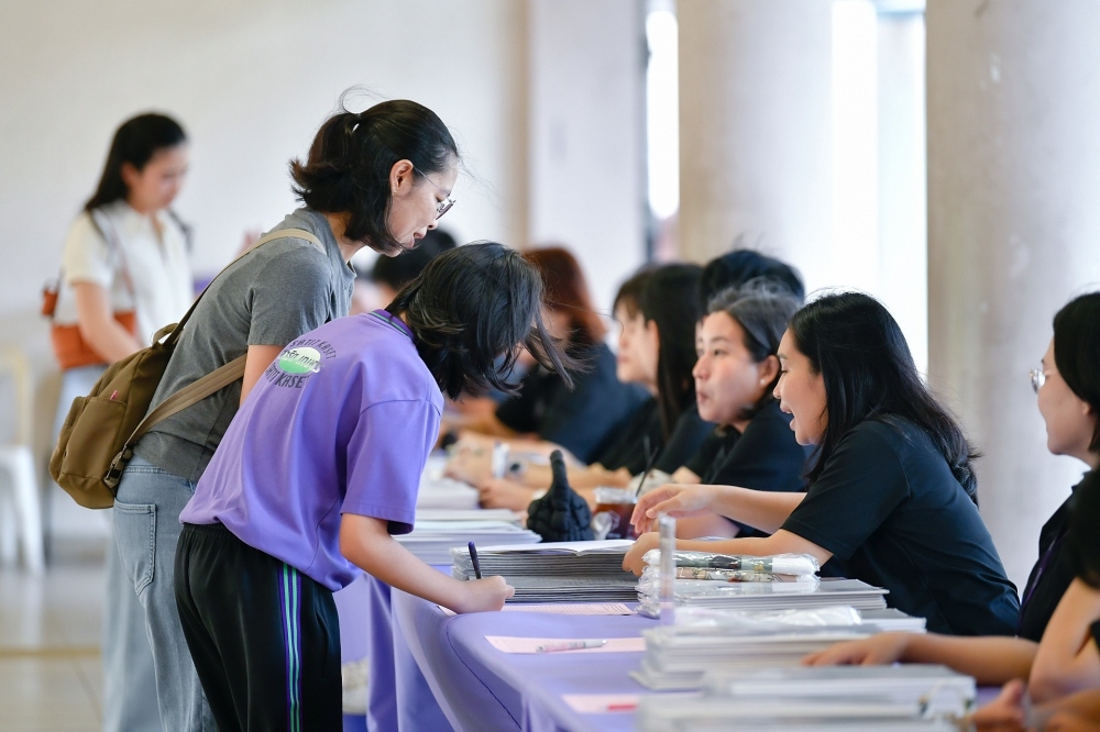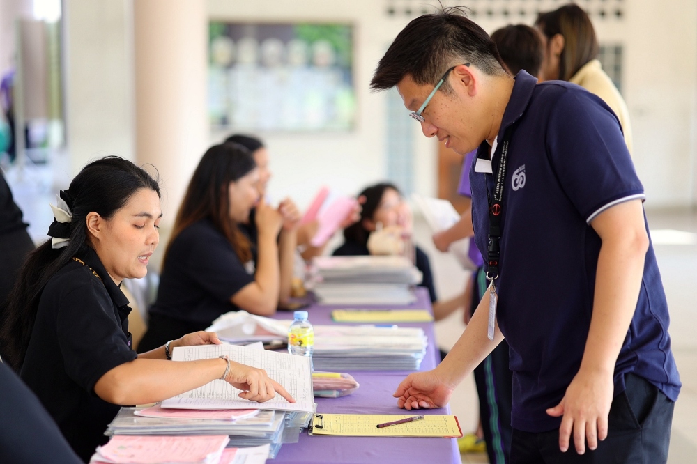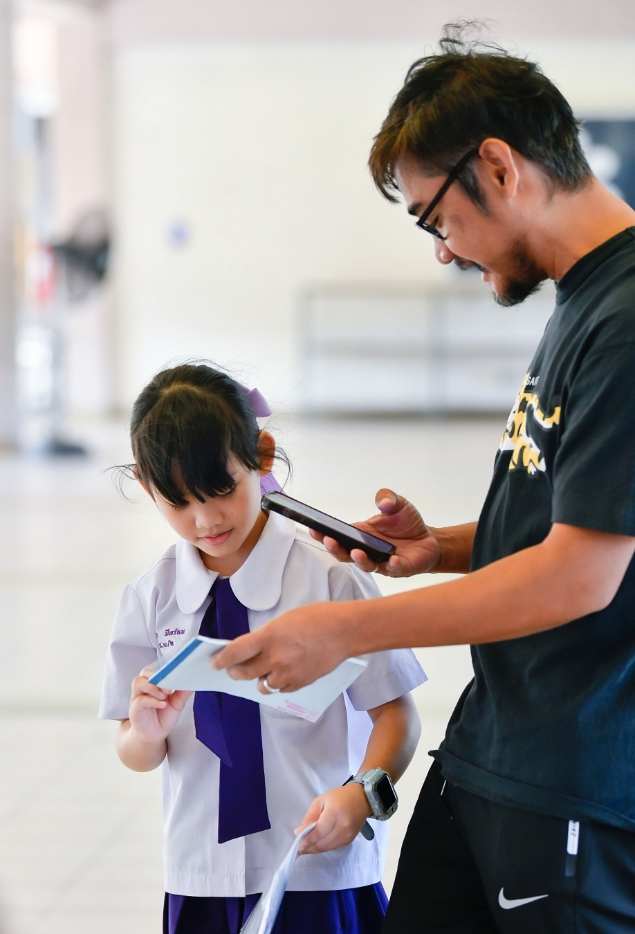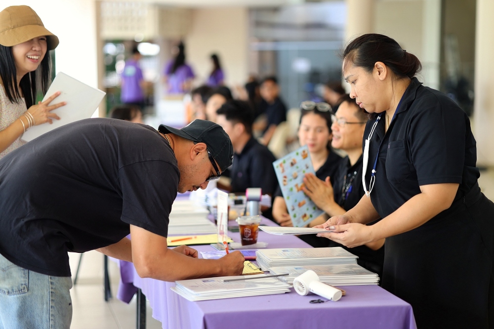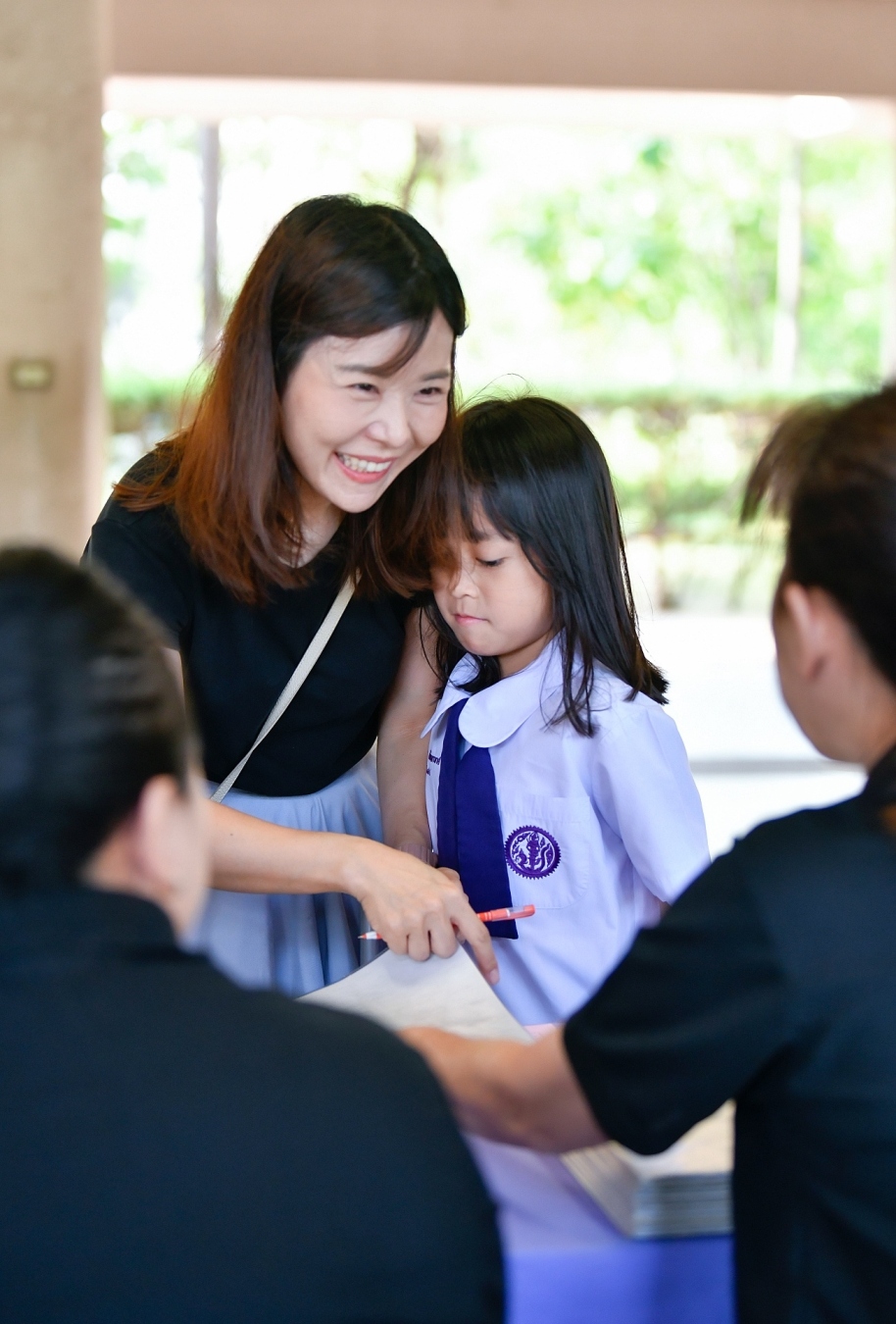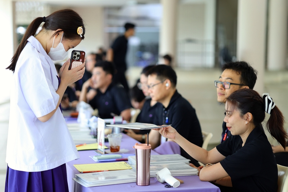 บรรยากาศการรับแบบรายงานผลการเรียน ของนักเรียนระดับชั้น ป.1 - ม.6 ปีการศึกษา 2568 ในวันศุกร์ที่ 27 มีนาคม 2569 เวลา 08.30 - 11.00 น. ณ บริเวณใต้อาคาร 3