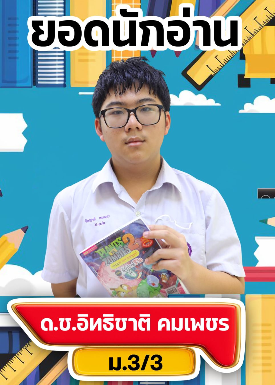 ยอดนักอ่านประจำเดือนสิงหาคม ปีการศึกษา 2568 นักเรียนที่รักการอ่านหนังสือ และยืมหนังสือมากที่สุดในแต่ละเดือน มาร่วมเป็นส่วนหนึ่งของการรักการอ่านและยืมหนังสือ ของห้องสมุดกันเยอะๆนะคะ