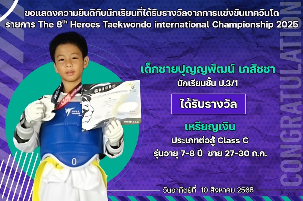 ขอแสดงความยินดีกับนักเรียนที่ได้รับรางวัลจากการแข่งขันเทควันโด The 8th Heroes Taekwondo international Championship 2025