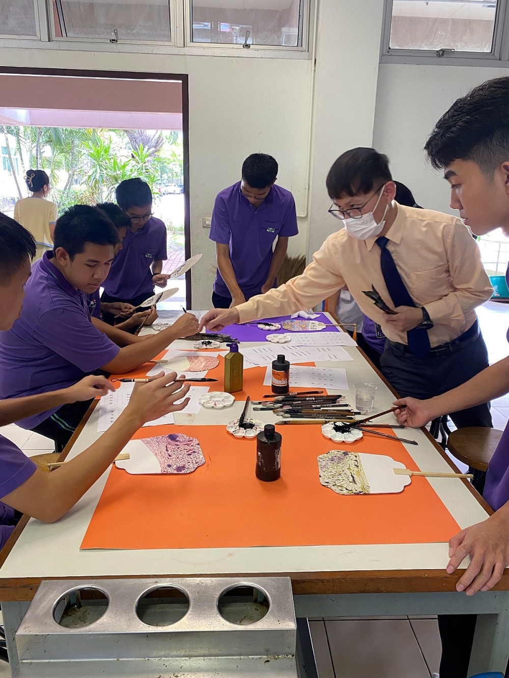 กิจกรรมศิลปะการย้อมพัดจีน ระดับชั้นม.5