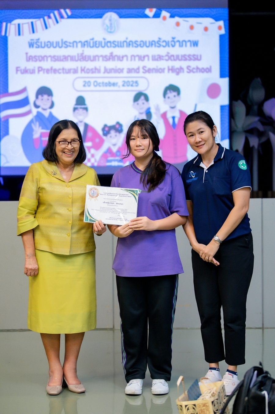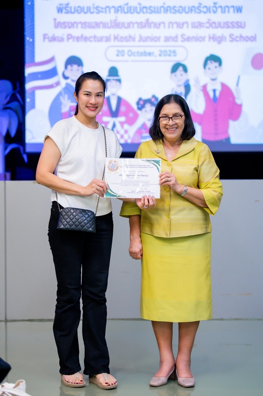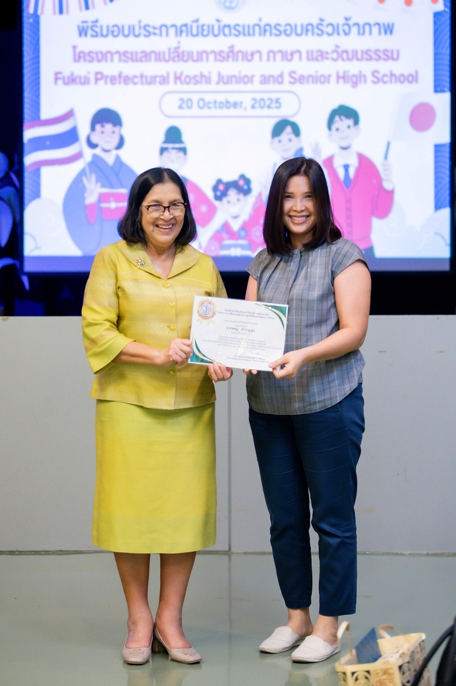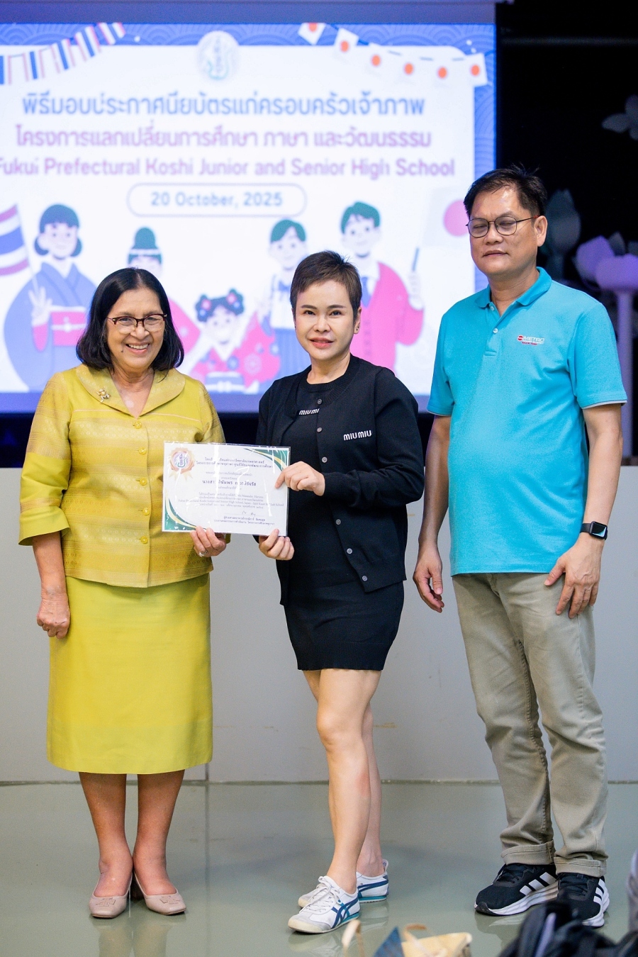 พิธีมอบประกาศนียบัตรแก่ครอบครัวเจ้าภาพ โครงการแลกเปลี่ยนฯ Koshi Junior and Senior High School, Japan
