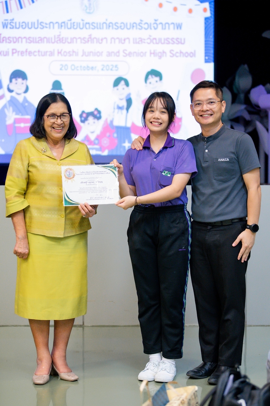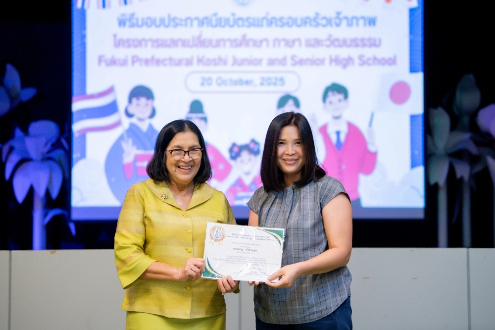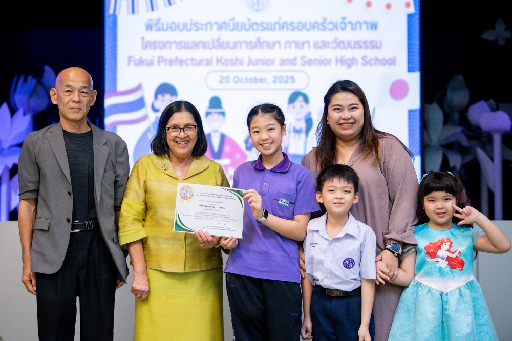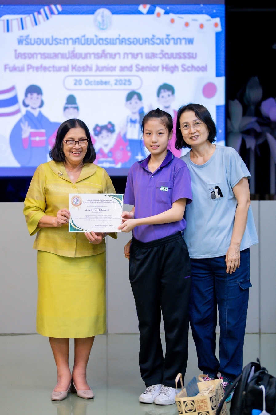 พิธีมอบประกาศนียบัตรแก่ครอบครัวเจ้าภาพ โครงการแลกเปลี่ยนฯ Koshi Junior and Senior High School, Japan