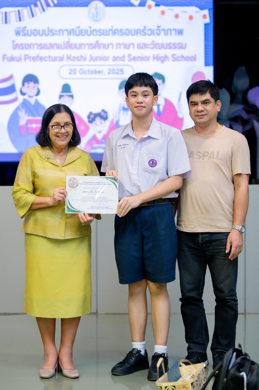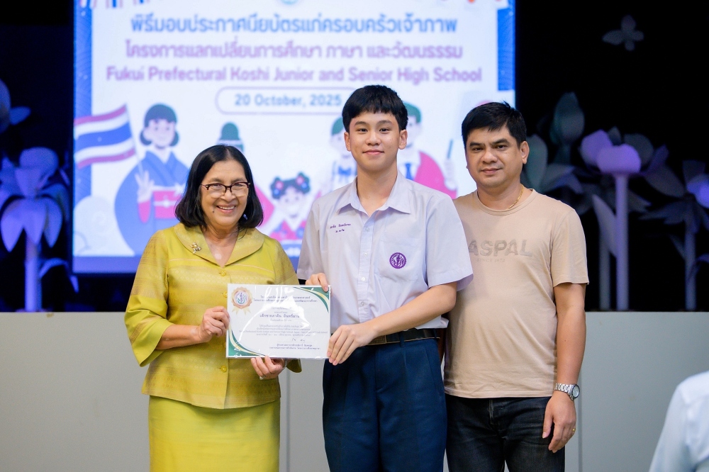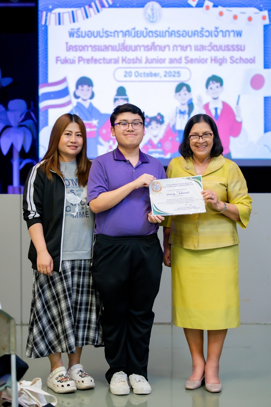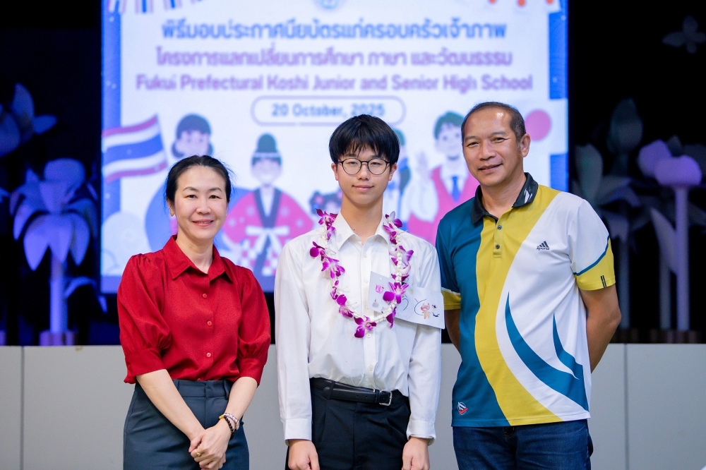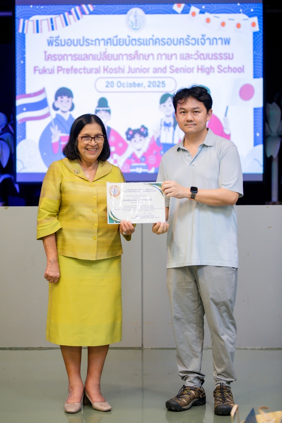 งานวิเทศสัมพันธ์ จัดพิธีมอบประกาศนียบัตรแก่ครอบครัวเจ้าภาพ โครงการแลกเปลี่ยนการศึกษา ภาษา และวัฒนธรรม Fukui Prefectural Koshi Junior and Senior High School, Japan - Satit Kaset MP Lab School ในวันจันทร์ที่ 20 ตุลาคม 2568 เวลา 16.00 - 17.00 น. ณ ห้องประชุมเล็ก อาคารหอประชุม