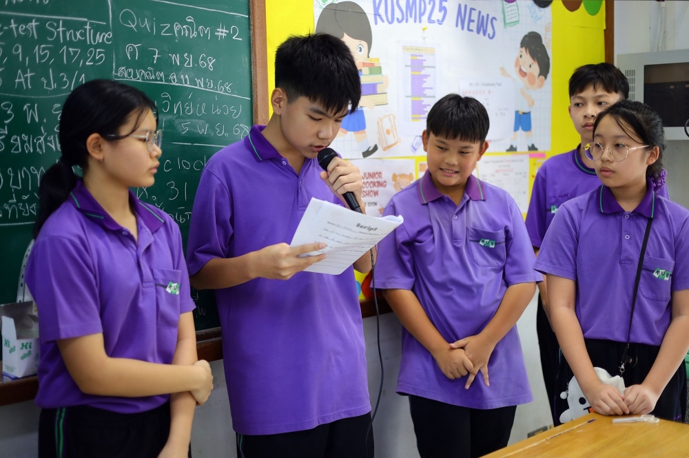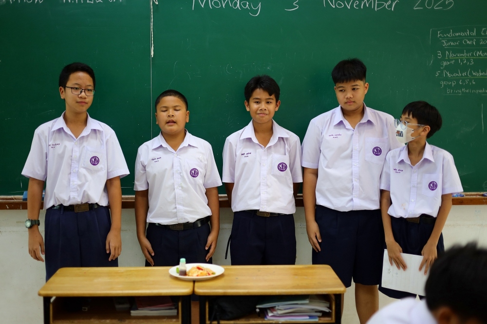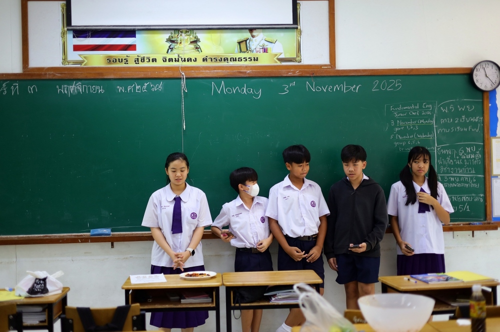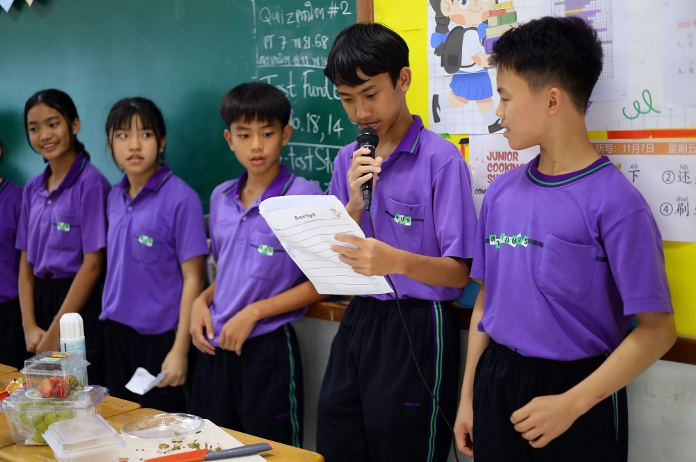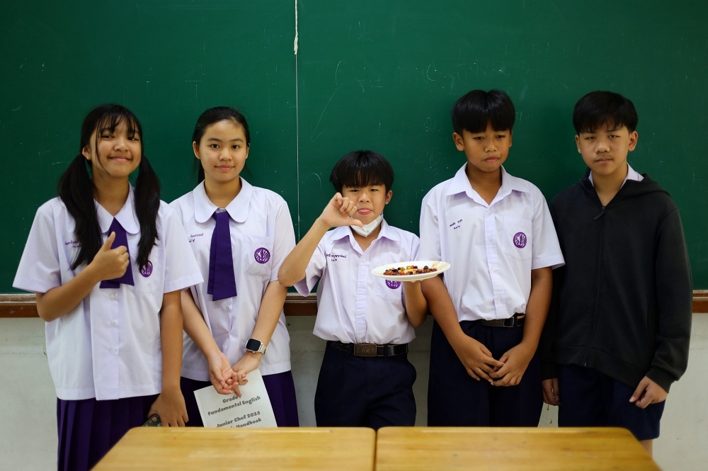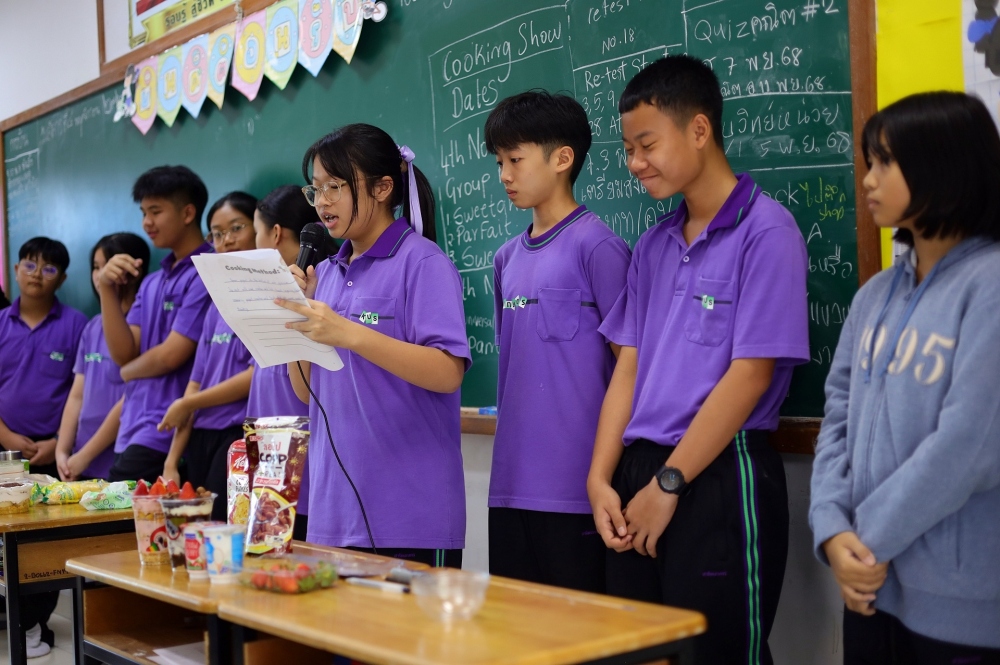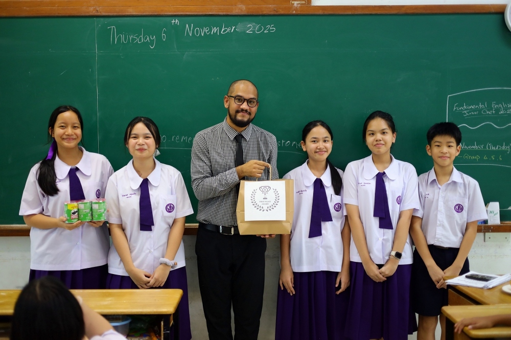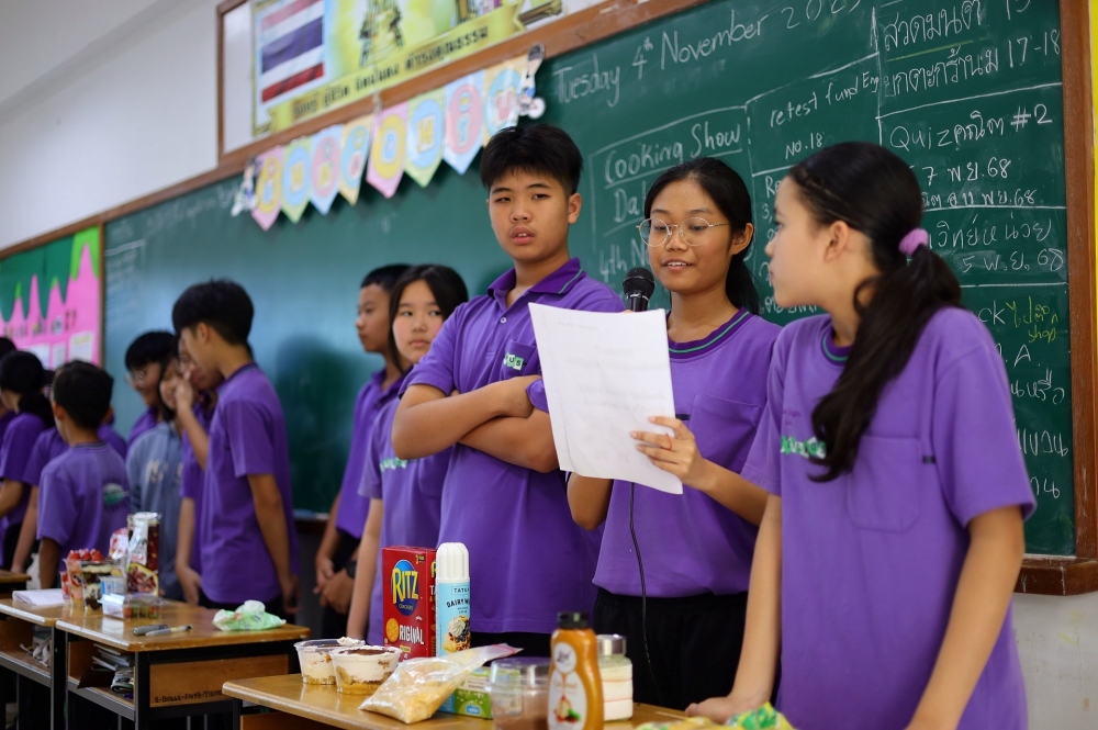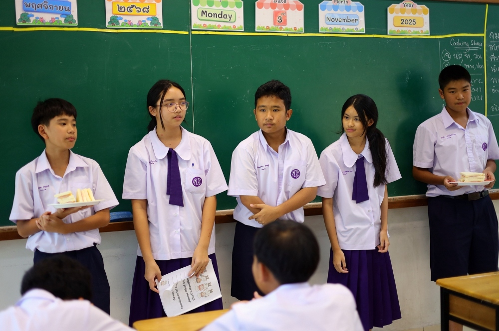 กลุ่มสาระการเรียนรู้ภาษาต่างประเทศ วิชาภาษาอังกฤษระดับมัธยมศึกษา จัดกิจกรรมเสริมหลักสูตร การประกวดการแสดงทำอาหารภาษาอังกฤษ (Junior Cooking Show) ให้กับนักเรียนระดับชั้นมัธยมศึกษาปีที่ 1ในระหว่างวันที่ 3-5 พฤศจิกายน 2568 เพื่อส่งเสริมให้นักเรียนได้บูรณาการความรู้เรื่องการทำอาหาร และการใช้ลำดับขั้นตอนเพื่อนำเสนอเป็นภาษาอังกฤษ