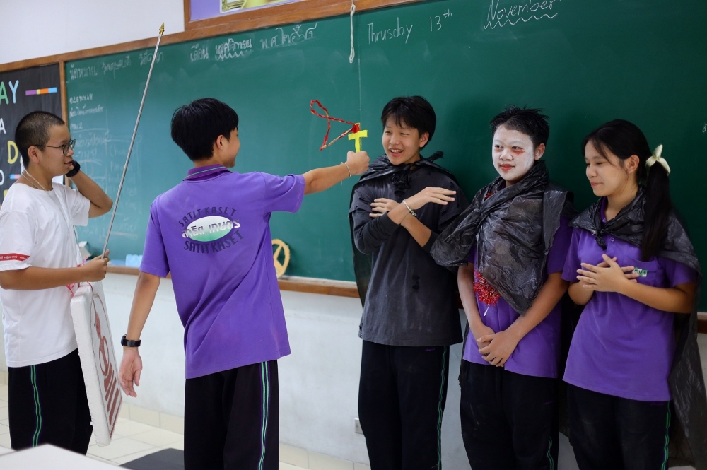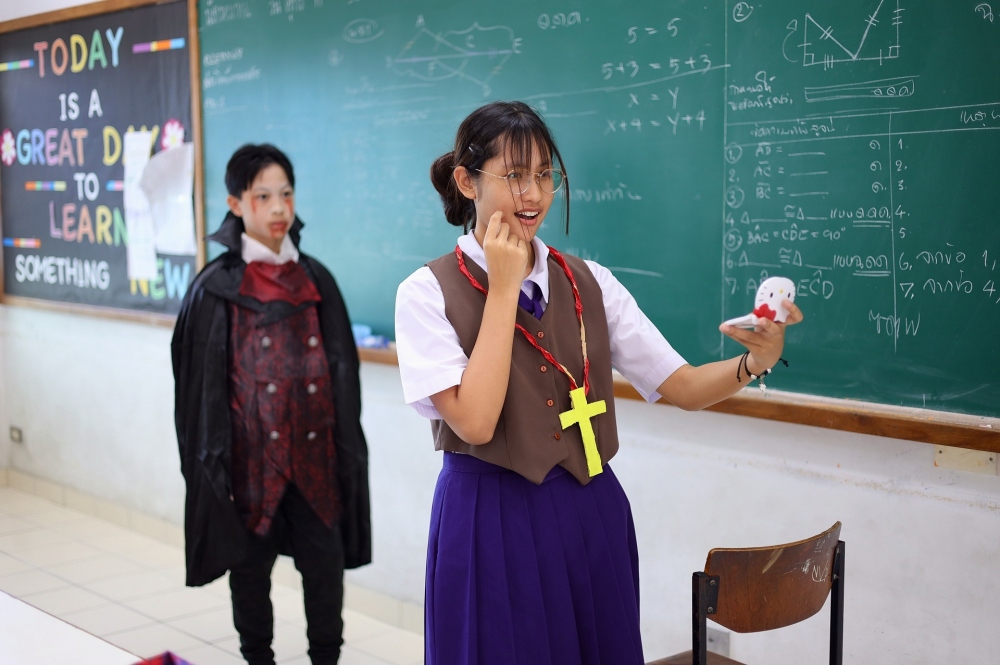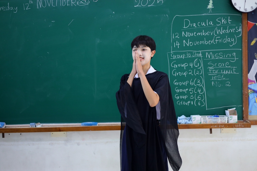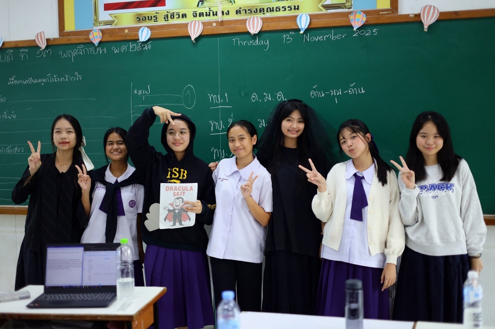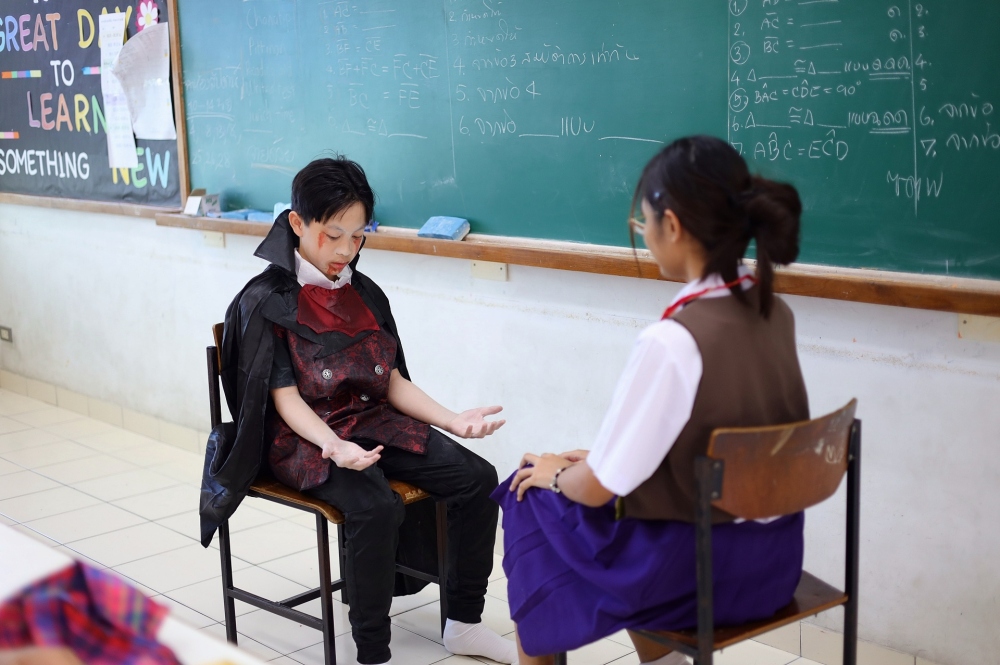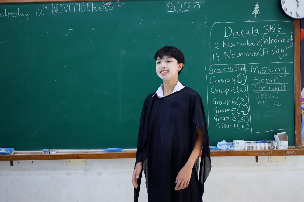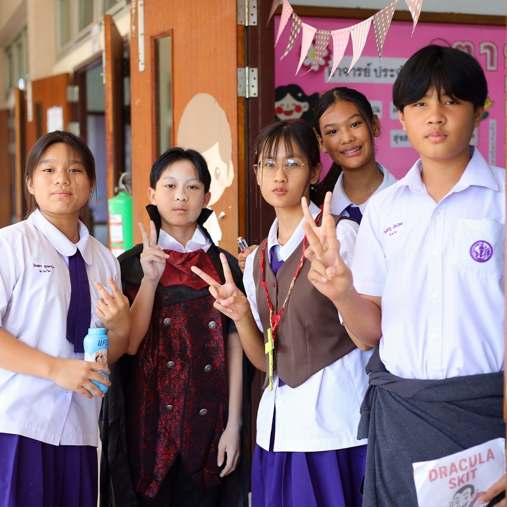 กลุ่มสาระการเรียนรู้ภาษาต่างประเทศ วิชาภาษาอังกฤษระดับมัธยมศึกษา จัดกิจกรรมเสริมหลักสูตร การประกวดการแสดงบทบาทสมมติประกอบหนังสืออ่านนอกเวลา Dracula ให้กับนักเรียนระดับชั้นมัธยมศึกษาปีที่ 2 ในระหว่างวันที่ 12-14 พฤศจิกายน 2568 เพื่อเปิดโอกาสให้นักเรียนได้ฝึกใช้ทักษะภาษาอังกฤษในการฝึกฟังพูดอ่านเขียน ผ่านทางการเขียนบทละครด้วยตนเองจากหนังสืออ่านนอกเวลาที่ได้เรียนรู้ และนำมาแสดงเป็นบทบาทสมมติอย่างสร้างสรรค์ อันนำไปสู่ความคล่องแคล่วในการใช้ภาษาอังกฤษผ่านทางสถานการณ์ที่ได้แสดงออก อีกทั้งยังช่วยส่งเสริมเจตคติอันดีต่อการเรียนวิชาภาษาอังกฤษด้วย