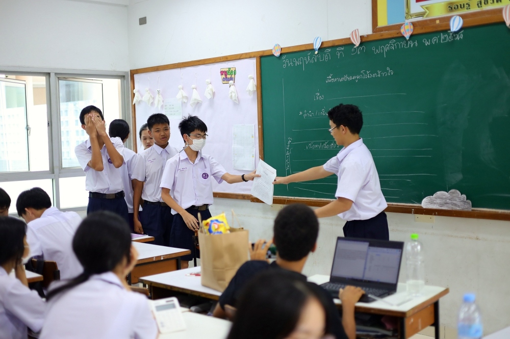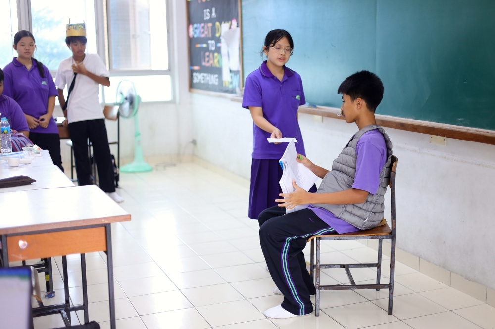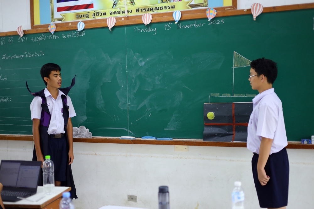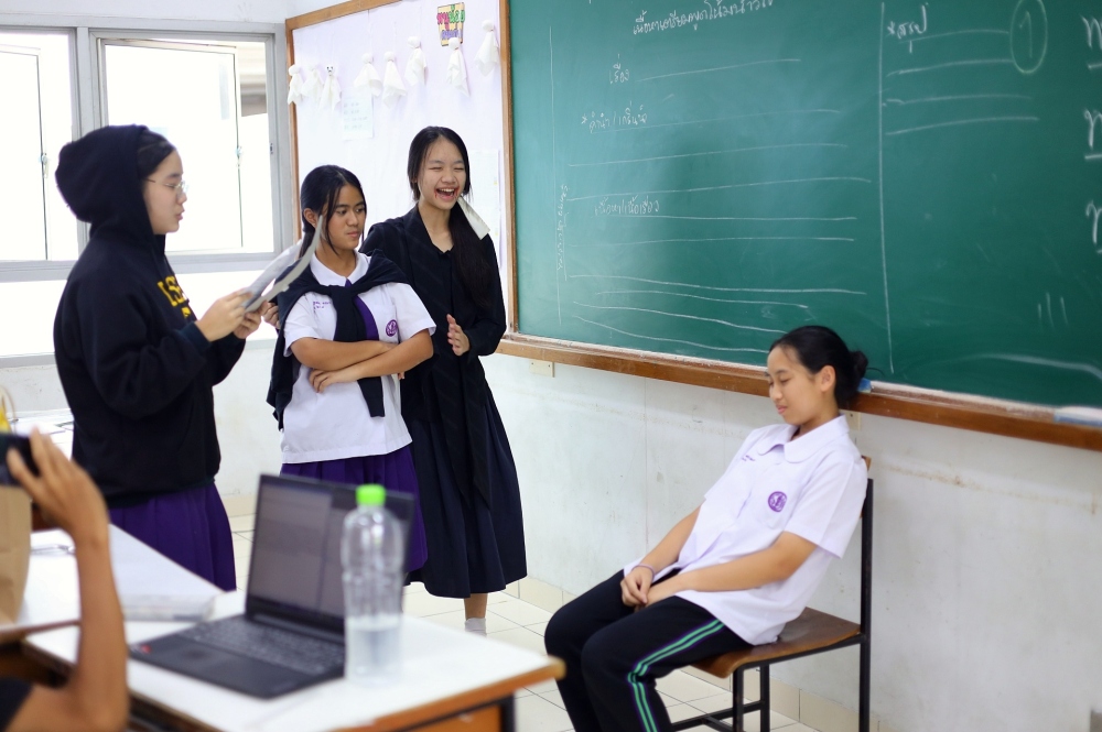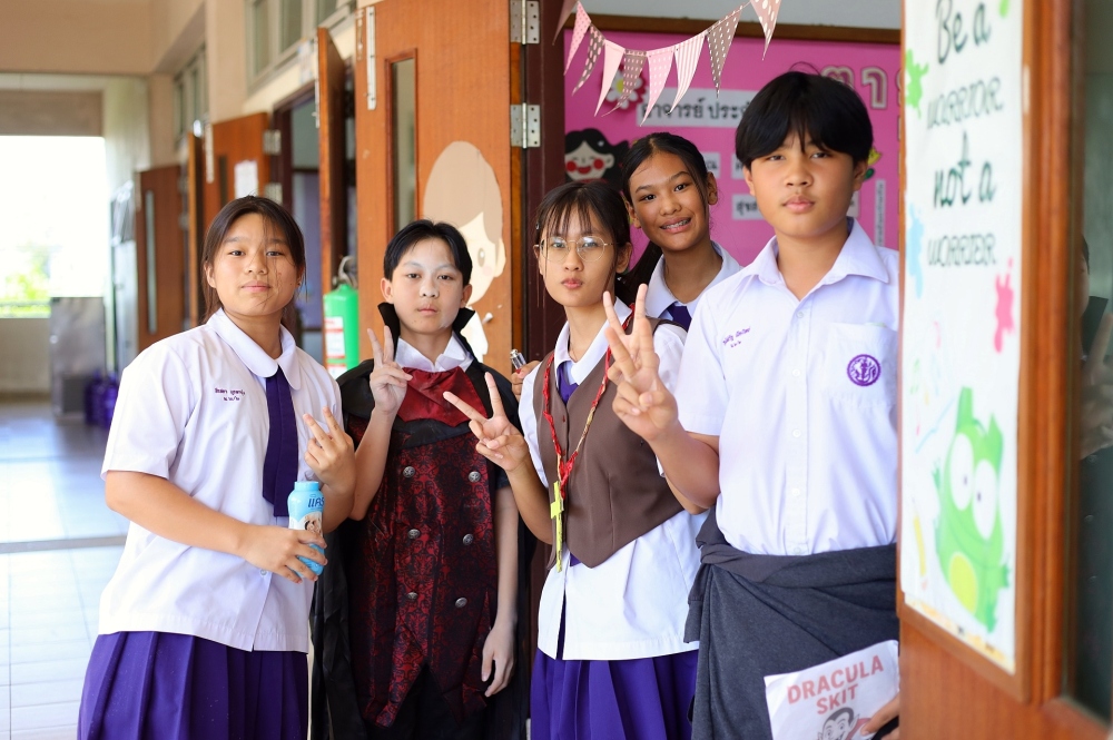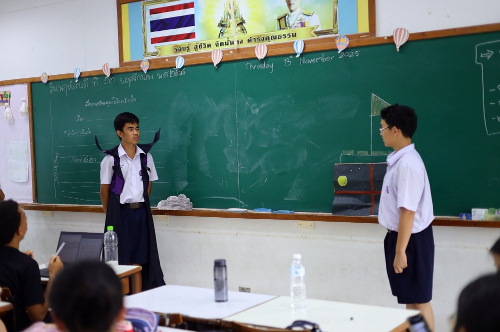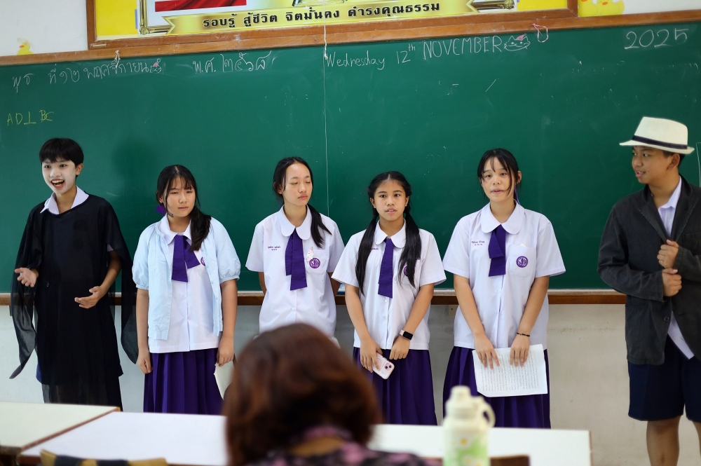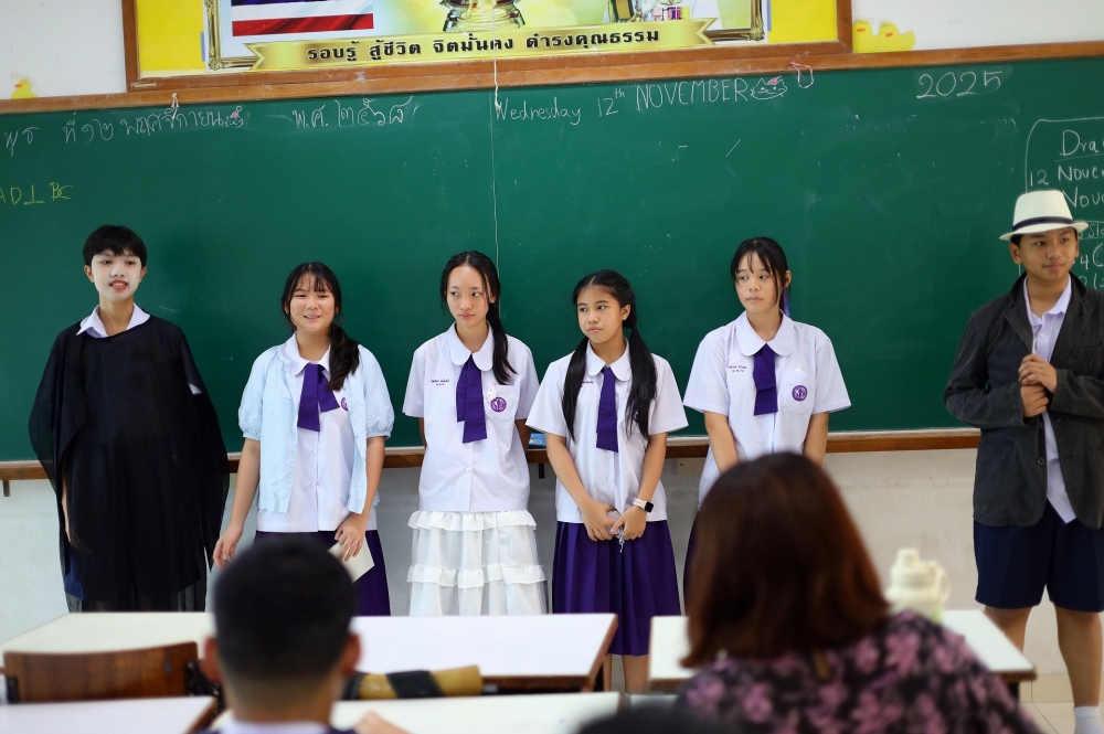 กลุ่มสาระการเรียนรู้ภาษาต่างประเทศ วิชาภาษาอังกฤษระดับมัธยมศึกษา จัดกิจกรรมเสริมหลักสูตร การประกวดการแสดงบทบาทสมมติประกอบหนังสืออ่านนอกเวลา Dracula ให้กับนักเรียนระดับชั้นมัธยมศึกษาปีที่ 2 ในระหว่างวันที่ 12-14 พฤศจิกายน 2568 เพื่อเปิดโอกาสให้นักเรียนได้ฝึกใช้ทักษะภาษาอังกฤษในการฝึกฟังพูดอ่านเขียน ผ่านทางการเขียนบทละครด้วยตนเองจากหนังสืออ่านนอกเวลาที่ได้เรียนรู้ และนำมาแสดงเป็นบทบาทสมมติอย่างสร้างสรรค์ อันนำไปสู่ความคล่องแคล่วในการใช้ภาษาอังกฤษผ่านทางสถานการณ์ที่ได้แสดงออก อีกทั้งยังช่วยส่งเสริมเจตคติอันดีต่อการเรียนวิชาภาษาอังกฤษด้วย