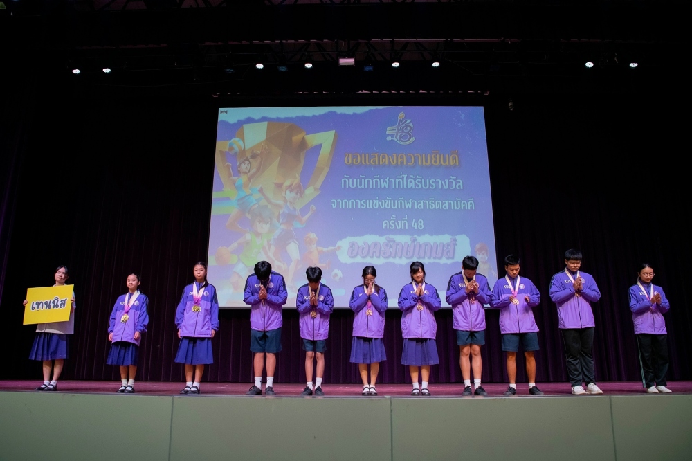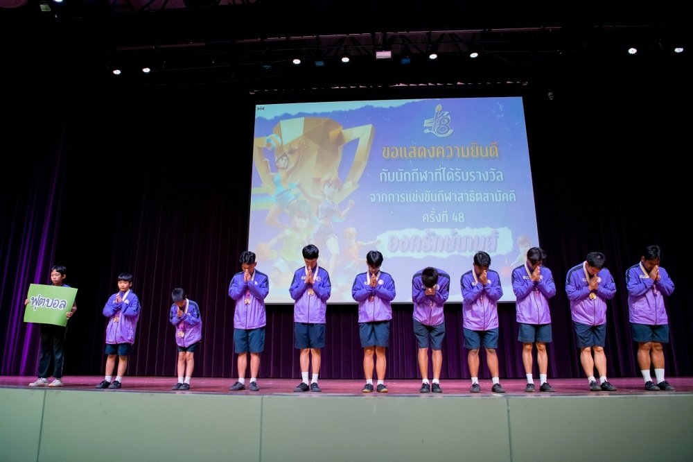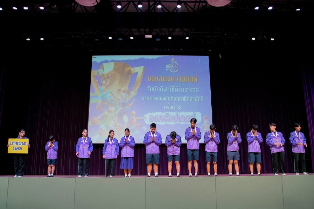 กิจกรรมหน้าเสาธง วันอังคารที่ 13 มกราคม 2569 รับชมประมวลภาพการแข่งขันกีฬาสาธิตสามัคคี ครั้งที่ 48 "องครักษ์เกมส์" และร่วมแสดงความยินดีกับนักกีฬาที่ได้รับเหรียญรางวัลจากการแข่งขันกัฬาประเภทต่าง ๆ