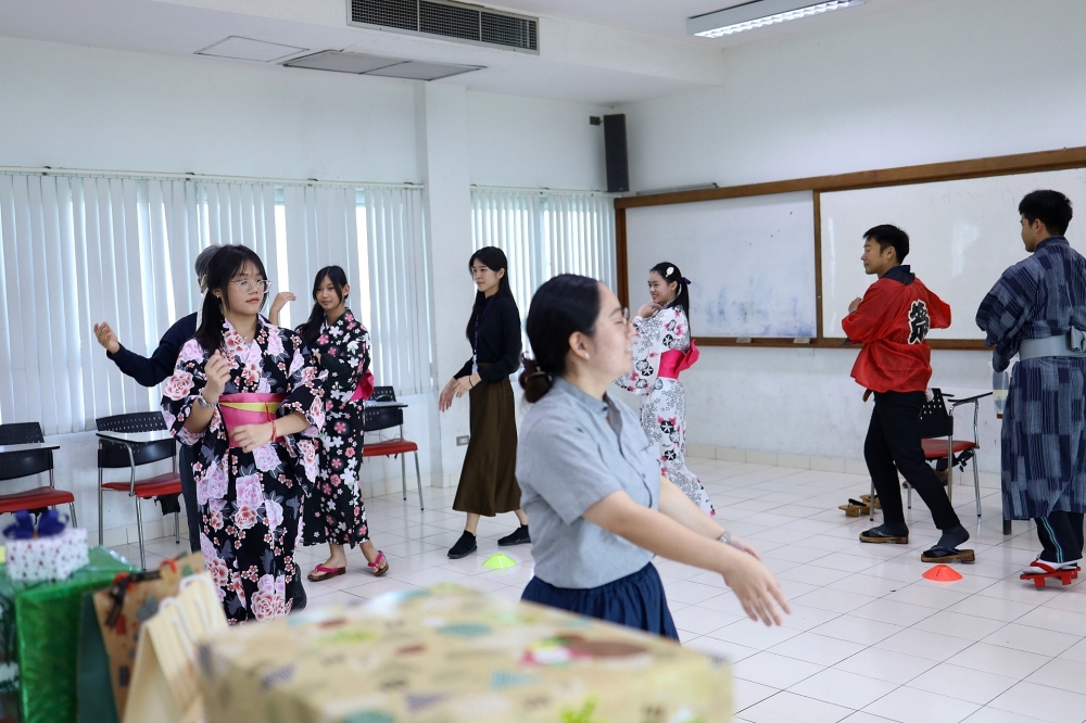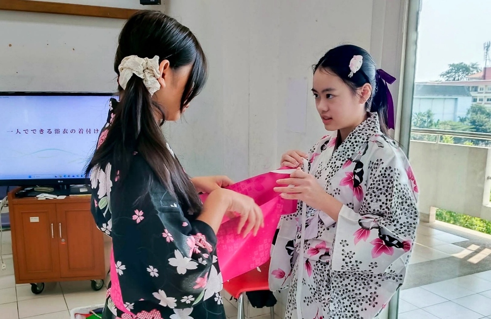 กลุ่มสาระการเรียนรู้ภาษาต่างประเทศ วิชาภาษาญี่ปุ่น จัดกิจกรรมเสริมหลักสูตร การฝึกแต่งชุดยุกะตะ สำหรับนักเรียนแผนการเรียนมนุษย์ 1 ระดับชั้นมัธยมศึกษาปีที่ 4 ในวันจันทร์ที่ 26 มกราคม 2569 คาบเรียนที่ 3-4 ณ ห้องกิจกรรม ชั้น 5 อาคาร 3