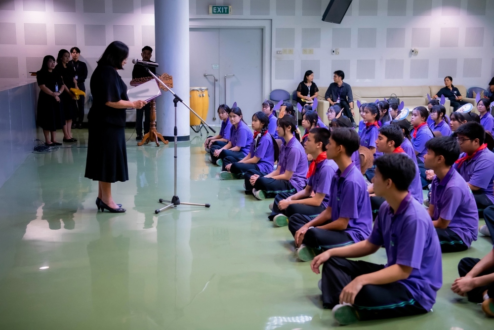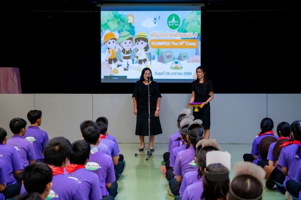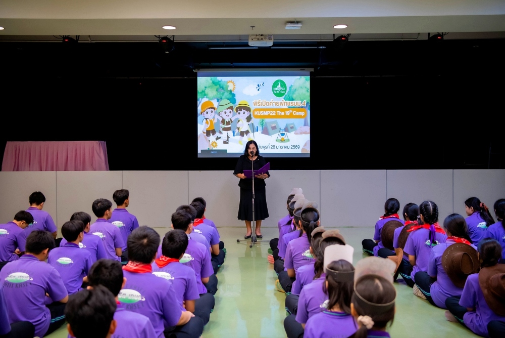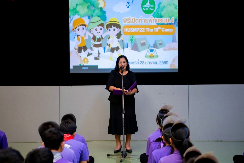 พิธีเปิดค่ายพักแรม ระดับชั้นมัธยมศึกษาปีที่ 4 ปีการศึกษา 2568 วันพุธที่ 28 มกราคม 2569 เวลา 15.00 - 15.45 น. ณ ห้องประชุมเล็ก อาคารหอประชุม เพื่อรับโอวาทจาก ผศ.กรรณิการ์ ลิมพะสุต ประธานกรรมการดำเนินงานโครงการ และดำรงตำแหน่งผู้อำนวยการค่ายพักแรมฯ