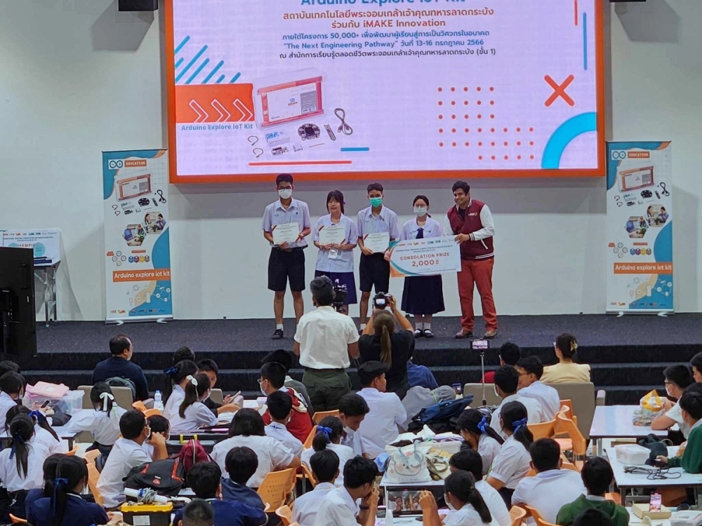 ขอแสดงความยินดีกับนักเรียนที่ได้รับรางวัลจากการแข่งขัน International Arduino Competition การออกแบบสร้างนวัตกรรม BCG Innovator with Arduino Exploer loT Kit ภายใต้โครงการ 50,000+ เพื่อพัฒนาผู้เรียนสู่การเป็นวิศวกรในอนาคต "The Next Engineering pathway" ณ สำนักการเรียนรู้ตลอดชีวิต สถาบันเทคโนโลยีพระจอมเกล้าเจ้าคุณทหารลาดกระบัง ในระหว่างวันที่ 13-16 กรกฎาคม 2566