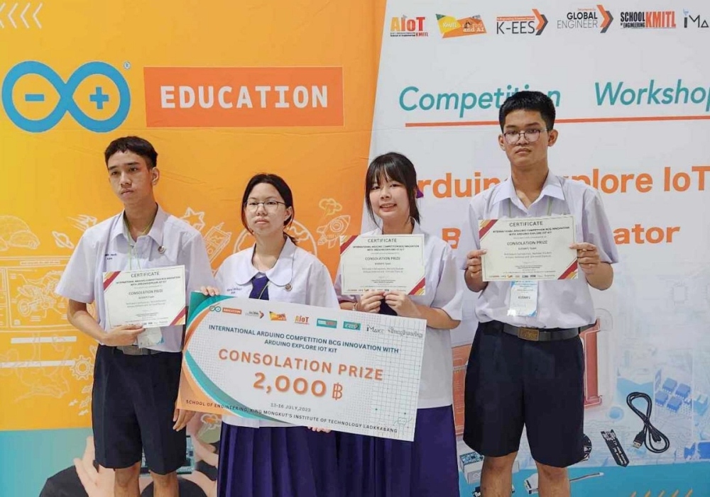 ขอแสดงความยินดีกับนักเรียนที่ได้รับรางวัลจากการแข่งขัน International Arduino Competition การออกแบบสร้างนวัตกรรม BCG Innovator with Arduino Exploer loT Kit