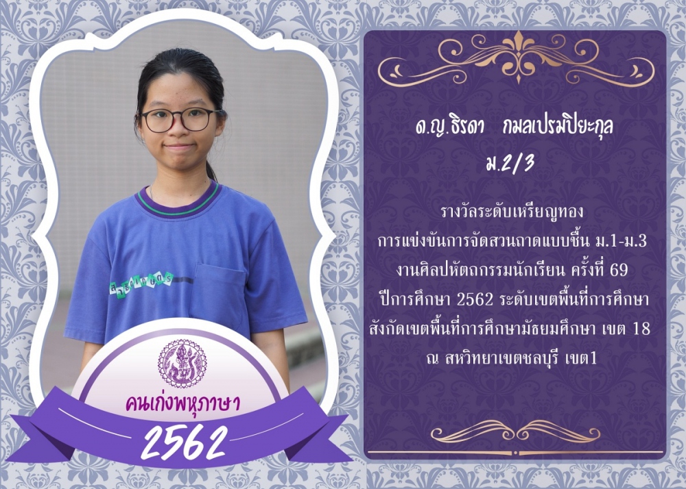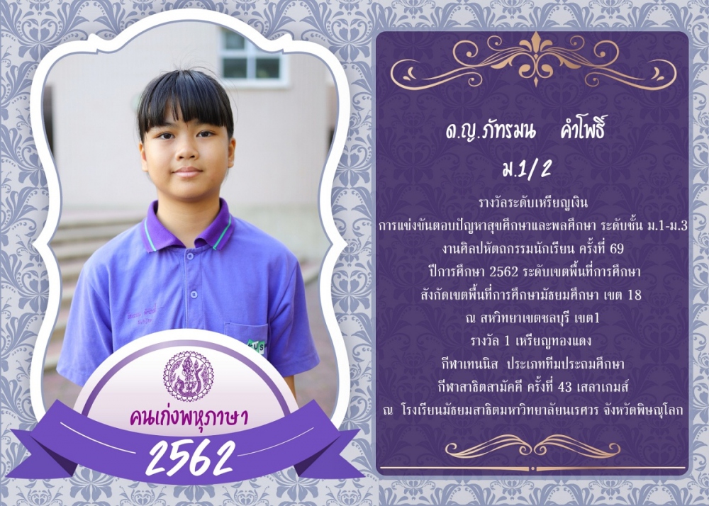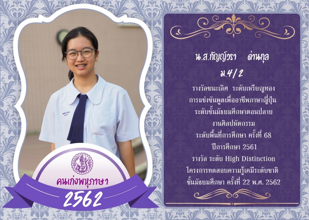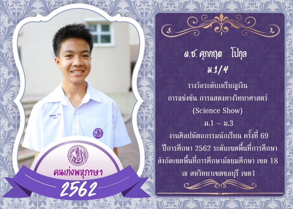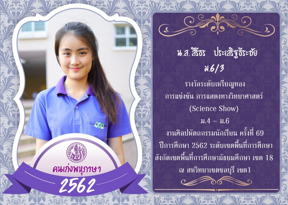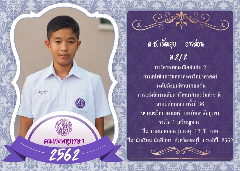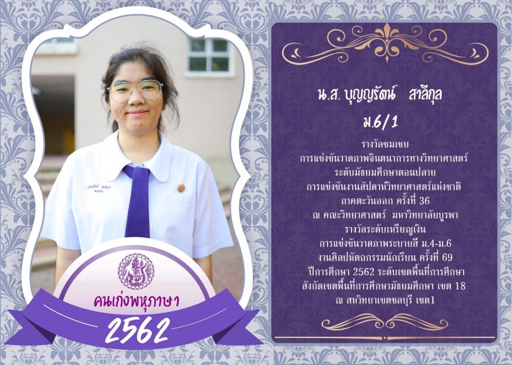 นักเรียนที่ได้รับรางวัลจากการแข่งขันประเภทต่างๆ โดยรวบรวมผลงานนักเรียนตั้งแต่ภาคปลายปีการศึกษา 2561 ถึง ภาคต้นปีการศึกษา 2562