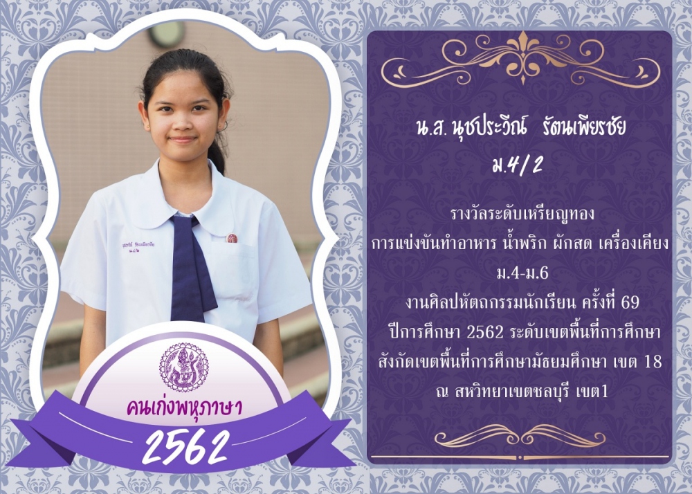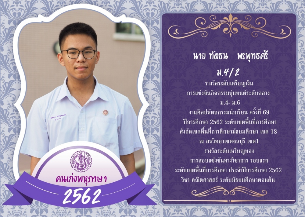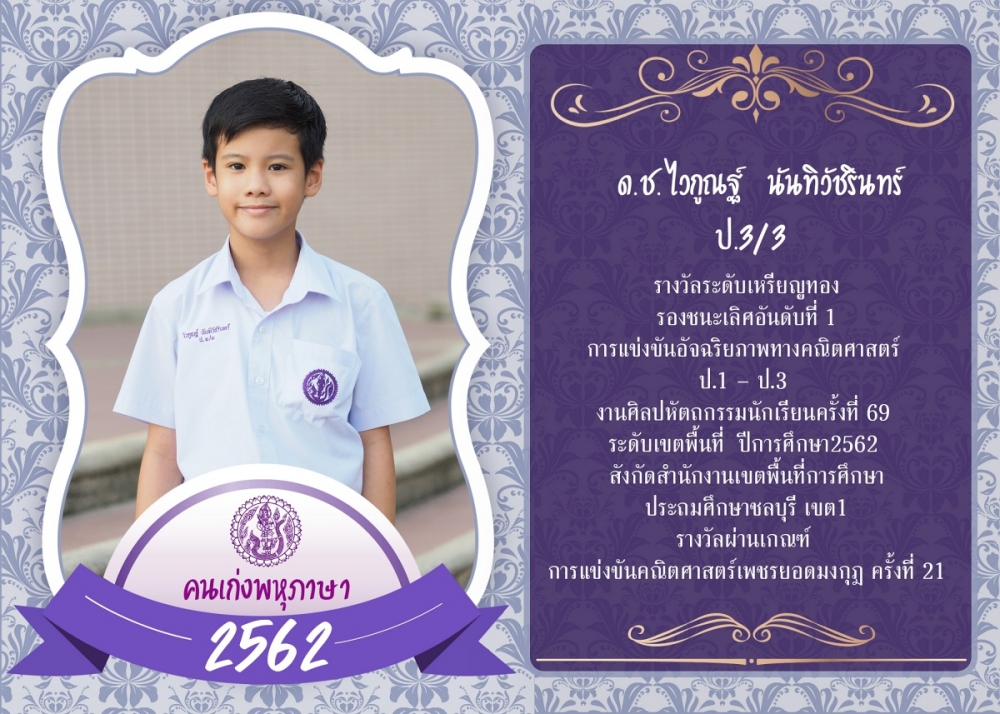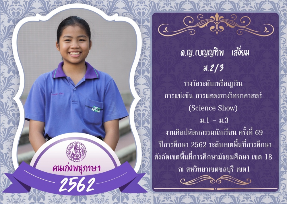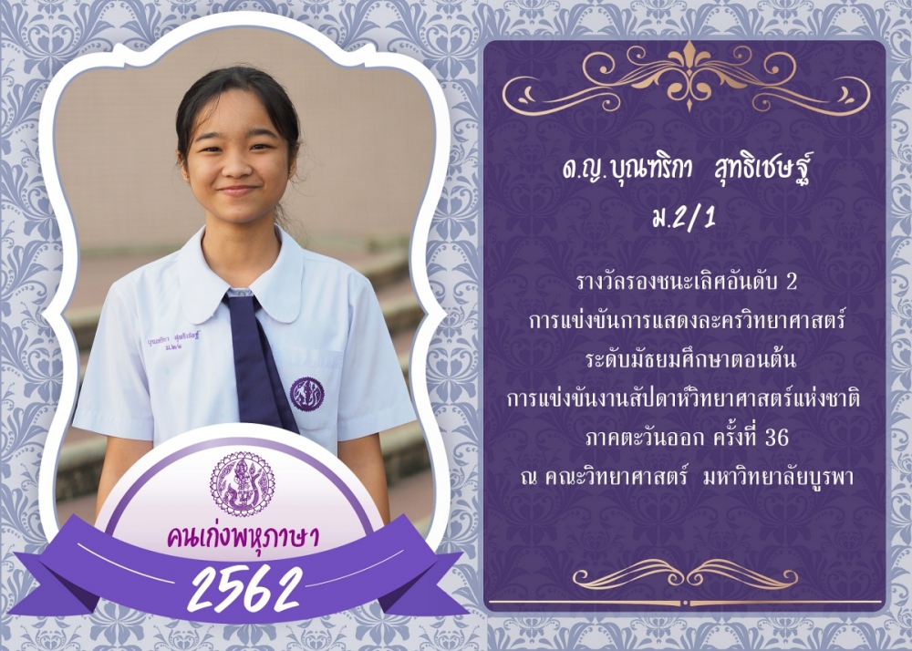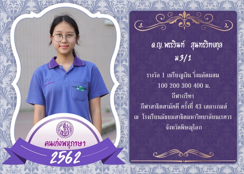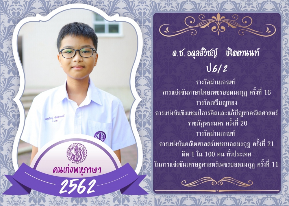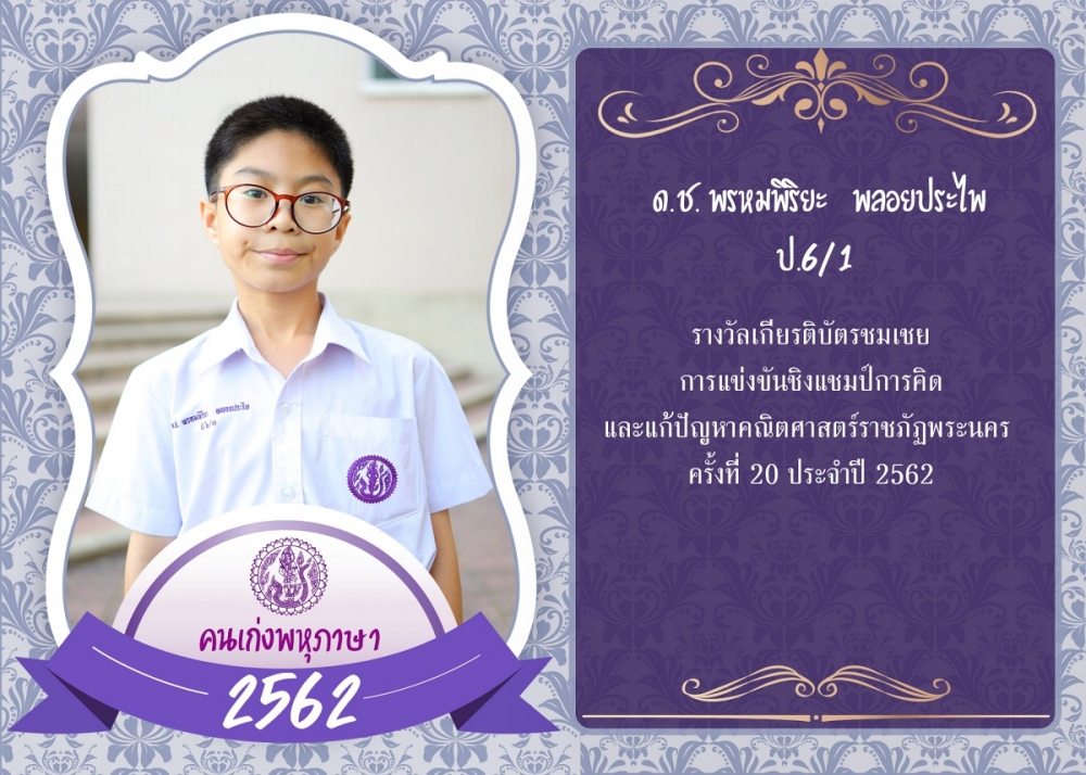 นักเรียนที่ได้รับรางวัลจากการแข่งขันประเภทต่างๆ โดยรวบรวมผลงานนักเรียนตั้งแต่ภาคปลายปีการศึกษา 2561 ถึง ภาคต้นปีการศึกษา 2562