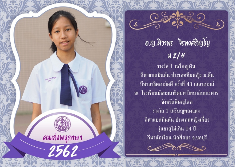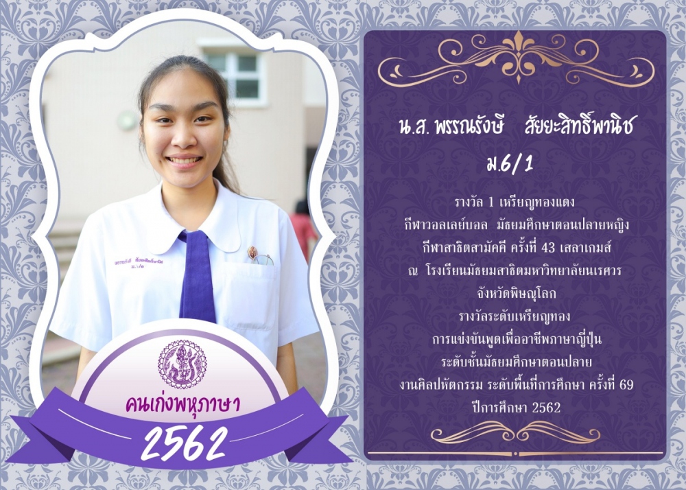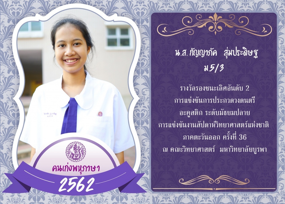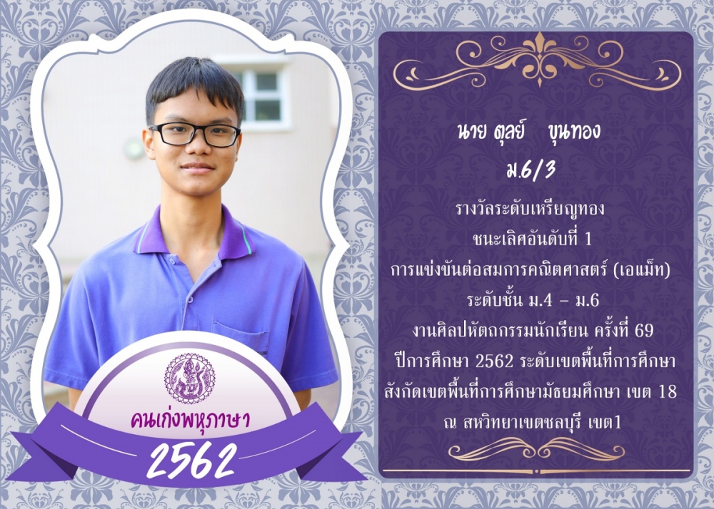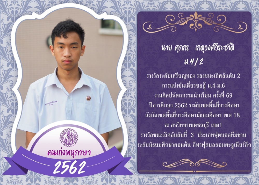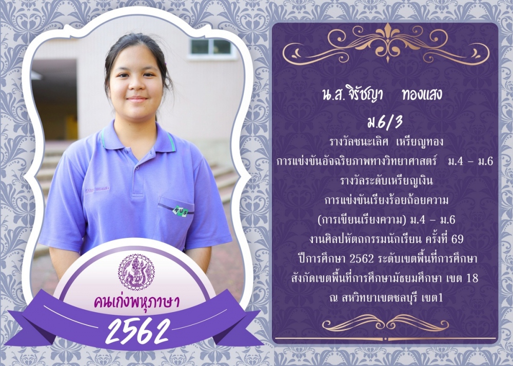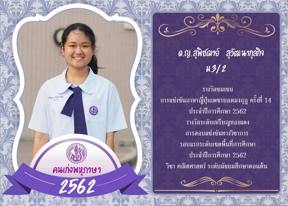 นักเรียนที่ได้รับรางวัลจากการแข่งขันประเภทต่างๆ โดยรวบรวมผลงานนักเรียนตั้งแต่ภาคปลายปีการศึกษา 2561 ถึง ภาคต้นปีการศึกษา 2562