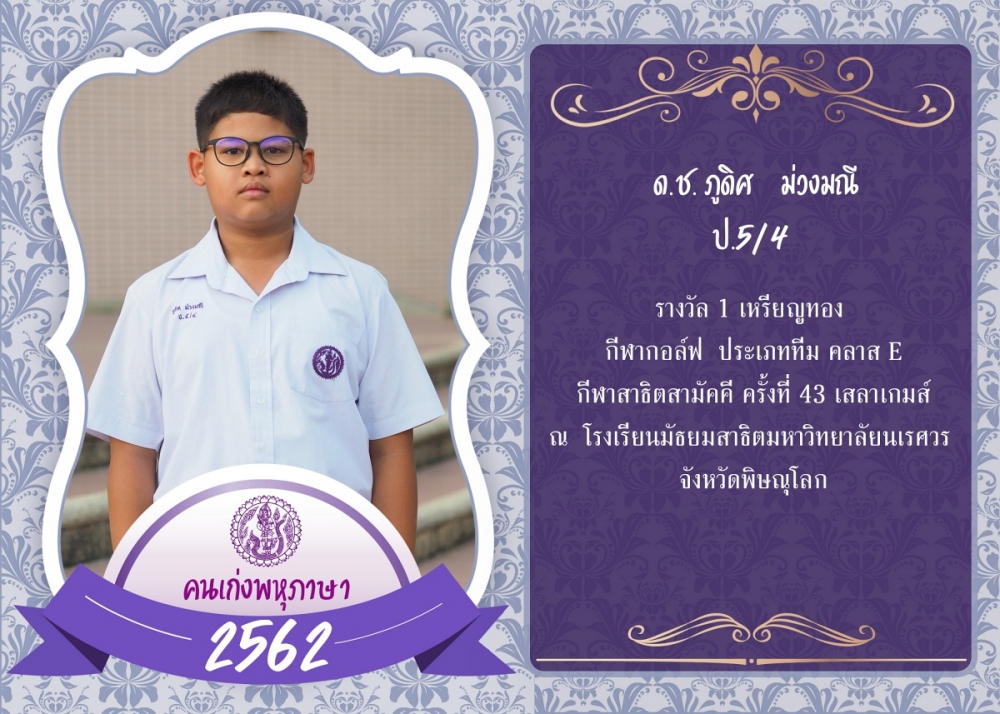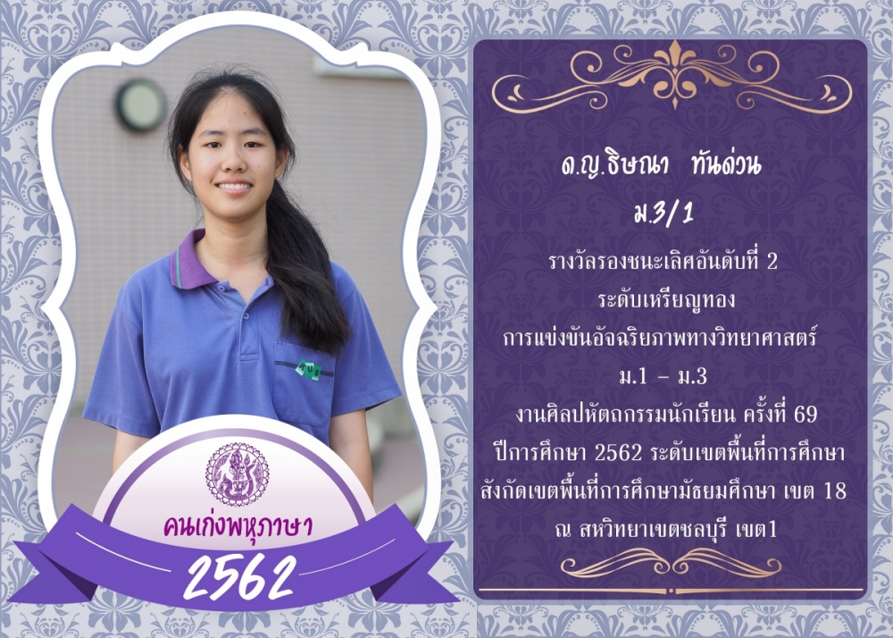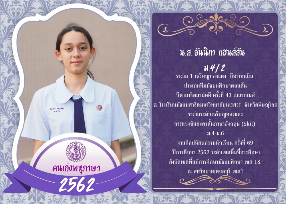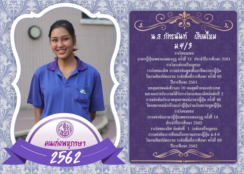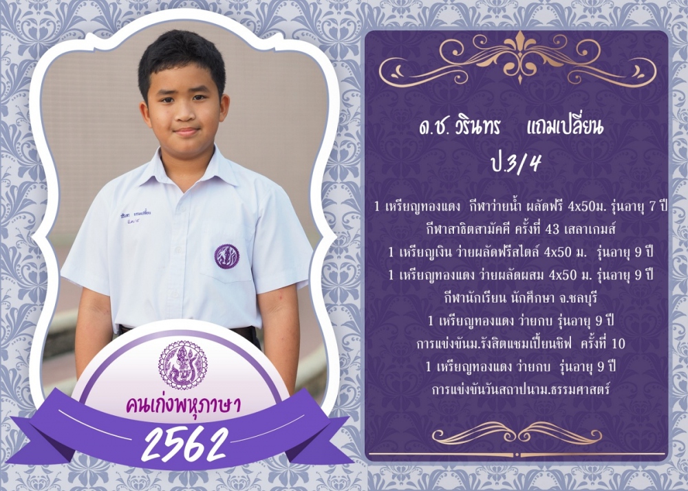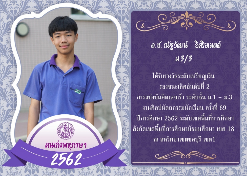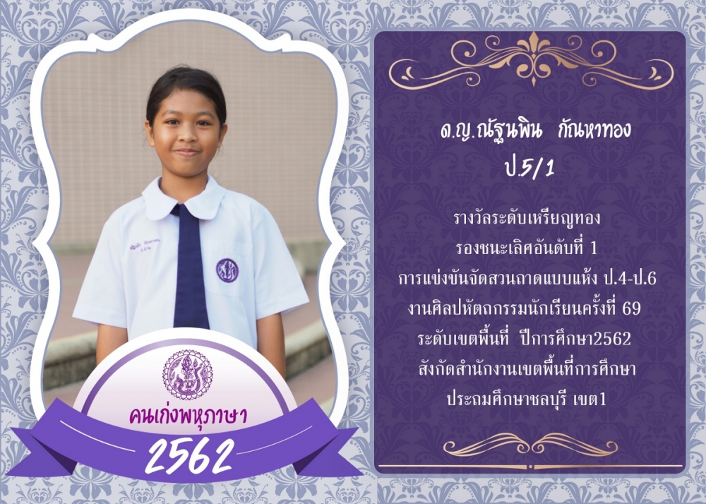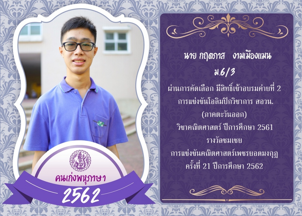 นักเรียนที่ได้รับรางวัลจากการแข่งขันประเภทต่างๆ โดยรวบรวมผลงานนักเรียนตั้งแต่ภาคปลายปีการศึกษา 2561 ถึง ภาคต้นปีการศึกษา 2562